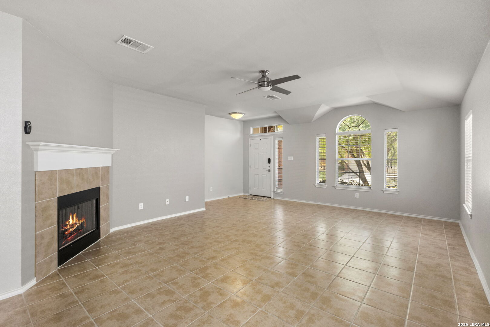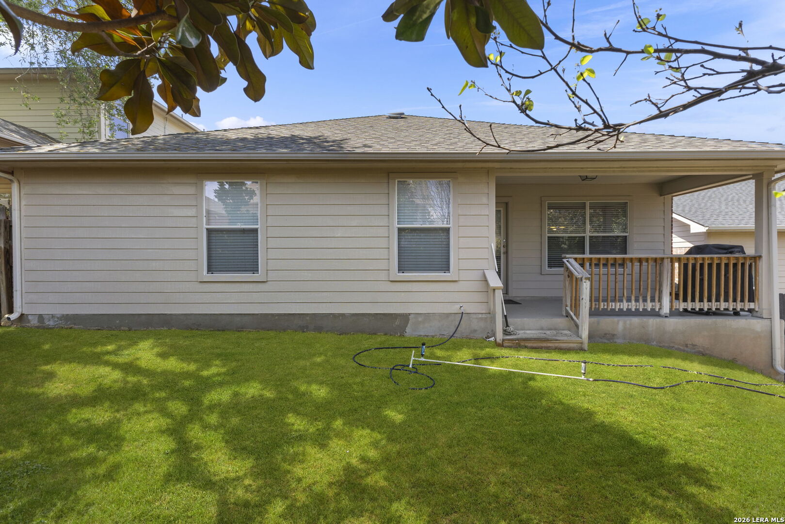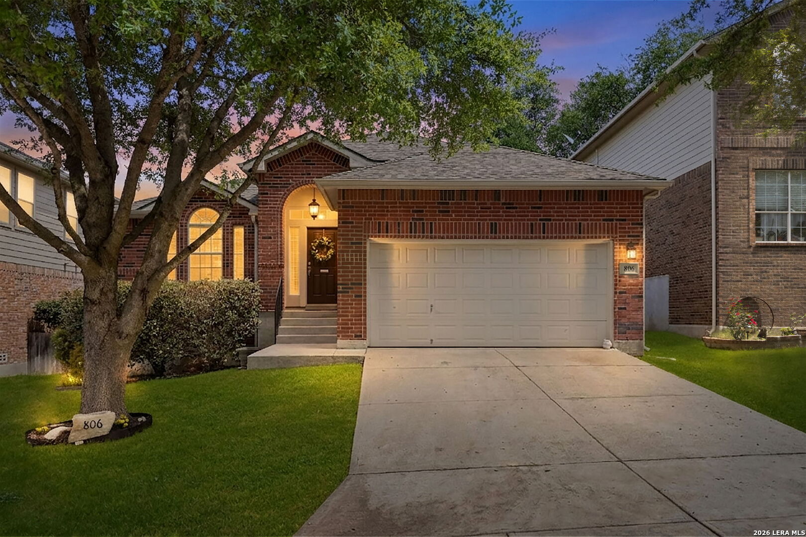 Stop By The Open House Sunday April 12th 1pm-3pm! 1-story home in Northwest San Antonio near Hwy 1604, Joint Base San Antonio-Lackland AFB, shopping, and major hospitals, offering low-maintenance living with a cool, shaded backyard-ideal for comfortable everyday living and easy access to everything you need. Meticulously maintained one-owner home in Westcreek with 3 sides brick, sprinkler system, gutters, and true move-in ready condition-so clean you can eat off the floors. ~ Open-concept great room with high ceilings, rounded corners, and a wood-burning fireplace flows seamlessly into a bright kitchen featuring solid surface countertops, breakfast bar, large breakfast area, island, built-in microwave, and included refrigerator-perfect for entertaining or relaxed daily living. Durable tile and laminate flooring run throughout the home (only 2 closets have carpet), offering easy upkeep and allergen-friendly living. ~ Private primary suite is tucked at the back of the home with a coffered ceiling, spacious 13x8 walk-in closet, double vanities, garden tub, and separate shower. Secondary bedrooms and full bath are split from the primary for added privacy, with a convenient built-in desk/planning center just outside-ideal for home organization or workspace. ~ Additional features include 2-inch faux wood blinds, remote garage keypad entry, utility room with Maytag washer and dryer, and a garage with painted floors, high ceilings (Ready For Ceiling Mounted Storage), and pull down attic access. ~ Enjoy outdoor living on the covered patio with a west-facing front and shaded backyard in the afternoon-perfect for escaping the Texas heat during peak hours. Located in the highly desirable Westcreek community offering rare amenities including 2 pools, sports park, soccer field, walking trails, playgrounds, community center, and neighborhood events. ~ Tucked away for privacy yet minutes from everything, this home offers the flexibility to stay connected or unplug and enjoy a peaceful lifestyle. Home is also eligible for 0% UDSA Financing!