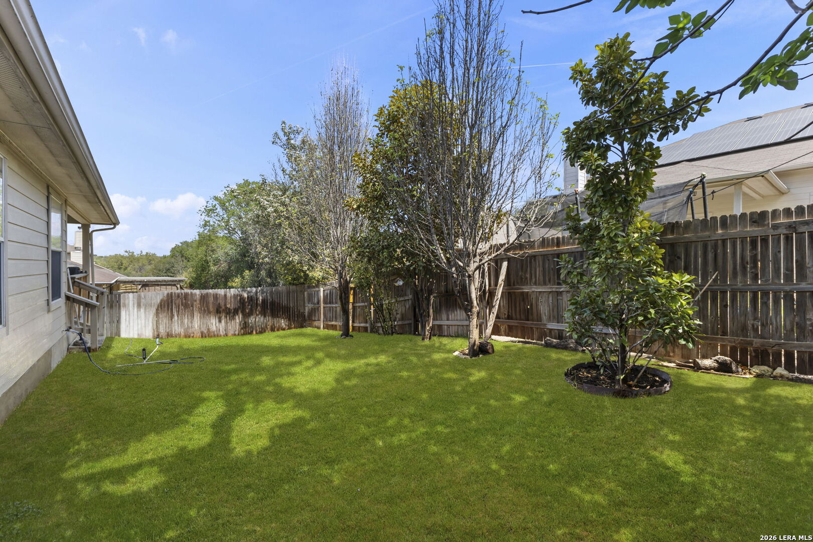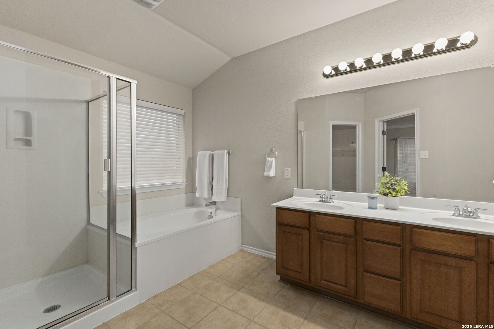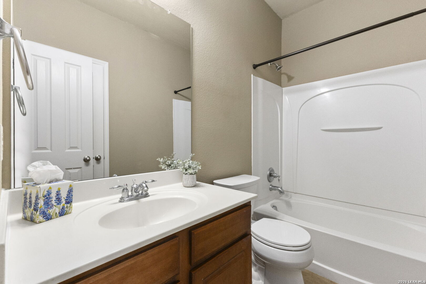 Stop By The Open House Sunday April 12th 1pm-3pm! 1-story home in Northwest San Antonio near Hwy 1604, Joint Base San Antonio-Lackland AFB, shopping, and major hospitals, offering low-maintenance living with a cool, shaded backyard-ideal for comfortable everyday living and easy access to everything you need. Meticulously maintained one-owner home in Westcreek with 3 sides brick, sprinkler system, gutters, and true move-in ready condition-so clean you can eat off the floors. ~ Open-concept great room with high ceilings, rounded corners, and a wood-burning fireplace flows seamlessly into a bright kitchen featuring solid surface countertops, breakfast bar, large breakfast area, island, built-in microwave, and included refrigerator-perfect for entertaining or relaxed daily living. Durable tile and laminate flooring run throughout the home (only 2 closets have carpet), offering easy upkeep and allergen-friendly living. ~ Private primary suite is tucked at the back of the home with a coffered ceiling, spacious 13x8 walk-in closet, double vanities, garden tub, and separate shower. Secondary bedrooms and full bath are split from the primary for added privacy, with a convenient built-in desk/planning center just outside-ideal for home organization or workspace. ~ Additional features include 2-inch faux wood blinds, remote garage keypad entry, utility room with Maytag washer and dryer, and a garage with painted floors, high ceilings (Ready For Ceiling Mounted Storage), and pull down attic access. ~ Enjoy outdoor living on the covered patio with a west-facing front and shaded backyard in the afternoon-perfect for escaping the Texas heat during peak hours. Located in the highly desirable Westcreek community offering rare amenities including 2 pools, sports park, soccer field, walking trails, playgrounds, community center, and neighborhood events. ~ Tucked away for privacy yet minutes from everything, this home offers the flexibility to stay connected or unplug and enjoy a peaceful lifestyle. Home is also eligible for 0% UDSA Financing!