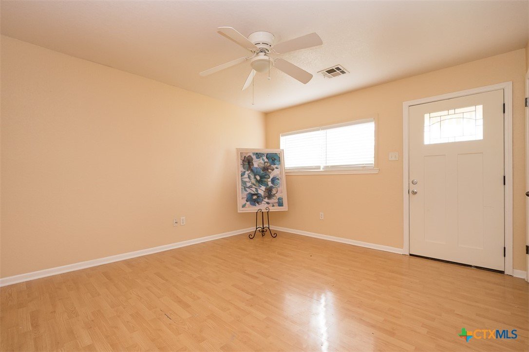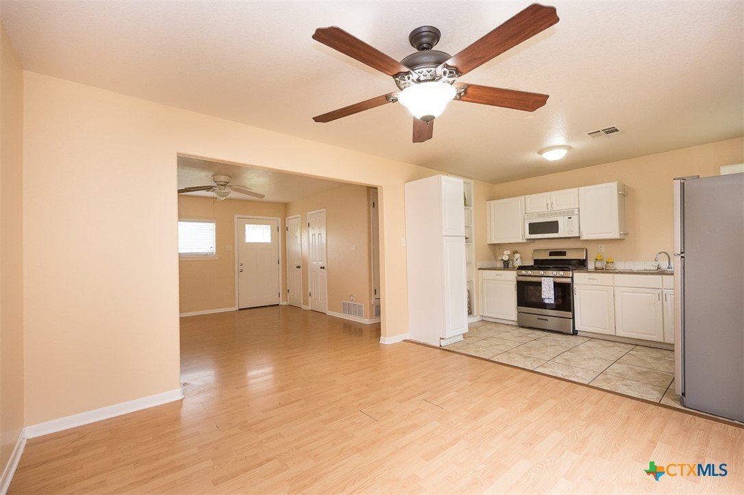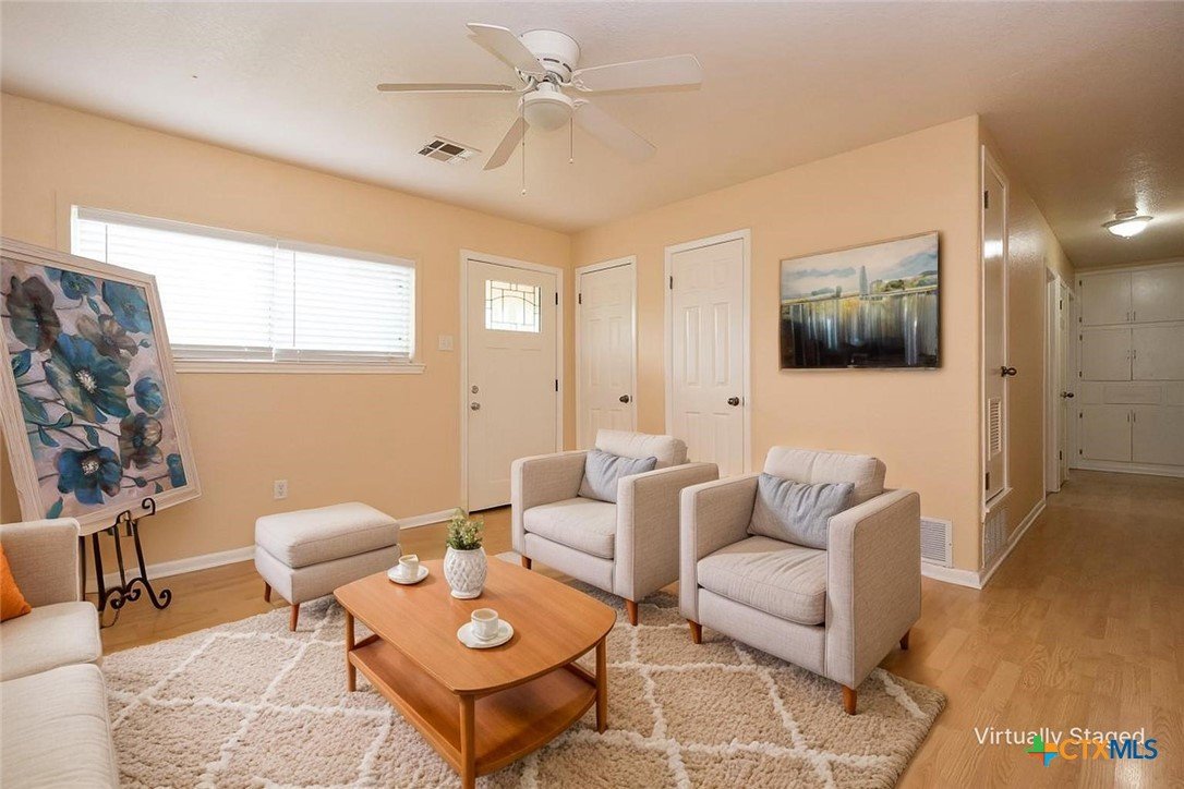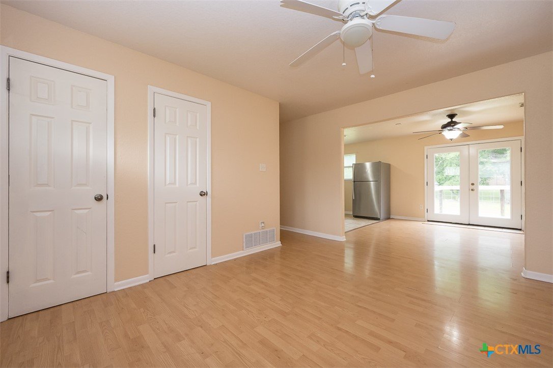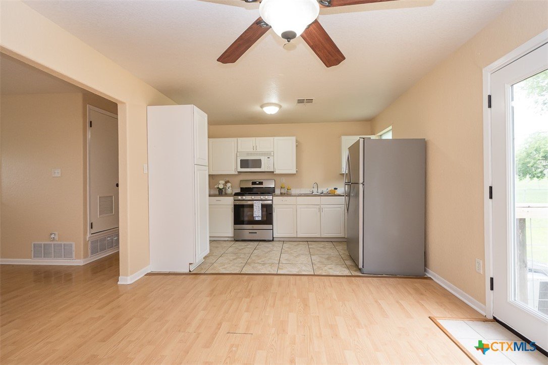 Enjoy a location that makes daily life easier, with schools and local conveniences just minutes away. Inside, the home features a clean, low-maintenance design with no carpet—wood laminate floors run through the living areas and bedrooms, while the kitchen and baths are finished with durable tile. The layout offers a natural flow for both everyday living and entertaining. A spacious dining area connects seamlessly to the kitchen, creating an inviting place to gather. French doors open from the dining space to a deck that overlooks a generous backyard filled with mature trees, providing a peaceful setting for outdoor relaxation, play, or hosting guests. With its practical features, comfortable layout, and inviting outdoor space, this home is ready for its next chapter.