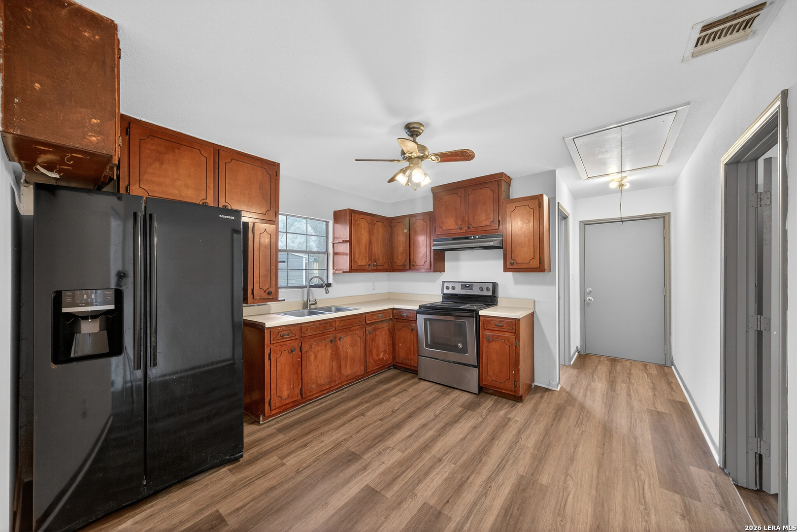 Welcome to this charming 3-bedroom, 1-bath home nestled on the vibrant Southside of San Antonio, freshly painted and featuring beautifully updated flooring throughout, this home offers a warm and inviting feel from the moment you walk in. Enjoy a functional layout with a dedicated dining area perfect for gatherings and a spacious family room designed for relaxing or entertaining. The natural light flowing through the home enhances the fresh updates, creating a bright and comfortable living space. Located in the heart of South San Antonio, you'll love the strong sense of community, rich culture, and convenient access to local schools, parks, and shopping. The Southside is known for its authentic charm, growing development, and easy access to downtown. Whether you're a first-time buyer or looking to downsize, this move-in-ready gem offers both comfort and value in one of the most beloved areas of San Antonio