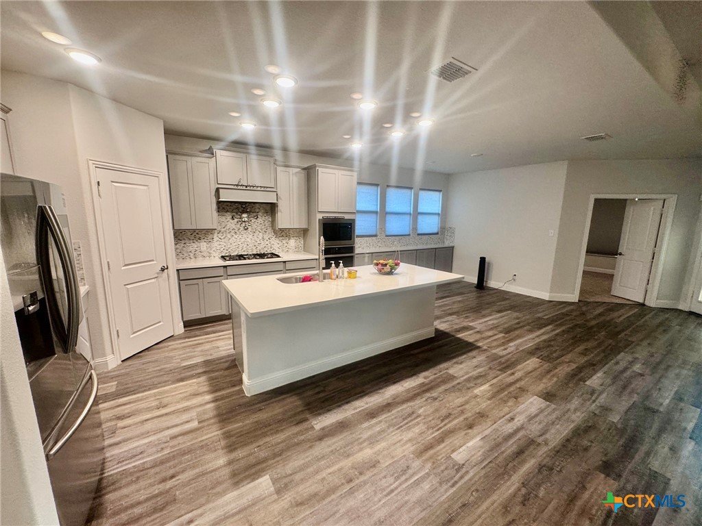 Schedule your showing today! Step into this bright and inviting foyer that leads to an expansive, entertainer-ready kitchen—complete with stainless steel appliances, double ovens, a generous center island, and a walk-in pantry designed for both style and function. The spacious master suite impresses with its garden tub, dual vanities, a walk-in shower featuring built-in seating, and a luxurious, oversized closet tailored for convenience and elegance. Enjoy outdoor living on the covered patio and take advantage of community amenities like a dog trail, playground, clubhouse, pool, and more!