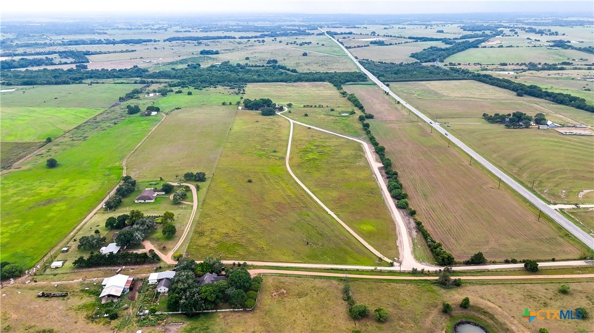 Scenic Hilltop Acreage in Shiner ISD. Partially fenced with a shared entrance and newly installed private driveway. Enjoy panoramic hilltop views under a mature historic oak. Property features a current Ag valuation, hay production, and a wet weather creek. Located in the highly acclaimed Shiner ISD, with nearby access to a private Catholic school, Spoetzel Brewery, and local amenities. Ideal homesite with charming barn, electricity, water well, and septic already in place. Gentle rolling terrain with native brush and abundant wildlife. Owner open to subdividing.
