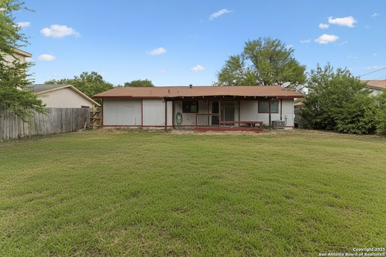 Charming Single-Story Home with Endless Potential! Welcome to this inviting single-story home featuring a spacious layout and great yard space both back and front! Step inside to find fresh neutral paint, rich wood-look flooring in the main living area, and large windows that fill the space with natural light. The open-concept layout seamlessly connects the living room to the dining area and kitchen, offering an ideal space for both relaxing and entertaining. The kitchen boasts granite countertops, rustic look cabinet space, and your main appliances - perfect for preparing family meals. Enjoy easy access to the backyard through sliding glass doors, where you'll find a large covered patio and a private, fenced yard ready for your personal touch. Additional highlights include a two-car garage, ceiling fans, and move-in-ready finishes. Enjoy the convenience of living just moments from Windcrest City Park and Takas Park, offering playgrounds, walking trails, sports courts, and pavilions-perfect for outdoor fun with family and friends. Golf enthusiasts will love being near Windcrest Golf Club, while daily errands are a breeze with HEB, shopping centers, and multiple dining options all within half a mile, making this location ideal for an active and connected lifestyle! this home is perfect for first-time buyers, investors, or anyone looking to customize a property to their liking. Don't miss your chance to own this wonderful home - schedule your showing today!