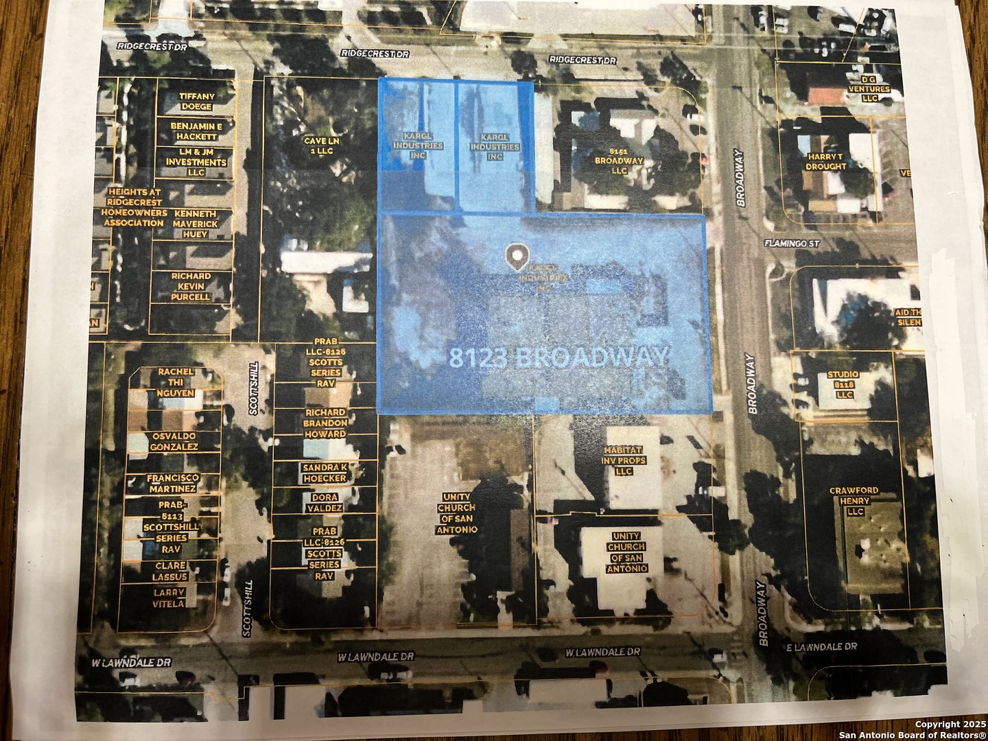 Inside Loop 410 on an increasing vibrant stretch of Broadway that could be a good fit for just about anything! The current tenants are a bar and dance hall operating under a nonconforming use agreement. Beautiful view from this highpoint to the western horizon. Located in the Alamo Heights School District. Entrances to large parking areas from Broadway and Ridgecrest. Terrific opportunity to utilize this 2 acre lot in a very desirable location!