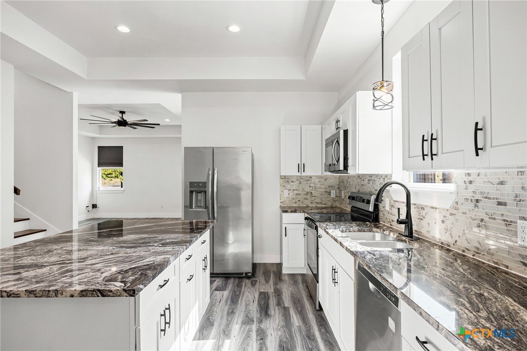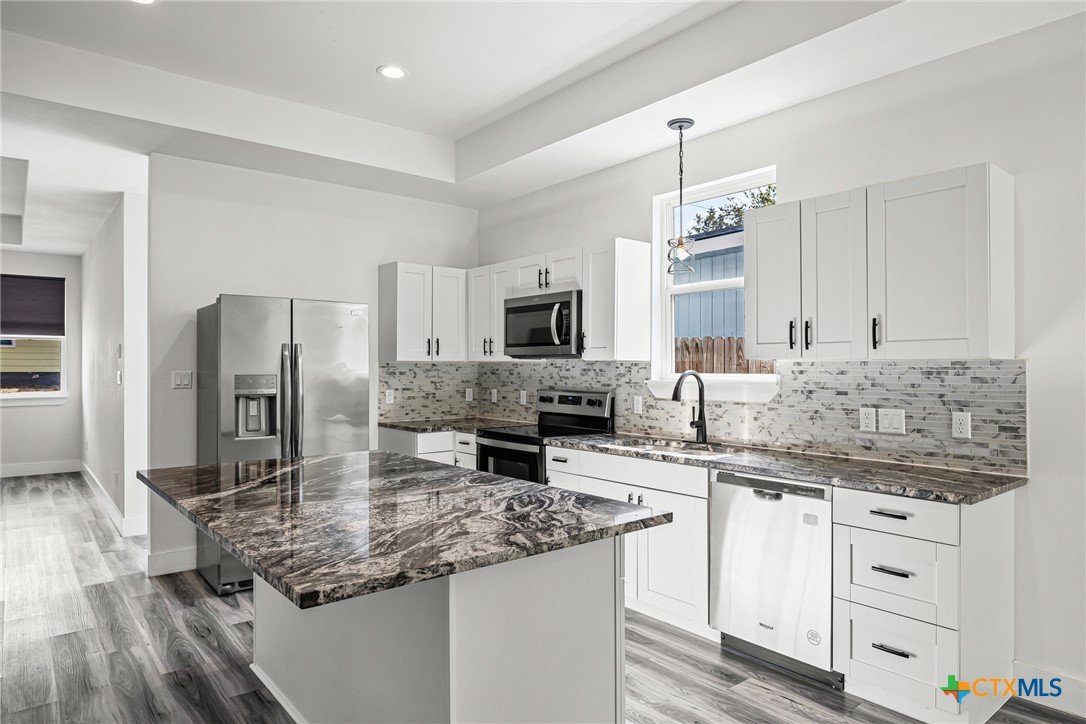 Discover a rare gem in the heart of Lockhart—this stunning, one of a kind modern home blends contemporary style with everyday comfort. Boasting 3 spacious bedrooms and 2 luxurious bathrooms, every detail has been thoughtfully designed for modern living. Step inside to an expansive open-concept floor plan that seamlessly connects the living and kitchen areas—perfect for entertaining. Kitchen features sleek granite countertops, a large center island with seating, and a full suite of stainless steel appliances included. Gorgeous laminate wood-look flooring flows throughout, adding warmth and easy maintenance. Retreat to the primary suite with a spacious walk-in shower, double vanities, and an oversized walk-in closet. Two additional bedrooms offer ample space and storage. Unwind or entertain on the expansive upstairs balcony, ideal for morning coffee or sunset views. Located just minutes from Lockhart’s charming barbecue scene, boutique shopping, and local dining, with effortless access to major highways for quick commutes to Austin (30 minutes) or San Antonio (1 hour). Seller financing option is also available.