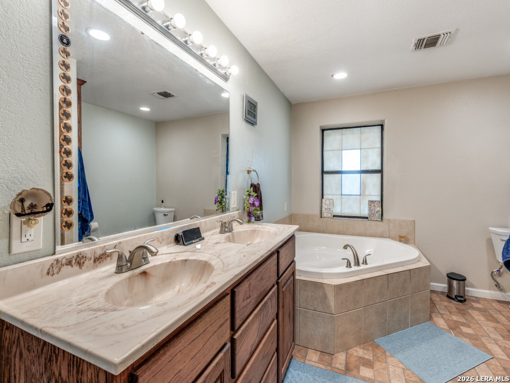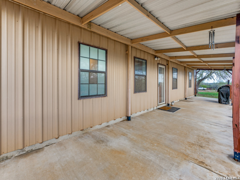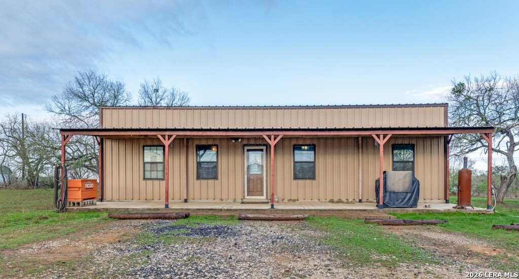 4 ACRES OF QUIET COUNTRY LIVING just 6 miles from the heart of Seguin. 4 bedroom, 2 bath updated barndominium home plus a 2 bedroom, 1 bath guest home located on a level, partially wooded lot. Main home (2500 sqft.) features open living/kitchen design with spacious kitchen. Breakfast bar, breakfast area, and separate dining room, which could serve as home office. Large master suite with his/her closets, large Jacuzzi tub, and walk-in tile shower. Detached garage featuring double doors. The 2/1 guest house is not fully finished (1232 sqft.) but has a brand new roof in 2025. The guest house features an open living/kitchen/dining layout plus additional room/office. RV hookup near main house. Come feel the country breeze and stargaze outside the city limits!