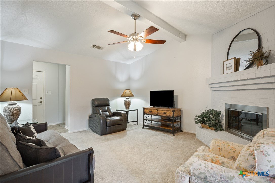 PRIDE OF OWNERSHIP! This home has been well-cared for and is ready for move-in. Curb appeal shines with mature trees and pristine landscaping. The backyard is an oasis with shade-trees, native plants and a covered patio. Inside you'll enjoy the tall ceilings in the living room with the cozy brick, wood burning fireplace. The kitchen is complete with new appliances (stove, dishwasher & microwave 2024), solid surface countertops and custom cabinetry. The bonus room off the main living area is the perfect playroom, office or sunroom - perfect for whatever you need. Three generously sized bedrooms and closets provide ample space for everyone! Peace of mind is provided with a new roof & seamless gutters (Sept​​‌​​​​‌​​‌‌​‌‌‌​‌​​​​‌​​​‌‌​‌​​ 2024),