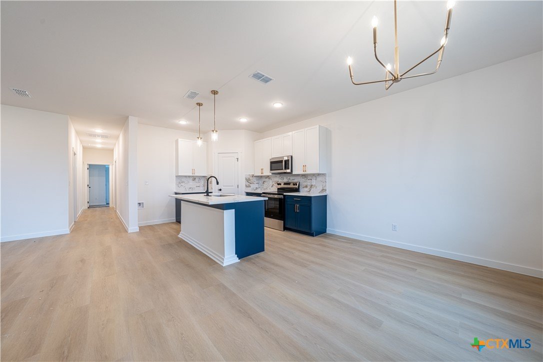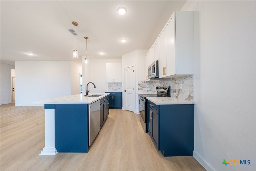 Brand-new construction in Belton that breaks the mold—815 Liberty Park Dr in Belton is thoughtfully designed with integrity, craftsmanship, and attention to detail throughout. This 4-bedroom, 2-bath home features quartz counertops and custom cabinetry, beautifully curated tile work, designer fixtures, on-trend color palettes, and spacious closets. All this plus spray foam insulation for increased energy efficiency and lower energy bills! The heart of the home is centered around a large kitchen island and is open concept to the living and dining room, all flooded with natural light. A functional mudroom adds everyday convenience for busy households. Enjoy a level, private backyard and a prime location with quick access to I-35, making commuting a breeze. Stylish, intentional, and anything but cookie-cutter—this home is built to stand out. Located in the popular Belton School district and tucked away with no rear neighbors on top of you, this could be the one! Schedule your showing today. Ask us about builder and preferred lender incentives to get you in this home for a great value!