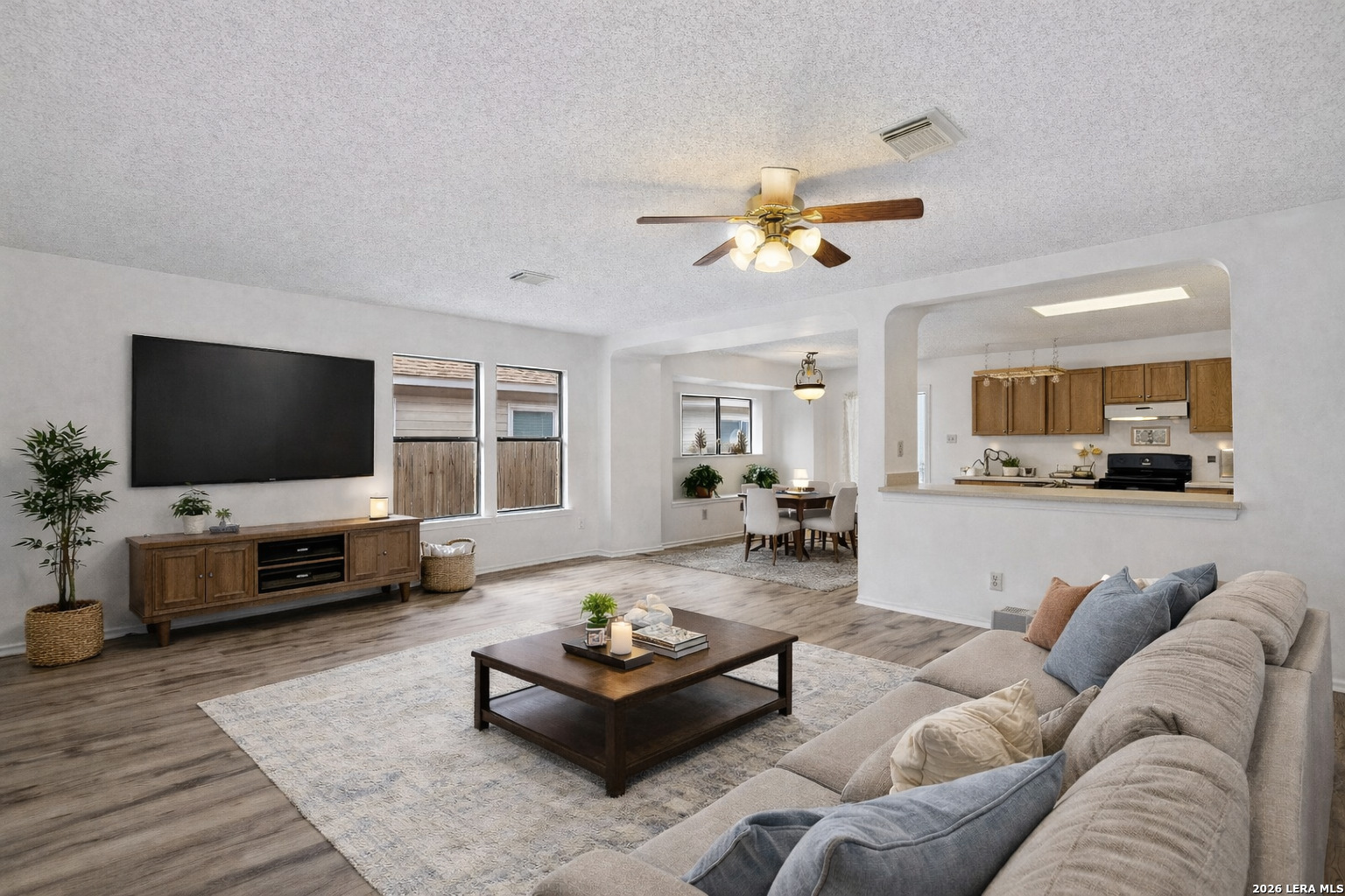 Stop by at our OPEN HOUSE Sat & San 1pm-4pm * $5,000 TOWARDS CLOSING COSTS! * This beautifully maintained 3-bedroom, 2-bathroom single-story gem offers 1,862 sq. ft. of bright, open living space and effortless charm - all on a level lot with gorgeous curb appeal and no stairs to worry about! From the moment you arrive, you'll be impressed by the full 4-sided All Brick exterior and inviting layout. Step inside and enjoy a spacious open-concept floorplan that's flooded with natural light and perfect for both everyday living and entertaining guests. The heart of the home is the kitchen, complete with a large island, tons of cabinet space, and a walk-in pantry/laundry combo for ultimate functionality. The oversized living area flows easily into the dining space - ideal for game nights, dinner parties, or cozy evenings in. Retreat to the private primary suite, featuring a large walk-in closet and en-suite bath, while two additional bedrooms offer flexibility for guests, kids, or a home office. Need extra room? You'll love the converted garage space - perfect as a game room, media room, or second family room! Outside, relax or entertain under the spacious covered back deck, overlooking a peaceful yard with a storage shed and plenty of room to enjoy the outdoors. Nestled in a prime location near top-rated schools, The Forum shopping center, Randolph AFB, BAMC, and I-35, this home offers the perfect balance of comfort, style, and convenience. Don't miss your chance to own this one - schedule your showing today and make it yours before someone else does!