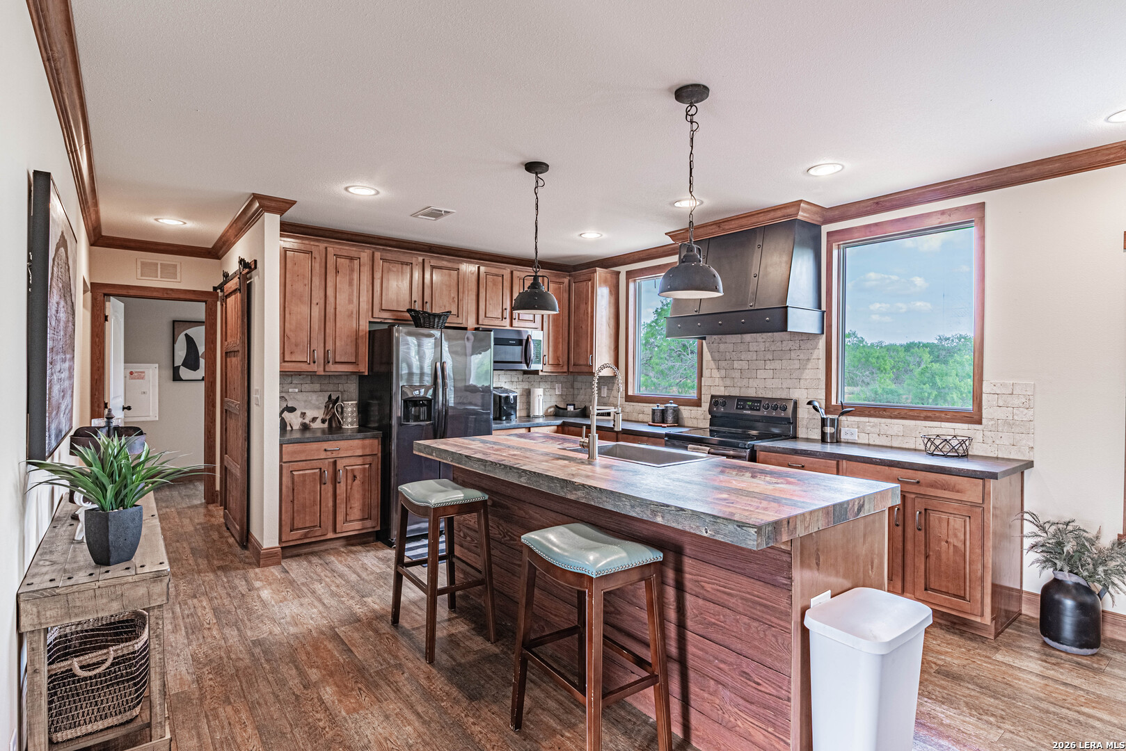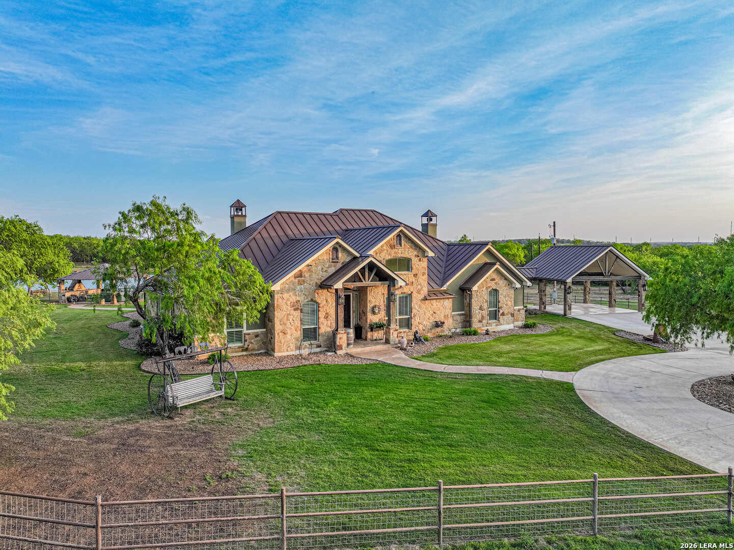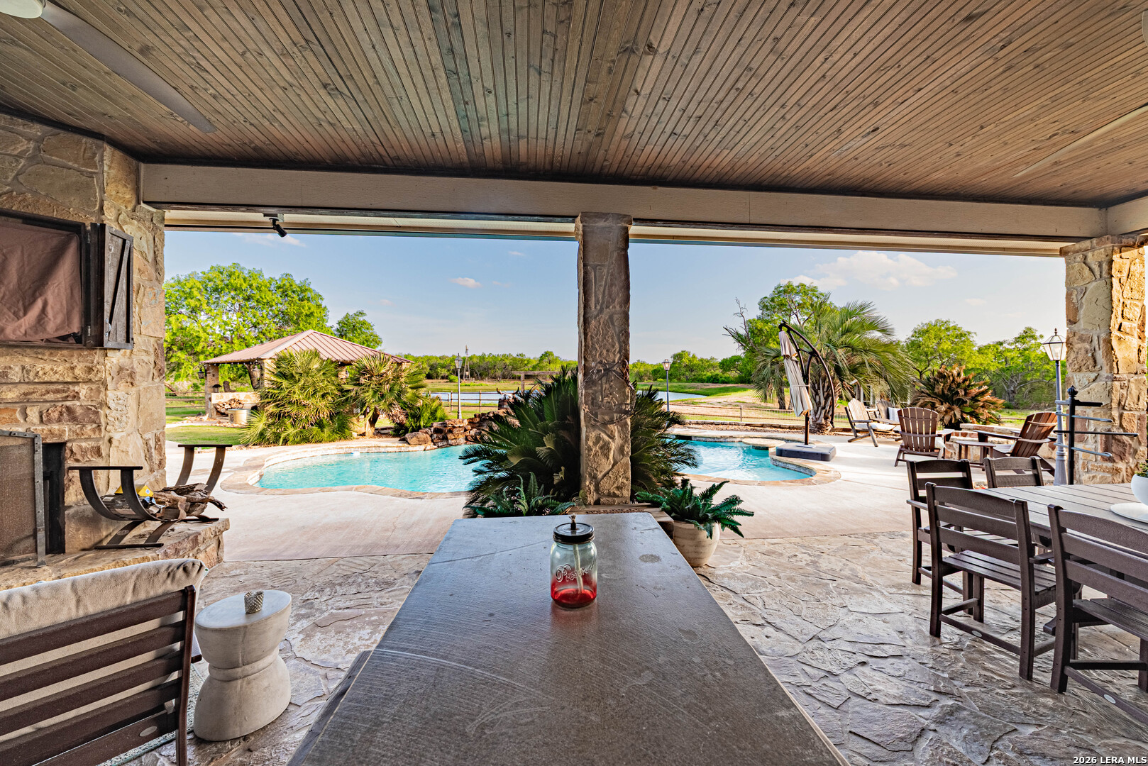 Nestled on a sprawling 30.44 acres of pristine countryside, this extraordinary ranch estate is more than a home, it's a legacy. Designed for multi-generational living, it seamlessly blends family harmony with income-producing potential, offering space to thrive, entertain, and even generate revenue through rentals, equestrian pursuits, or small-scale agriculture. Imagine waking to breathtaking picturesque views, where every sunset paints the sky in hues of gold, and your days unfold in effortless luxury. At the heart of this estate stands the custom-built main home with 4 bedrooms or 3 bedrooms with an office and 2 1/2 bathrooms, a masterpiece of comfort and sophisticated style. Thoughtfully crafted with expansive living areas, including a state-of-the-art media room featuring a wet bar, stone fireplace, and custom built-in shelves and cabinets for your cinematic escapes and gatherings. The home continues to impress with a gourmet kitchen and serene primary suite, welcoming gatherings of all sizes while providing intimate retreats for every generation. Adjacent, the fully furnished and exceptionally decorated guest house awaits with 3 bedrooms and 2 bathrooms, a turnkey haven perfect for extended family, visiting friends, or as a lucrative short-term rental, complete with its own private charm and modern amenities. Equestrian enthusiasts will find paradise here, with a state-of-the-art four-stall horse barn equipped for the finest care, alongside a large, air-conditioned shop ideal for hobbies, storage, or light business operations. Complementing these are a detached shop for larger projects and a separate carport, ensuring ample space for vehicles, equipment, and dreams yet to unfold. Nature's bounty shines through in the shimmering 3-acre stock pond, teeming with bass and grass carp, a serene spot for fishing, wildlife watching, or simply unwinding by the water's edge. But the true crown jewel is the backyard oasis, an entertainer's dream framed by ultimate panoramic views. Dive into the shimmering pool on lazy afternoons, fire up the outdoor kitchen sizzling sunset barbecues, or gather around the cozy fireplace as stars emerge overhead. The BBQ smoking pavilion adds a smoky allure to weekend barbecues, turning every meal into a memory. This is not just property; it's a lifestyle of abundance, where luxury ranch living intersects with smart investment. Multi-generational bonds strengthen under one roof, while income streams flow from the land's endless possibilities. Seize this rare opportunity, schedule your private tour today and step into your forever ranch.