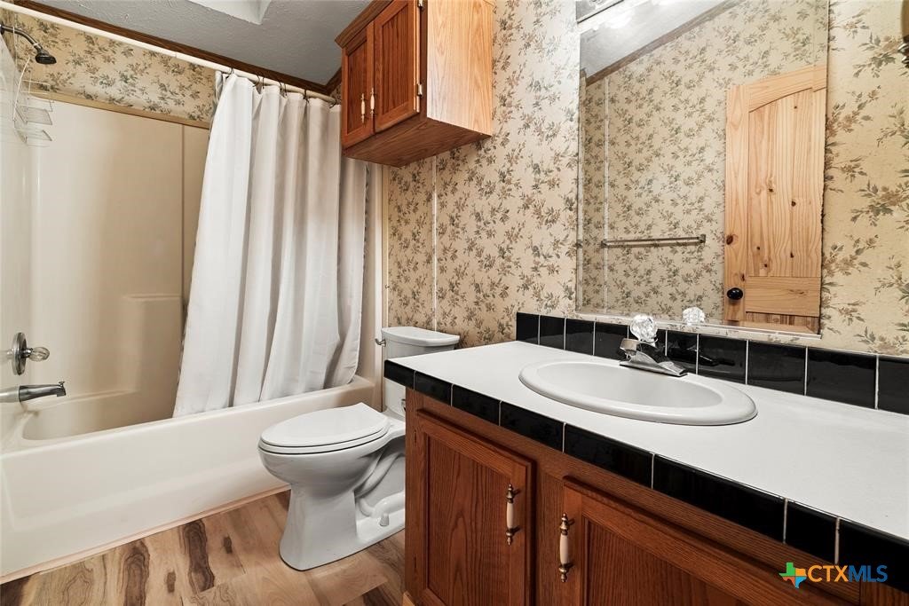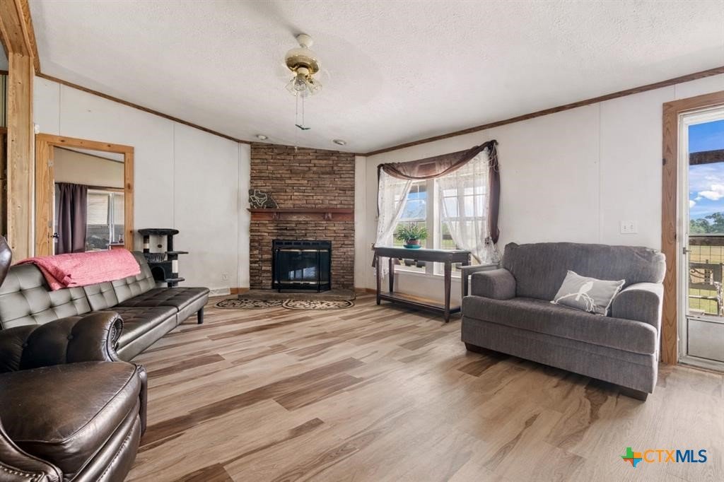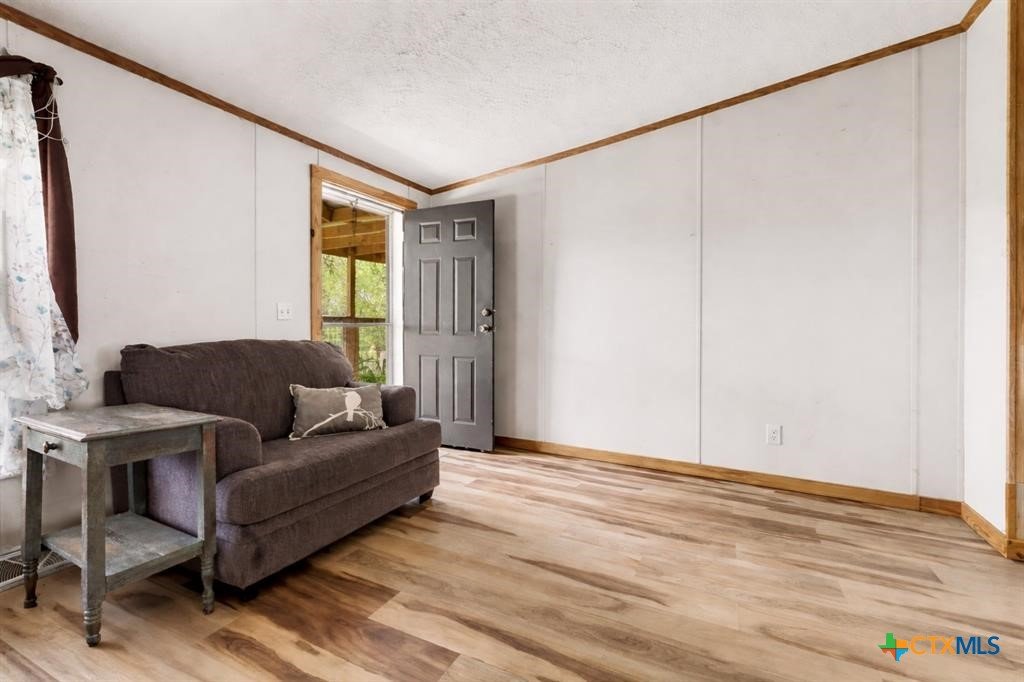 Prime 11.41 acre wooded retreat set well back from the road-home is not visible from the street, located in the countryside in Coupland, this charming property offers the space, privacy, and quiet that make country living so appealing, while still being just a short drive from modern conveniences, including the Taylor Samsung facility and Data Center. A picturesque gravel drive leads to a 1999 Champion home which is approx. 1700 sq. ft. with 3 bedrooms, 2 full bathrooms, and a spacious primary suite, and has been very well maintained. Spacious living area features wood-burning fireplace that anchors the home and creates a welcoming gathering space. Outside, both the covered front porch and covered side porch invite you to slow down and are perfect for rocking chairs, morning coffee, or unwinding in the evenings while taking in wide-open views of the surrounding land and incredible sunrises and sunsets. The property is well equipped with both a detached workshop/garage, along with additional outbuildings offering flexibility for storage, hobbies, or agricultural use. A partially fenced pasture provides room for animals or future projects, completing the true country setting. The property extends to Brushy Creek and offers good hunting and fishing. Come sit on the porch, take a deep breath, and imagine the lifestyle. Home has been updated within the last seven years, with new floors, new heating/AC and new ductwork. Land is heavily wooded with beautiful hardwoods and a natural, park-like setting.