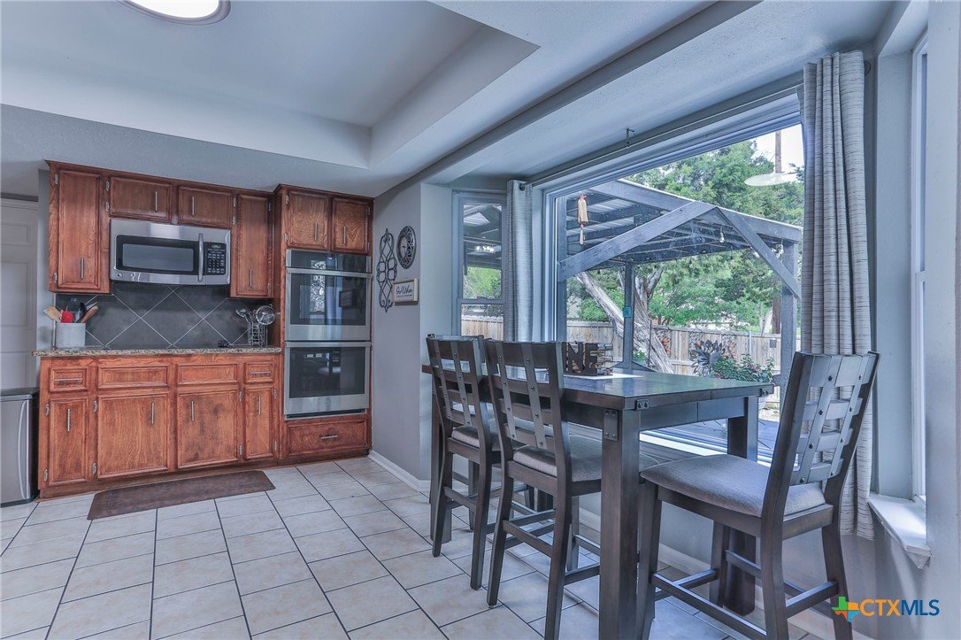 100% FINANCING POSSIBLE & SELLER CONCESSIONS AVAILABLE WITH ACCEPTABLE OFFER! Excellent curb appeal and lovely landscaping. Bring your family to see this home that has been updated and well-maintained. Living room with high ceiling and wood-burning fireplace. Off living room is flexible space - sitting room, dining room, play area, etc. Roomy kitchen with large picture window looking into backyard has DOUBLE OVEN, built-in microwave and a COFFEE BAR. All newer appliances. Kitchen, living and flex space all open and welcome a crowd. You'll have 3 roomy bedrooms PLUS an office. Two full baths. Primary bath has walk-in shower and great lighted mirror. Large utility room with sink and room for 2nd refrigerator or a freezer. The BACK PATIO is the place to unwind and enjoy yourself and your family/friends. Has plenty of concrete to entertain under a wonderful pergola. Outbuilding in backyard to store lawn equipment, etc. Roof is less than 1 year old. Terrific corner location. Have city services and conveniences but not so close to the busyness of city life.