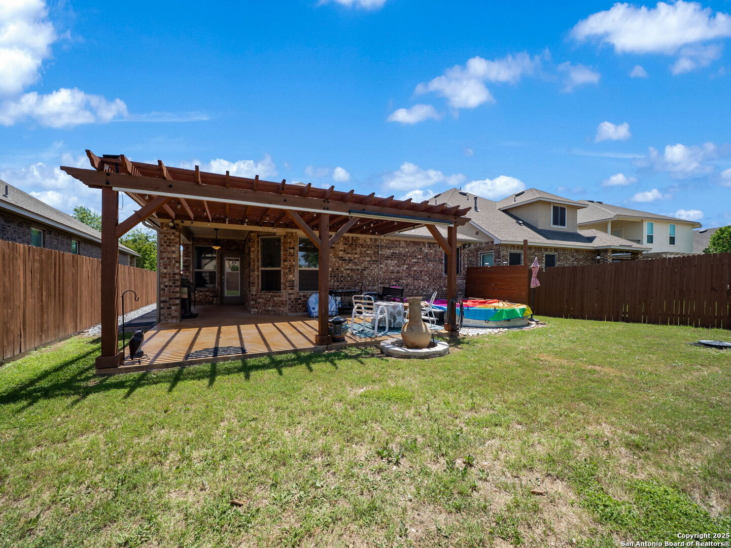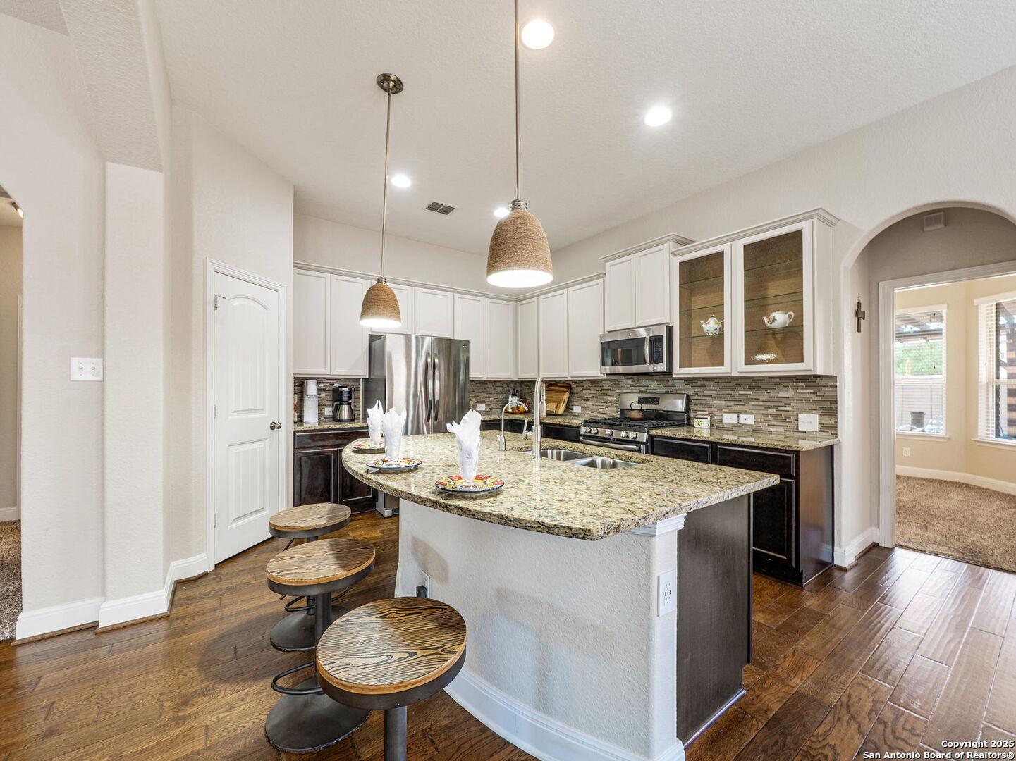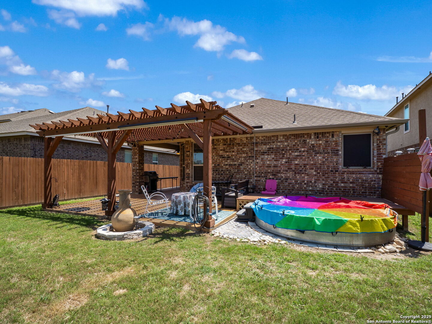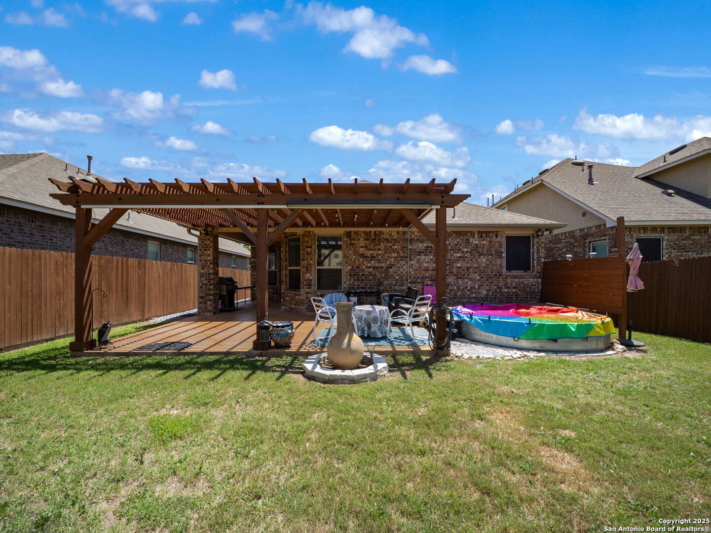 Welcome to a Home That Will Take Your Breath Away From the moment you arrive, this stunning single-story home invites you in with warmth, charm, and timeless style; where comfort meets elegance. The exterior makes a lasting impression with four sides of classic brick accented by striking stone details. Step inside, and you're greeted by soft cream-toned walls and rich wood flooring that flows gracefully through the entry, study, living room, breakfast area, and kitchen-setting the stage for a space that feels both refined and welcoming. At the heart of the home, the kitchen is every chef's dream. Granite countertops gleam under the glow of under-cabinet lighting, while an extended breakfast bar offers the perfect gathering spot. With an abundance of cabinetry-including a charming display cabinet with glass insets-there's a place for everything, and plenty of room to create. Whether you're hosting friends or whipping up your favorite meal, this kitchen inspires. The open-concept living and dining areas create a natural flow, ideal for everyday living and special occasions alike. And when you're ready to unwind, step outside to your very own backyard retreat. A covered patio and extended outdoor living space-complete with a stylish pergola and a cowboy pool-set the scene for peaceful mornings, sun-soaked afternoons, and evenings spent under the stars. Tucked away in its own private corner of the home, the spacious primary suite offers a serene escape. The en suite bathroom is designed to indulge, with granite countertops, dual vanities, a soaking tub, separate shower, and a generously sized walk-in closet. The split-bedroom layout ensures quiet and comfort, with two additional bedrooms thoughtfully placed on the opposite side of the home-perfect for guests, family, or a home office. Every inch of this home is crafted with care, offering a perfect blend of function, beauty, and comfort. From the cozy corners to the entertainer's backyard, this is more than just a home-it's a place to live, relax, and fall in love with your every day. Come see it for yourself. You just might find it's everything you've been looking for-and more.