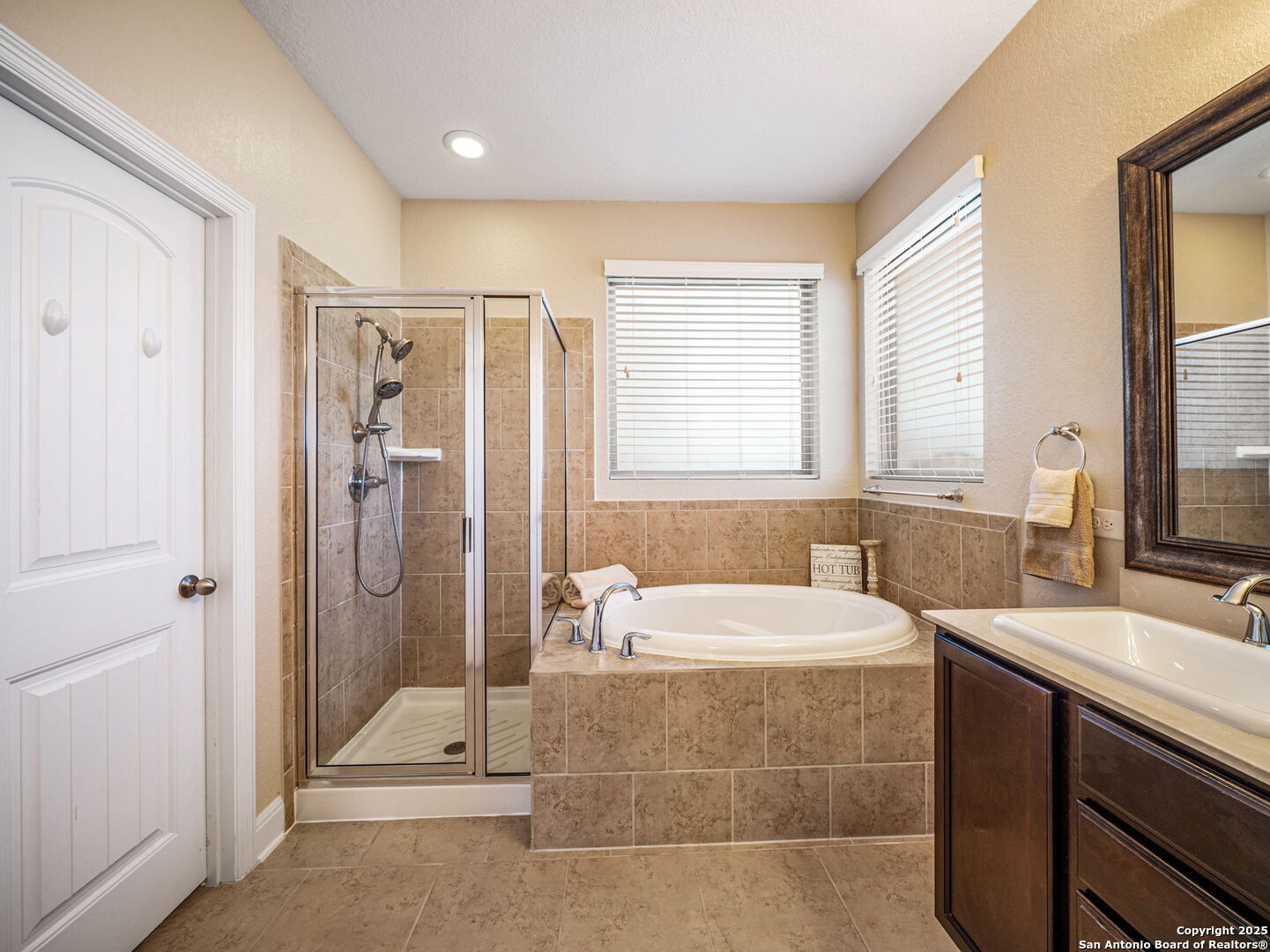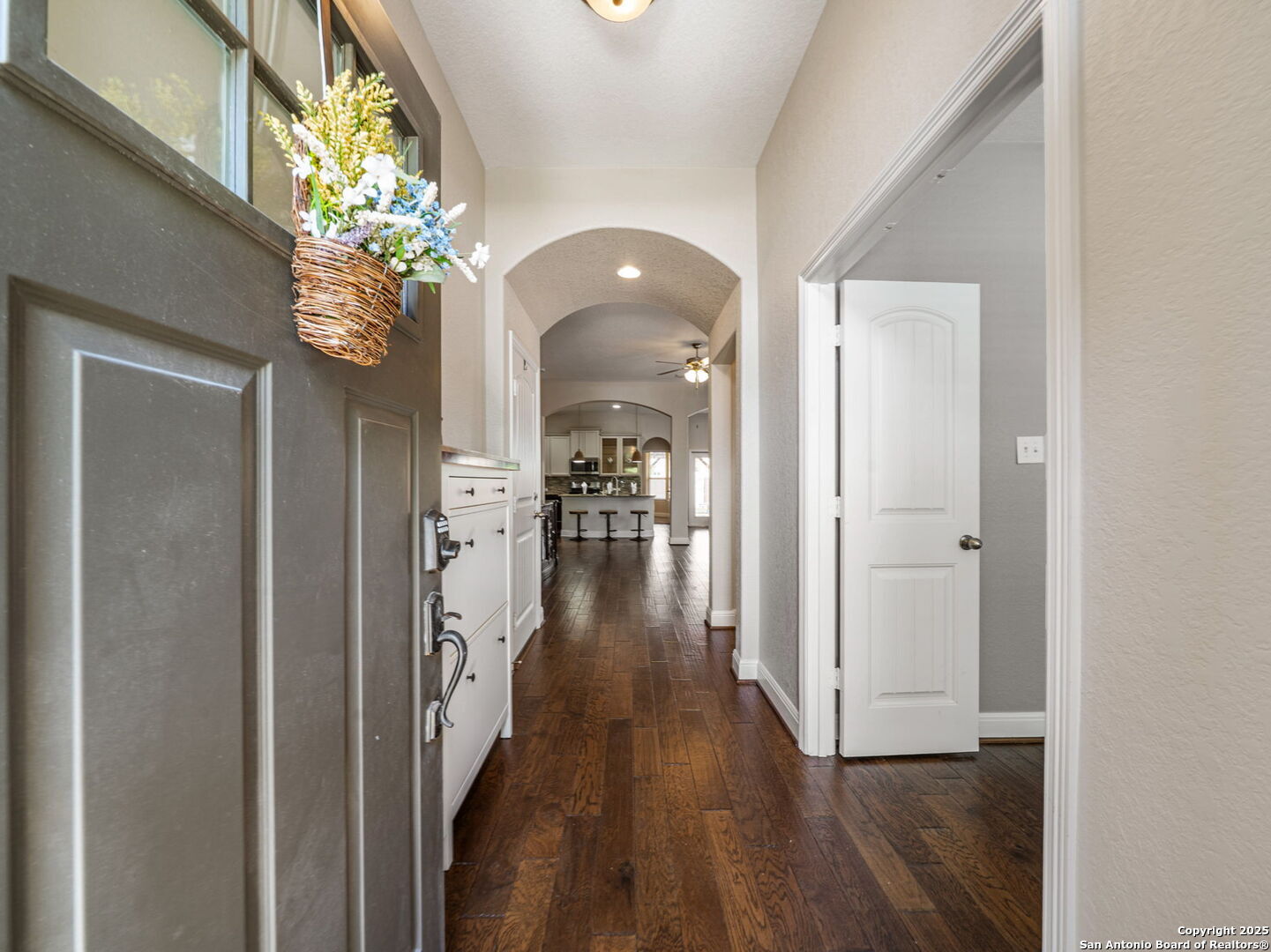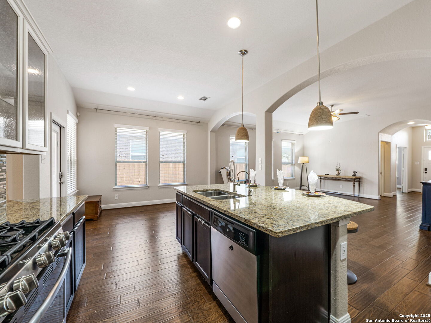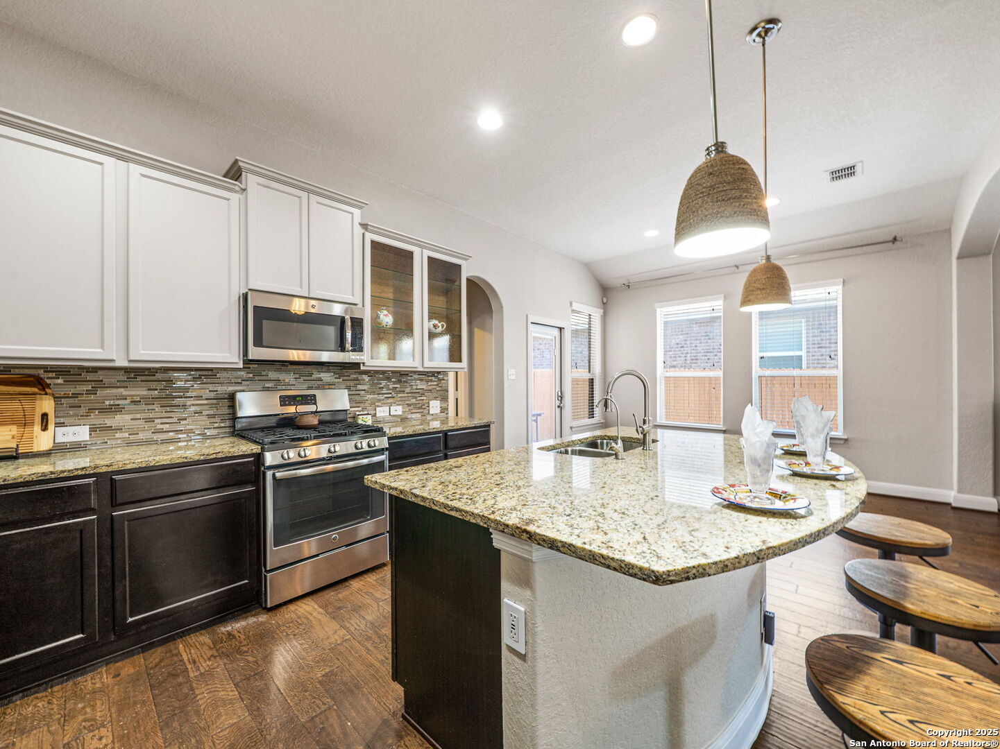 Welcome to a Home That Will Take Your Breath Away From the moment you arrive, this stunning single-story home invites you in with warmth, charm, and timeless style; where comfort meets elegance. The exterior makes a lasting impression with four sides of classic brick accented by striking stone details. Step inside, and you're greeted by soft cream-toned walls and rich wood flooring that flows gracefully through the entry, study, living room, breakfast area, and kitchen-setting the stage for a space that feels both refined and welcoming. At the heart of the home, the kitchen is every chef's dream. Granite countertops gleam under the glow of under-cabinet lighting, while an extended breakfast bar offers the perfect gathering spot. With an abundance of cabinetry-including a charming display cabinet with glass insets-there's a place for everything, and plenty of room to create. Whether you're hosting friends or whipping up your favorite meal, this kitchen inspires. The open-concept living and dining areas create a natural flow, ideal for everyday living and special occasions alike. And when you're ready to unwind, step outside to your very own backyard retreat. A covered patio and extended outdoor living space-complete with a stylish pergola and a cowboy pool-set the scene for peaceful mornings, sun-soaked afternoons, and evenings spent under the stars. Tucked away in its own private corner of the home, the spacious primary suite offers a serene escape. The en suite bathroom is designed to indulge, with granite countertops, dual vanities, a soaking tub, separate shower, and a generously sized walk-in closet. The split-bedroom layout ensures quiet and comfort, with two additional bedrooms thoughtfully placed on the opposite side of the home-perfect for guests, family, or a home office. Every inch of this home is crafted with care, offering a perfect blend of function, beauty, and comfort. From the cozy corners to the entertainer's backyard, this is more than just a home-it's a place to live, relax, and fall in love with your every day. Come see it for yourself. You just might find it's everything you've been looking for-and more.