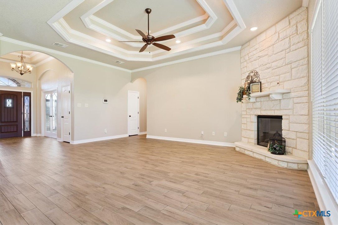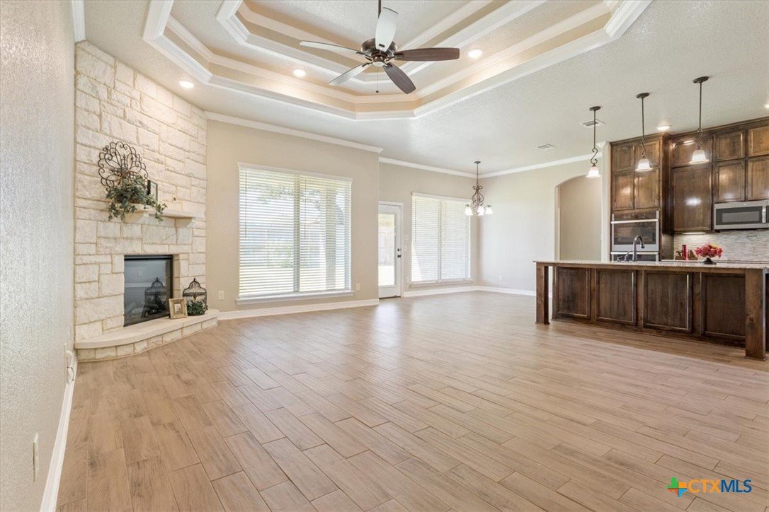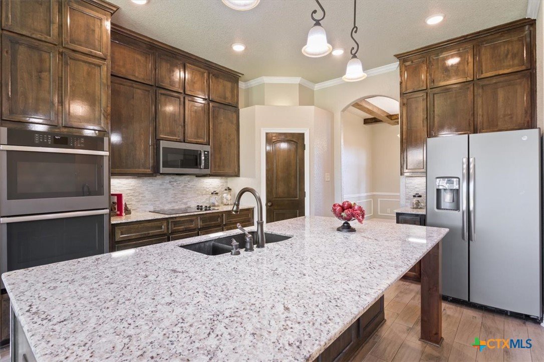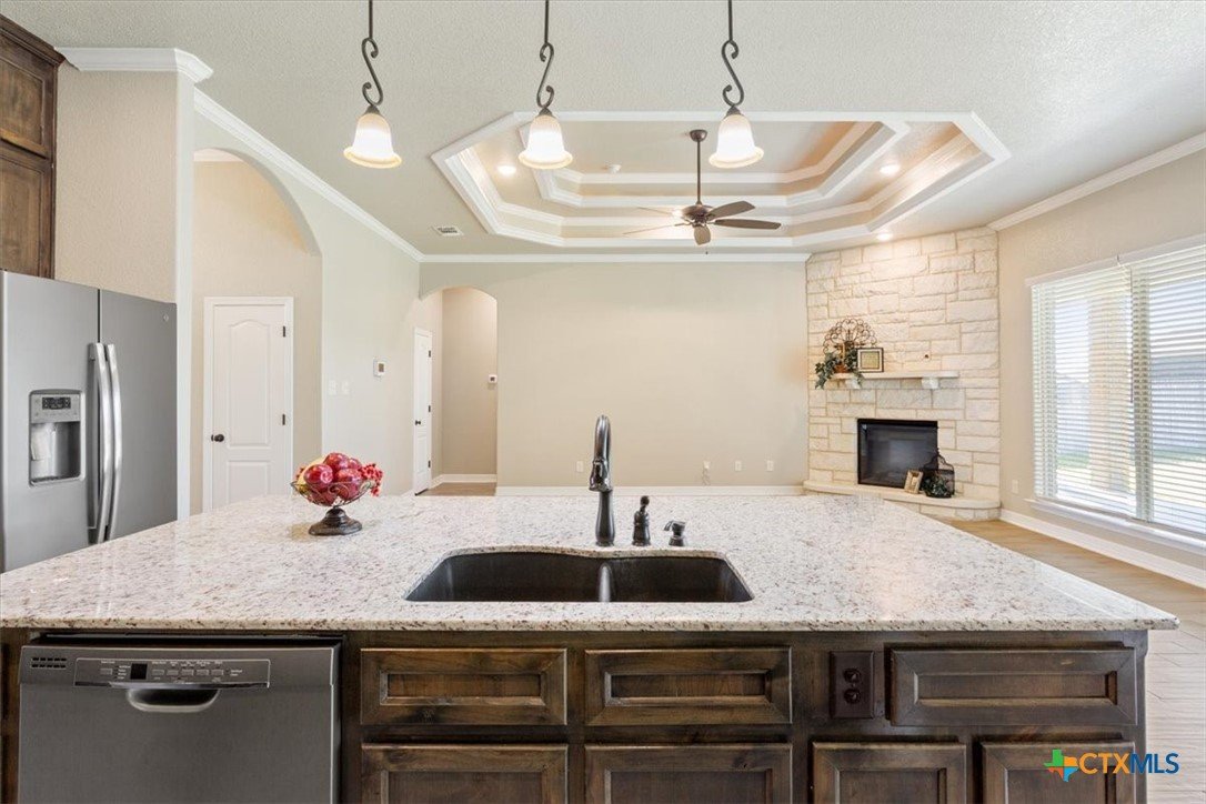 OPEN HOUSE SUNDAY NOV. 2ND FROM 12 - 2 PM. This spacious home offers a perfect blend of elegance, comfort, and modern convenience. Step into the expansive living area that flows seamlessly into the kitchen and breakfast room. The living room features an electric fireplace, pop-up ceilings with rope lighting, and layered crown molding, creating a warm, inviting ambiance. Entertaining is effortless with both formal dining and breakfast areas offering ample space for memorable dinners and casual gatherings. The chef’s kitchen is a dream, complete with solid granite countertops, a center island, top-of-the-line Slate electric appliances including a double oven, and a generous pantry for all your storage needs. Retreat to the luxurious master suite featuring a pop-up ceiling with rope lighting, providing elegance and privacy. The spa-like ensuite boasts marble accents, a jetted tub, a separate dual-head shower, dual marble vanities, and a spacious walk-in closet. Additional bedrooms are generously sized and perfect for family or guests. Step outside to your private oasis with a large covered patio, wood privacy fence, sprinkler system, and freshly sodded yard—perfect for entertaining or enjoying serene outdoor moments. With high-end finishes, thoughtful design, and the exceptional craftsmanship Carothers Homes is known for, this home truly epitomizes luxury living. Home is in great condition and ready for move in. Priced to sell ! more pics to come