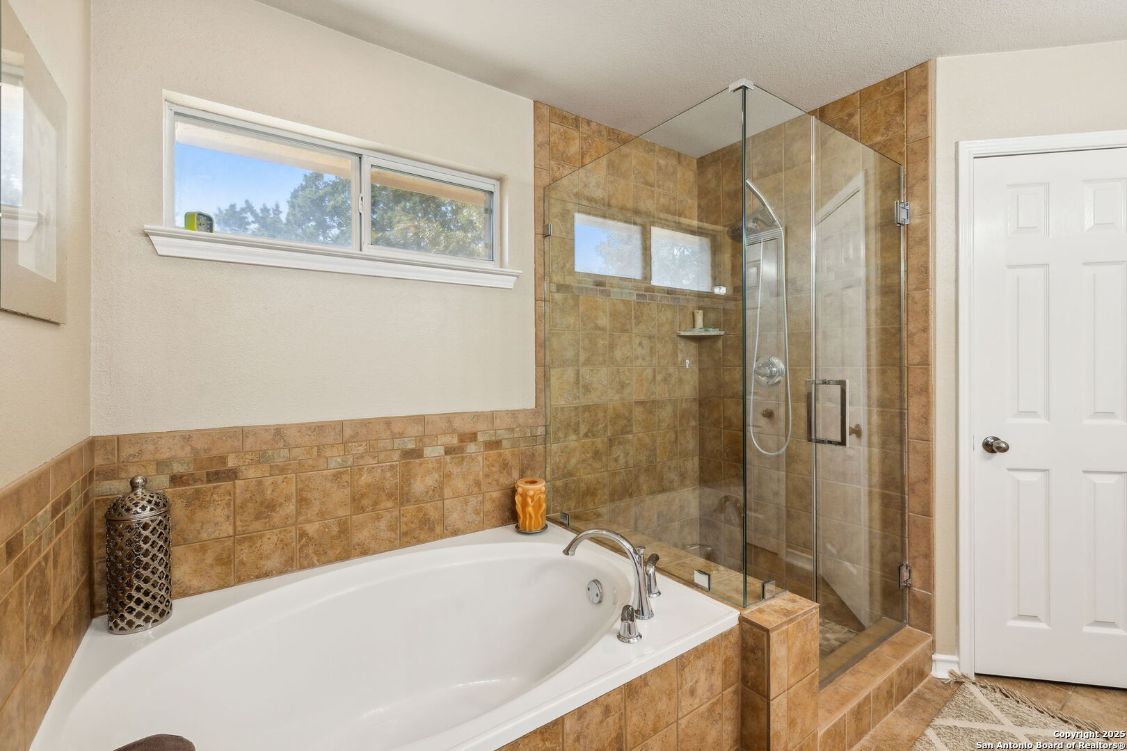 Move-In Ready Stone Oak Home | Top Schools | New Roof | Updated Kitchen | Quick Access to Highways & Shopping Nestled under mature oaks in one of Stone Oak's most desirable neighborhoods, this updated 4-bedroom, 3.5-bath home blends timeless curb appeal with modern comfort. Zoned to top-rated NEISD schools, it's the perfect choice for families and commuters alike. Inside, you'll love the bright, open layout with both formal and casual dining spaces, a private study, and a spacious living area with backyard views. The chef's kitchen features dark, rich cabinetry, granite countertops, a central island, and a premium Thermador gas range. The upstairs primary suite is a true retreat with vaulted ceilings, a sitting area, and a spa-inspired bath with dual vanities, a walk-in shower, and fresh updates. Recent improvements include a brand-new roof, new carpet upstairs, and an updated primary shower. Out back, the covered patio overlooks a landscaped, tree-shaded yard. Enjoy neighborhood amenities like a pool, tennis and basketball courts-all just steps away. Plus, with major highways and shopping centers just minutes from your door, convenience is built right in. Perk: Many furnishings will convey at no extra cost! Don't miss this Stone Oak gem-schedule your showing today!