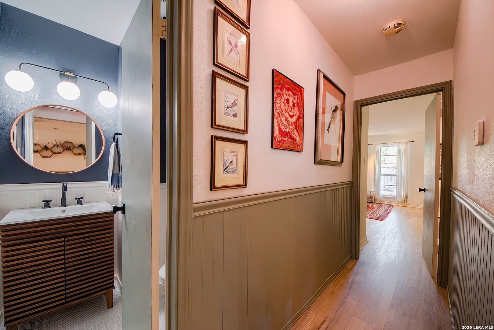 THIS CLASSIC, UPDATED TWO-STORY OFFERS SUCH LOVELY CHARACTER IT WILL CONVINCE YOU TO LOOK NO FURTHER! Set at the end of a street in quiet and coveted Wildwood, just off Bandera Road and Loop 410 in NW San Antonio, this charming brick two-story beckons from the street with mature oak trees shading a sweeping yard and front porch. Step through the front door and be greeted by an incredibly charming and flowing floor plan with wood look luxury vinyl and tile flooring. The entryway ceiling opens to the second floor for a dramatic effect; the wainscoting, brickwork, modern lighting and fixtures give the home interesting class. To the left, find a custom bar area with mahogany and maple wood woodwork and wine fridge, the ideal accent for the generous dining room. This space flows into the dining room with a brick fireplace, custom made poplar mantel and wood art box accents on the far wall. Talk about a chic atmosphere that both welcomes a cozy night at home as well as entertaining! The kitchen, open to living, offers incredible counter and cabinet space as well as an eat-at breakfast bar next to a breakfast nook with space for a kitchen table. Chefs will adore the gas cooking and fresh stainless appliances!! The extremely spacious (29'x17') primary bedroom is tucked at the back of the first floor to offer a view of the backyard as well as to maximize privacy. There is enough space here for office space, sitting area or workout nook. The renovated ensuite bathroom has a modern dual square vessel sink vanity with gorgeous acacia wood countertop, dedicated water closet and and walk-in tile shower with glass door. The downstairs also offers a half bath for guests and a dedicated utility room for laundry with a large window for natural light. Up stairs with beautiful refinished wood bannister find a useful loft with closet. Use for another living space, playroom or a dedicated office. Then, down the hall, two very roomy secondary bedrooms offer nice closet space and share a full guest bath with tub and shower combo. Another surprise is back downstairs where the back door leads in to a heated and cooled Florida room awash with natural light. Currently utilized as an artist studio, it could easily be another living space or hobby room. Now, outdoors, the level backyard offers a lot of privacy along several concrete pads for entertaining and barbequeing -- maybe even a pad for a hot tub -- surrounded by mature trees, lawn and simple landscaping. A gazebo is a lovely place to hang out and a large metal storage shed is available for garden tools. The attached two-car garage is more than an afterthought with its extra space for storage and a driveway widened to allow for parking for up to six vehicles! HVAC system was recently replaced the gas furnace and water heater mean lower utility bills. Located halfway between Loops 410 and 1604 off Bandera Road, this home is ideally situated in a peaceful neighborhood that is yet so close to everything. Two minutes from HEB and around the corner from other shopping and restaurants, you can't believe how much time you can save in commuting for the essentials. Also, it is just 15 minutes from Lackland AFB, the Medical Center, and 20 minutes to all the fun downtown on the Riverwalk. NISD schools are nearby but so is access to San Antonio's famous park system for outdoor enthusiasts. The French Creek Trailway is just 1/5 of a mile from your front door -- leading to the Leon Creek Greenway and multiple other city parks. No need to load up the car for a park trip, just grab the bikes and leashes and head down the street. Run to this one before someone else calls her home!