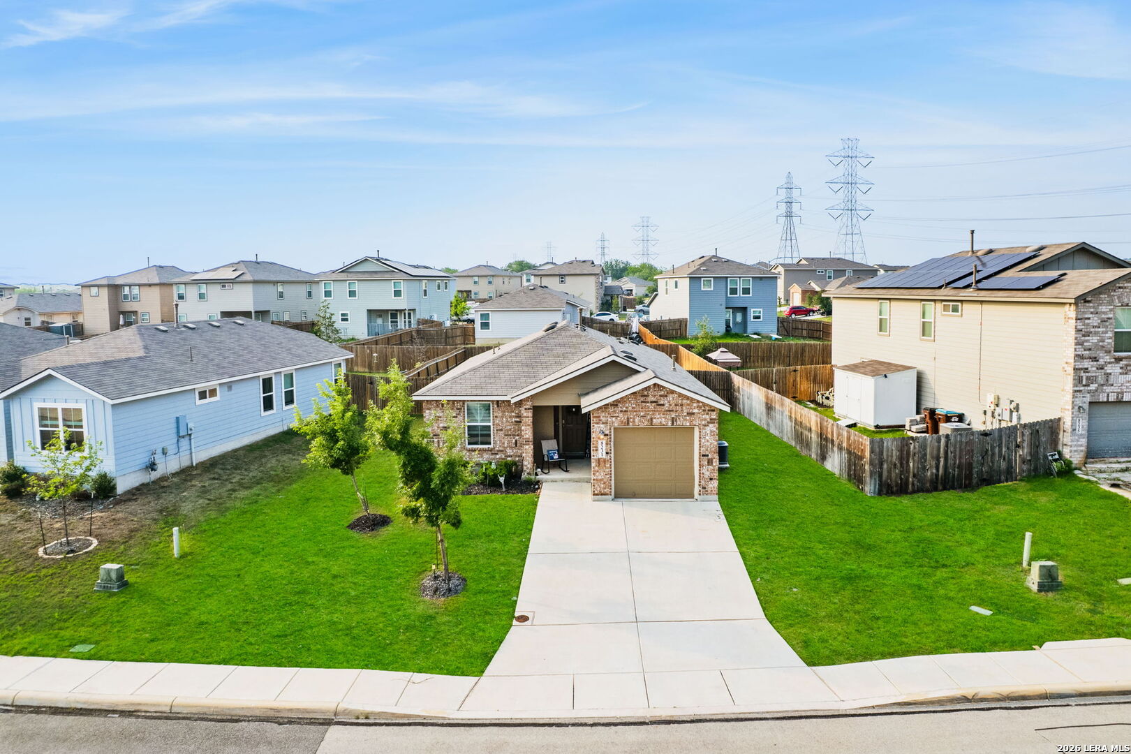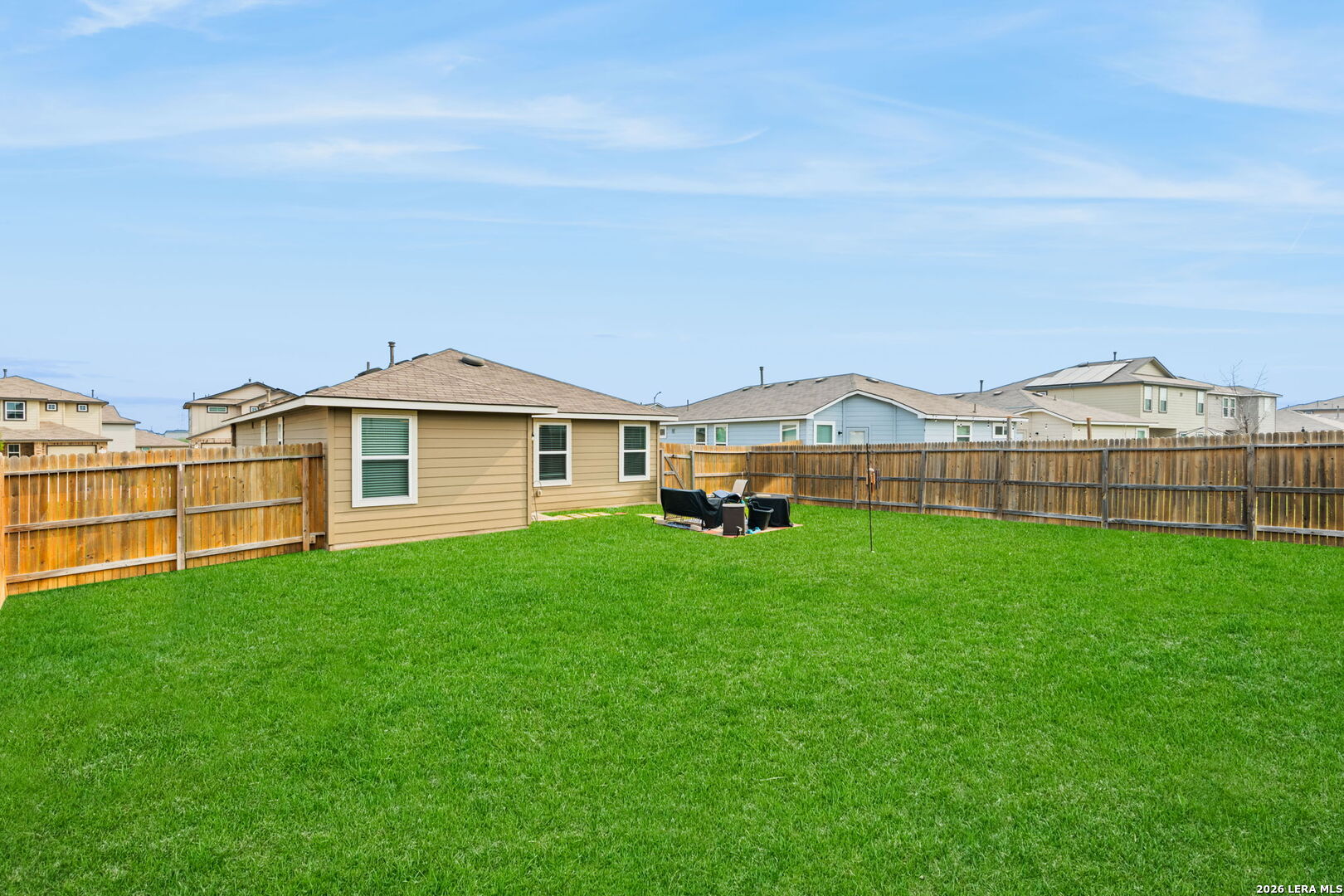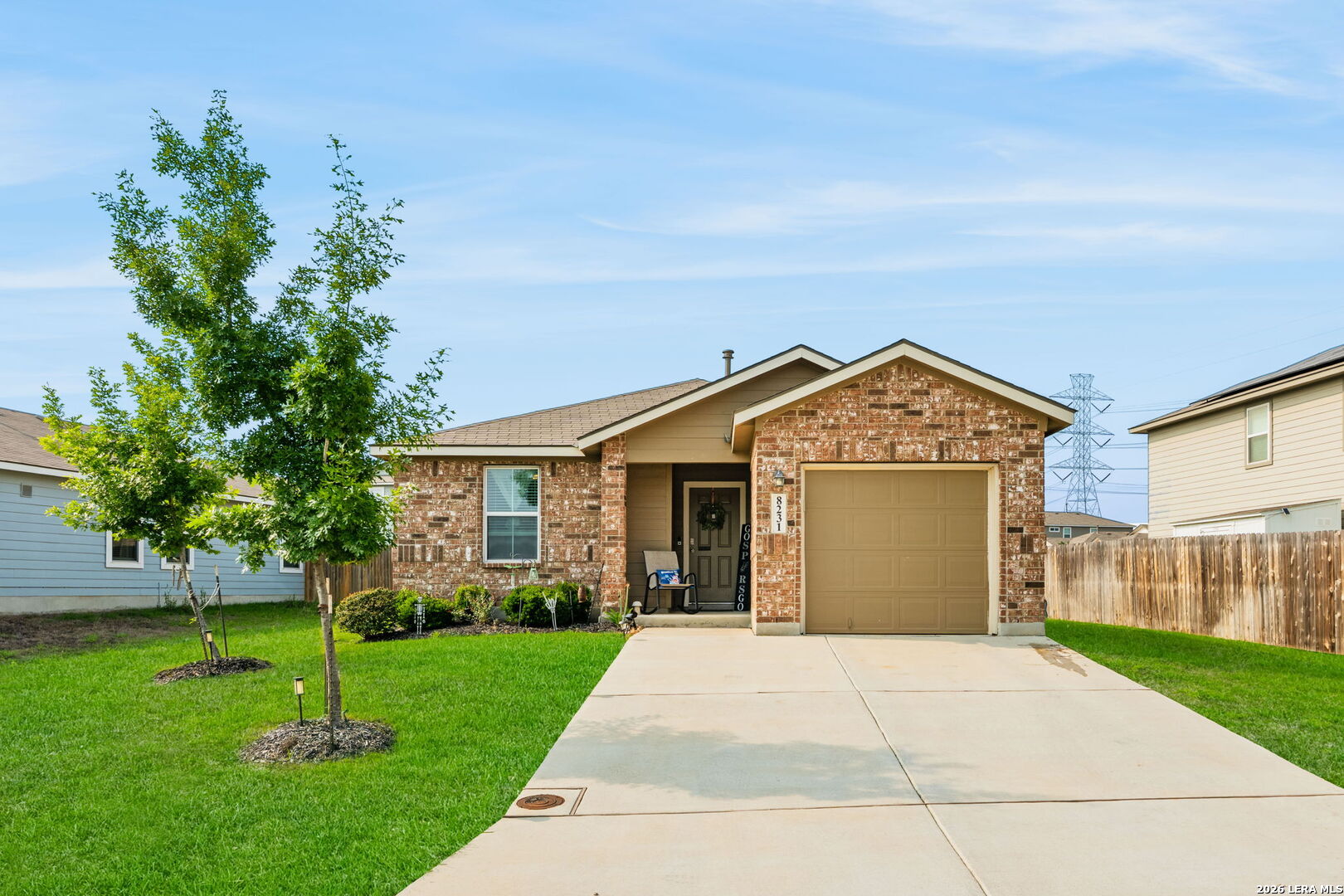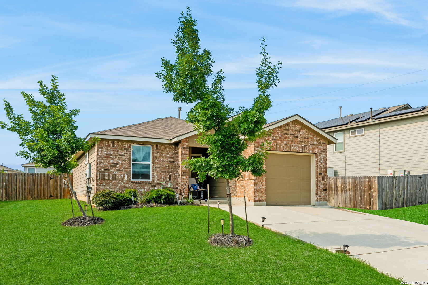 ** OPEN HOUSE on Saturday, 05/02/2026 from 11-1pm ** Single-story open floor plan home with a classic brick exterior designed for comfortable everyday living. The interior features laminate flooring in main areas and carpet in bedrooms, creating a balanced blend of style and comfort. The kitchen with stainless steel appliances includes a convenient breakfast bar and recessed lighting throughout, offering a bright and functional space for cooking and gathering. The primary suite includes a full bathroom, large mirror, single vanity, and a walk-in closet, providing practical storage and a well-laid-out private retreat. Step outside to a spacious backyard with privacy fence, offering open space with no trees, allowing for flexible outdoor use, added sunlight, and easy maintenance. Community features include access to a neighborhood park and pool, adding to the overall lifestyle appeal. Conveniently located with easy access to I10 and Loop 1604, providing a short commute to Randolph Air Force Base and Fort Sam Houston. Situated within Judson ISD, known for its strong reputation in the area.