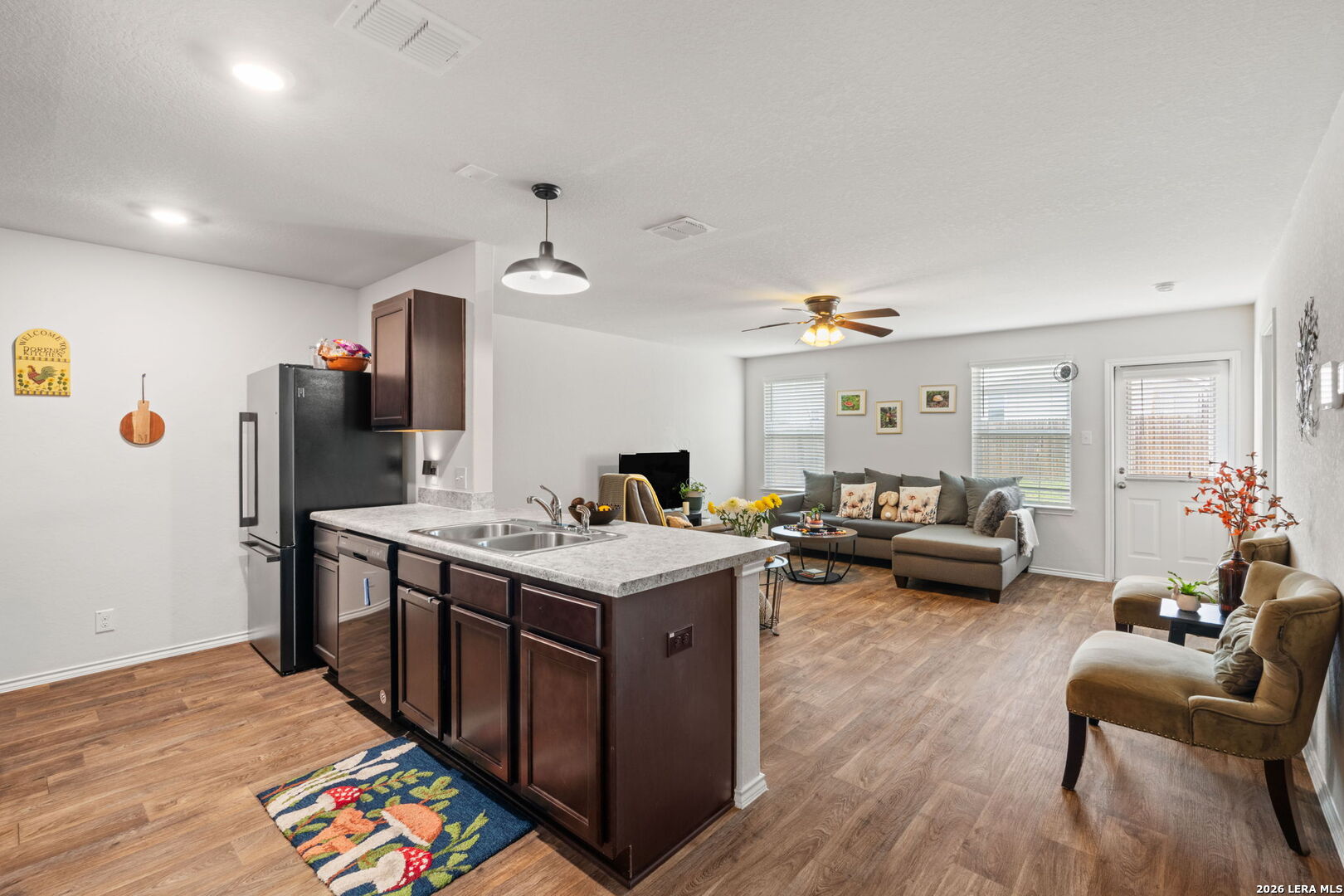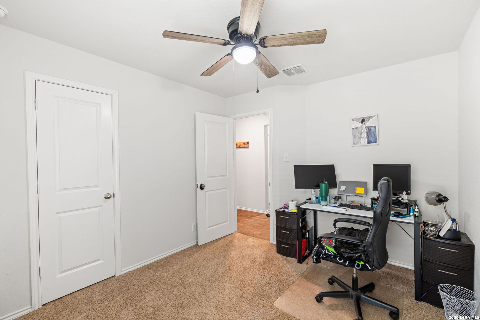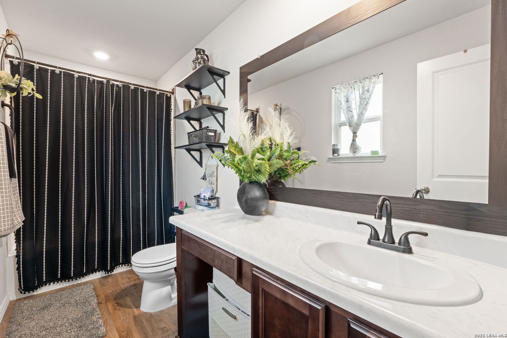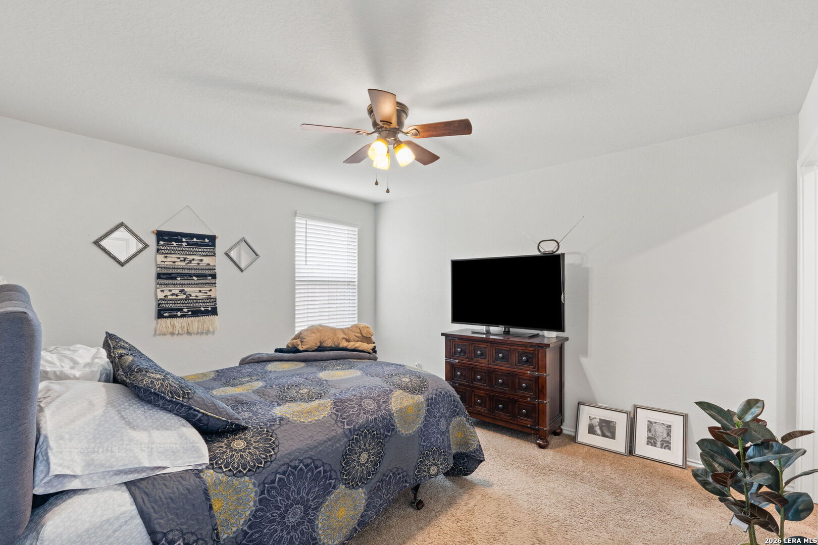 ** OPEN HOUSE on Saturday, 05/02/2026 from 11-1pm ** Single-story open floor plan home with a classic brick exterior designed for comfortable everyday living. The interior features laminate flooring in main areas and carpet in bedrooms, creating a balanced blend of style and comfort. The kitchen with stainless steel appliances includes a convenient breakfast bar and recessed lighting throughout, offering a bright and functional space for cooking and gathering. The primary suite includes a full bathroom, large mirror, single vanity, and a walk-in closet, providing practical storage and a well-laid-out private retreat. Step outside to a spacious backyard with privacy fence, offering open space with no trees, allowing for flexible outdoor use, added sunlight, and easy maintenance. Community features include access to a neighborhood park and pool, adding to the overall lifestyle appeal. Conveniently located with easy access to I10 and Loop 1604, providing a short commute to Randolph Air Force Base and Fort Sam Houston. Situated within Judson ISD, known for its strong reputation in the area.