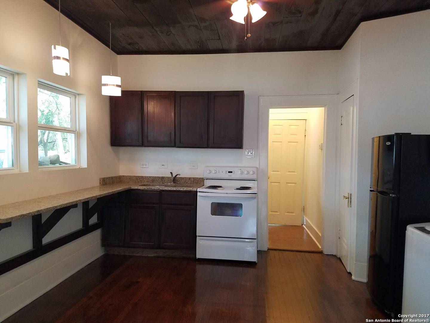 Charming 1 bedroom, 1 bath duplex located within walking distance of downtown San Antonio. This inviting home features original wood floors and an open floorplan with a cozy fireplace that adds character and warmth. The kitchen offers granite countertops, updated lighting fixtures, and a refrigerator for your convenience. Enjoy the charm of a classic home with modern touches, all in a prime location close to San Antonio College, St Mary's Strip and The Pearl Brewery. Electric, water, and garbage are included in the rent, making budgeting simple and convenient.