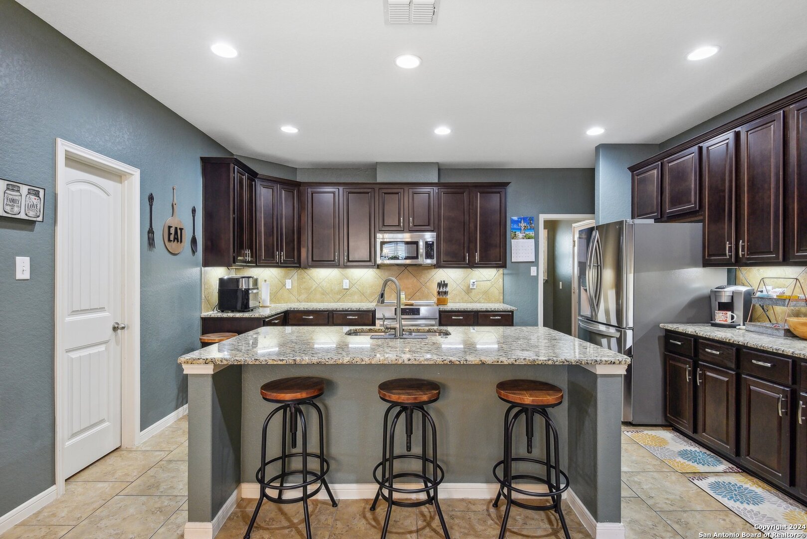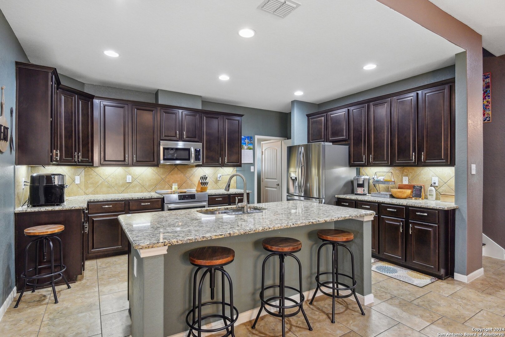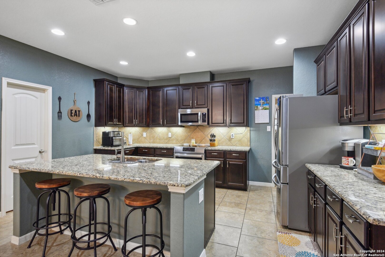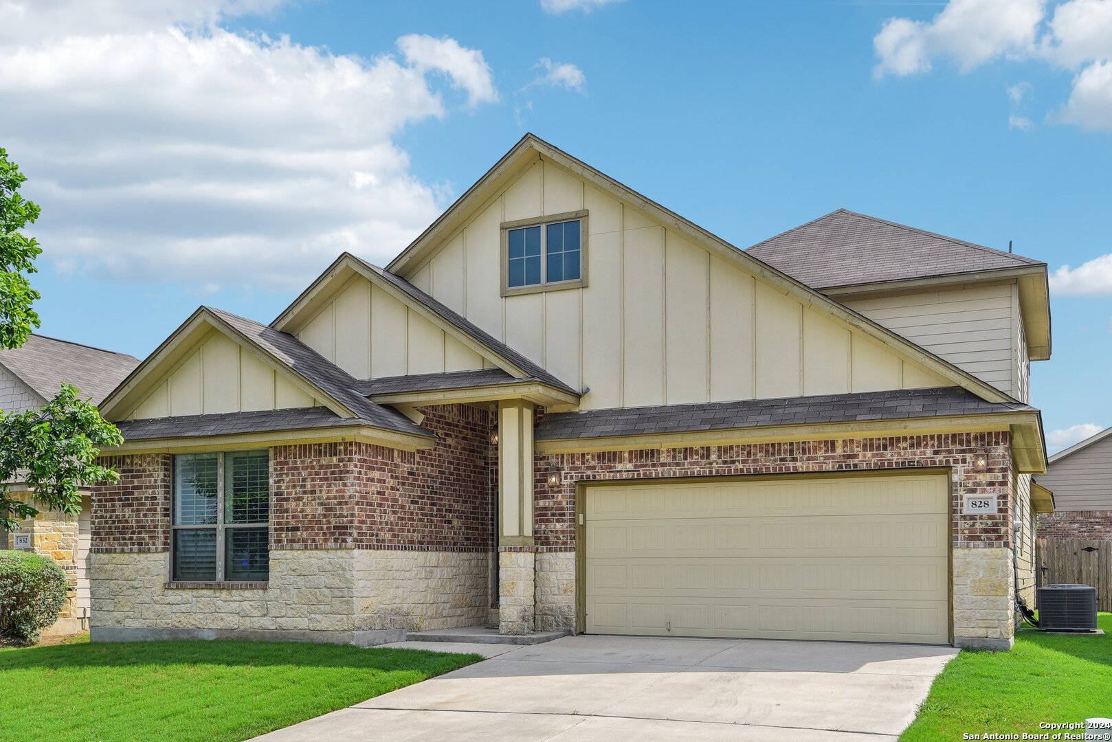 There is an assumable VA Loan at a 3.15% Discover the perfect blend of luxury and comfort in this stunning 3-bedroom, 3-bathroom residence, built in 2014, offering 2,758 square feet of exquisite living space. The beautiful brick exterior exudes timeless charm, while the covered back patio provides an ideal spot for relaxation and outdoor entertaining. Step inside to find a spacious and inviting living room, perfect for gatherings and cozy nights in. The kitchen is a true highlight, featuring elegant dark cabinets that perfectly complement the solid countertops. The large island not only provides ample workspace but also serves as a central hub for dining and entertaining. Whether you're hosting a dinner party or enjoying a quiet meal, this kitchen is sure to impress. The home boasts three generously sized bedrooms, ensuring comfort and privacy for all family members and guests. The master suite is a retreat unto itself, offering a serene space to unwind after a long day. There are two additional flex rooms offering endless possibilities to tailor the home to your needs. The first-story flex room can serve as an exercise room or a home office, while the upstairs room, equipped with its own full-size bathroom, can be transformed into a media room, game room, guest suite, or even a second primary suite. The 2-car garage provides plenty of space for vehicles and additional storage, adding to the home's practicality. Located in a highly desirable neighborhood, this home is close to schools, shopping, and dining options. Don't miss out on this incredible opportunity to own a meticulously maintained home with modern amenities and classic charm. Schedule your tour today and experience the best in comfortable, stylish living.