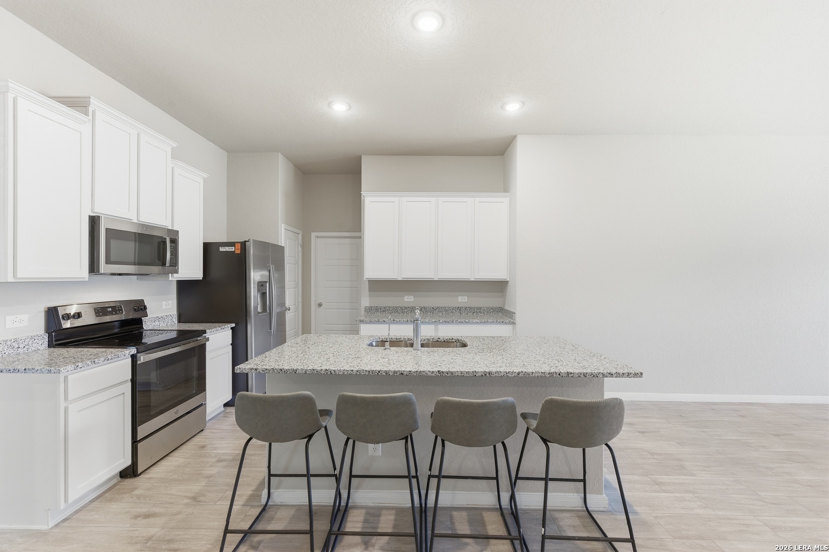 Don't miss this gorgeous one-story home featuring 3 bedrooms, 2 baths, study/office and a two car garage. Kitchen features granite counter tops, white cabinets, island with sitting area, stainless steel appliances including refrigerator. Large primary bedroom with bay window,primary bathroom with double vanity, area for make-up station, walk-in shower, and walk-in closet. Study/Office with french doors. New ceramic tile floors throughout home. Property sits at the end of a cul-de-sac, no back neighbor with a beautiful country view. Washer and Dryer conveys. Sprinkler system.