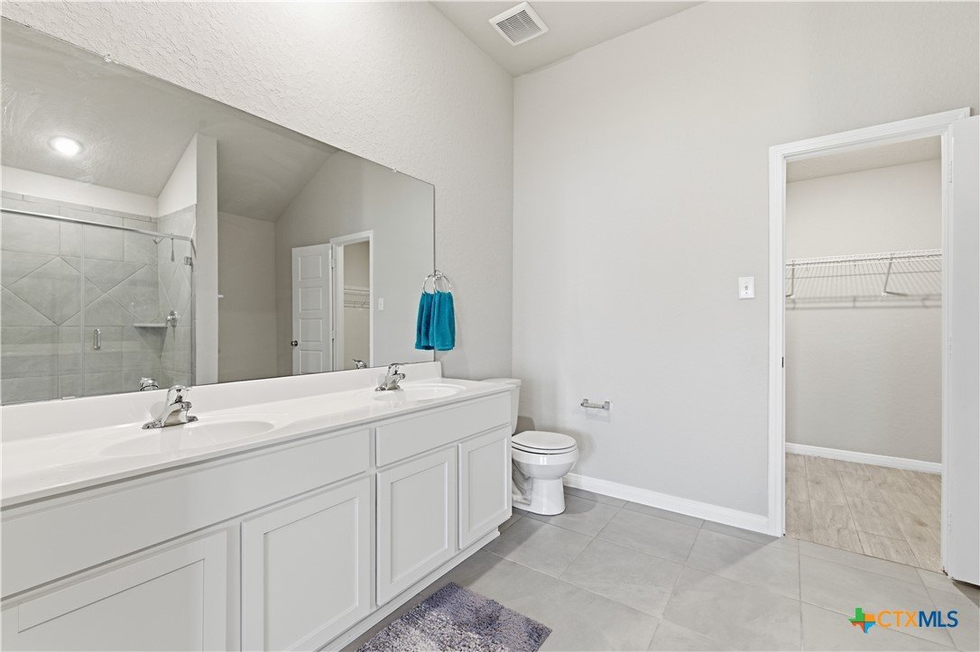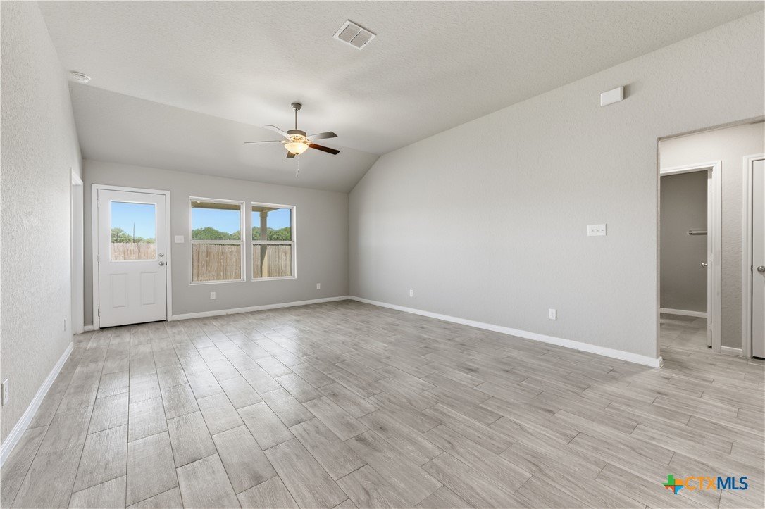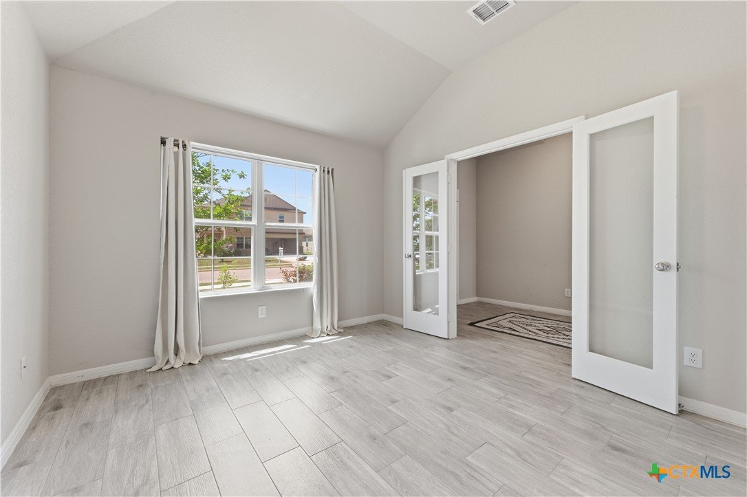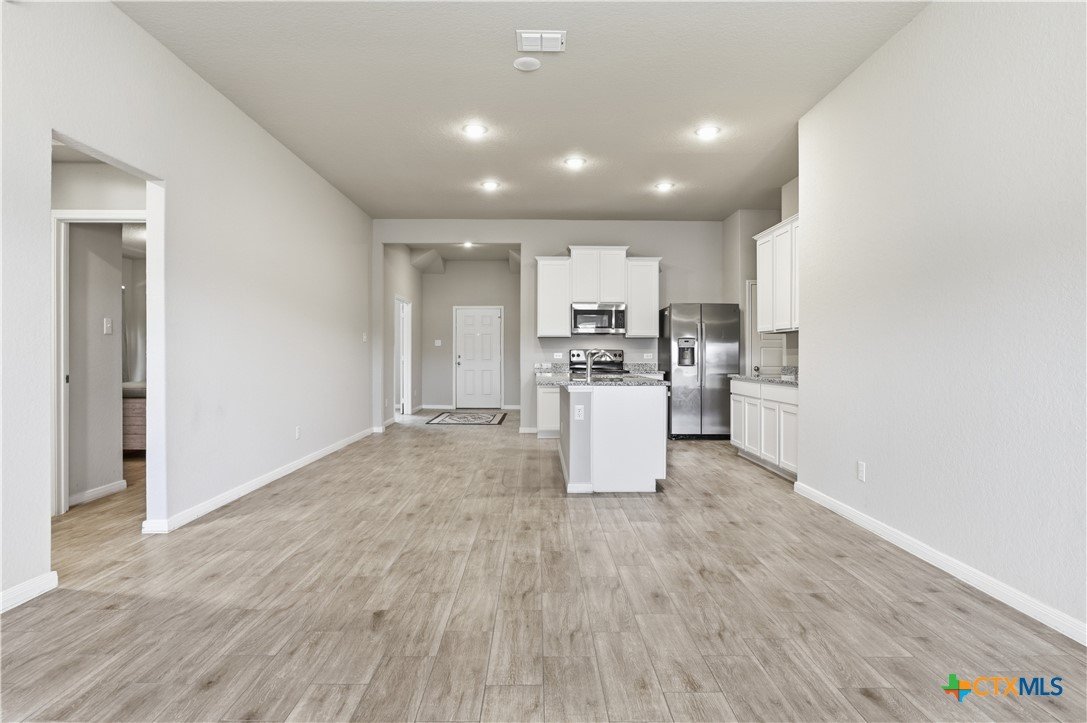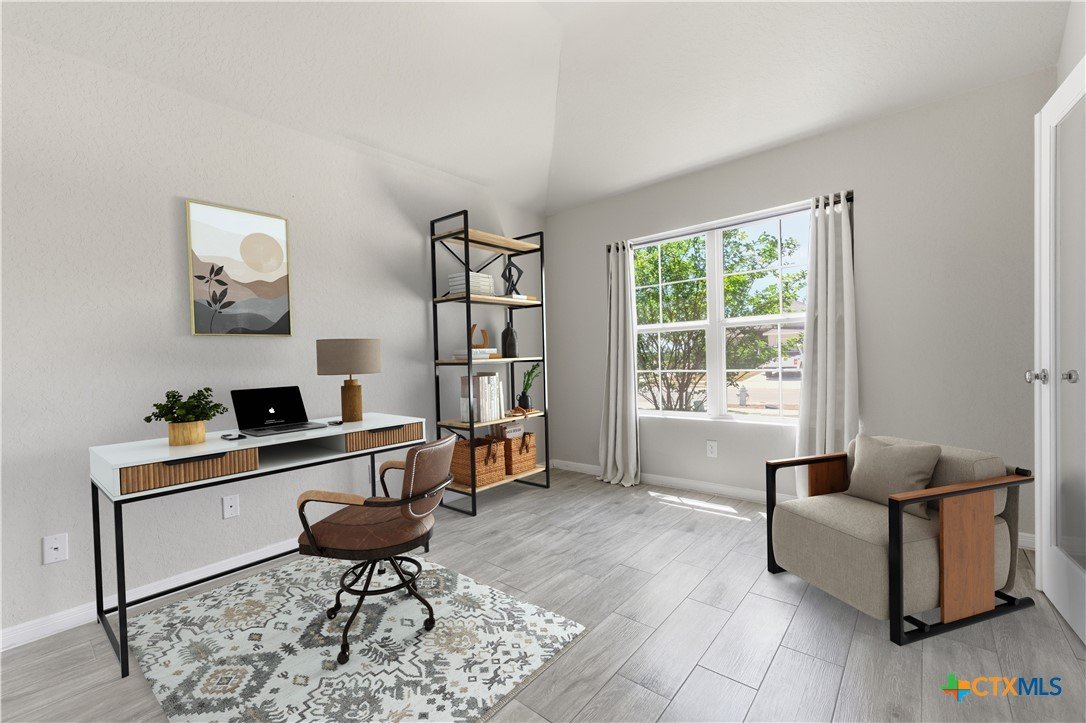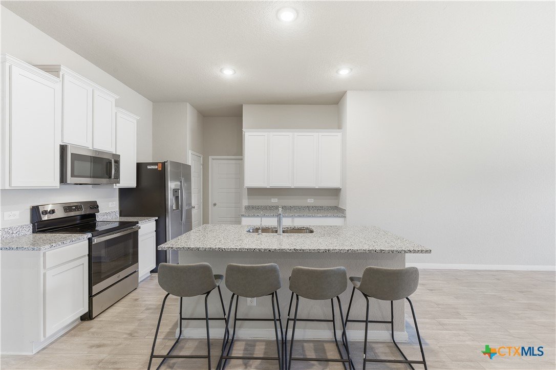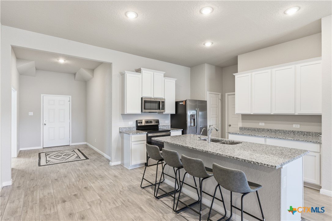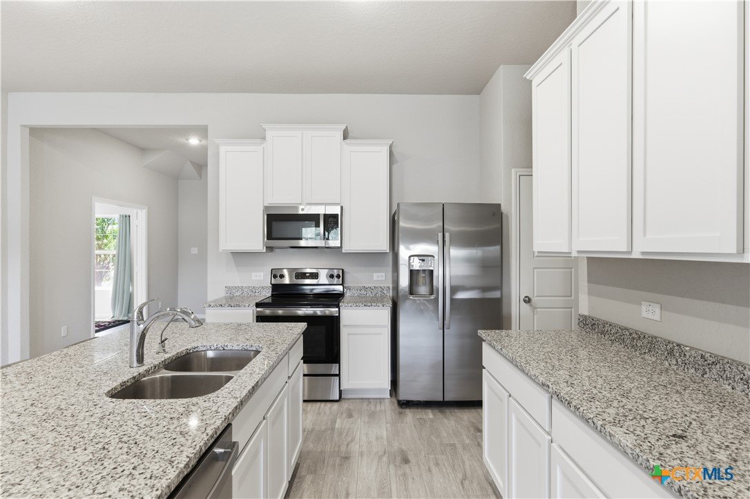 Don't miss this gorgeous one-story home featuring 3 bedrooms, 2 baths, study/office and a two car garage. Kitchen features granite counter tops, white cabinets, island with sitting area, stainless steel appliances including refrigerator. Large primary bedroom with bay window,primary bathroom with double vanity, area for make-up station, walk-in shower, and walk-in closet. Study/Office with french doors. New ceramic tile floors throughout home. Property sits at the end of a cul-de-sac, no back neighbor with a beautiful country view. Washer and Dryer conveys. Sprinkler system.
