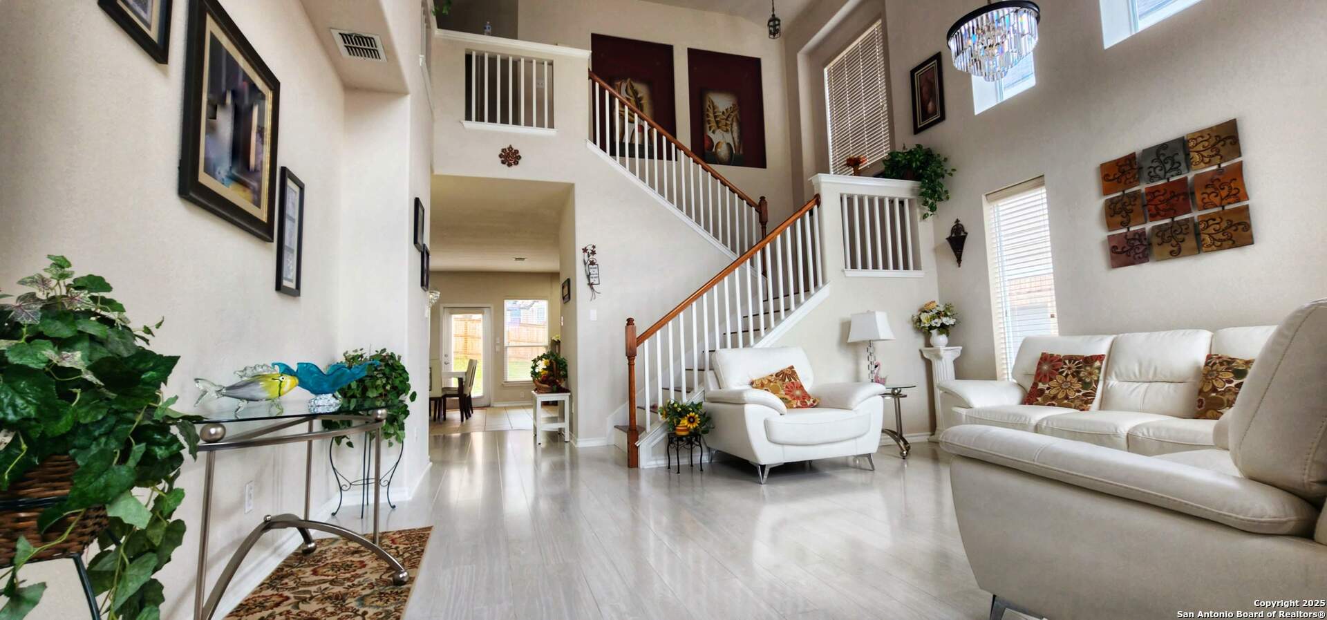 Stunning two story, stone and stucco home, located in the highly desired gated community of stone oak area. This home features an open floor plan with a soaring vaulted ceiling, 2 living area, large kitchen with massive dining, 3 bedrooms with 2 and half baths and a large game room. New HVAC, new roof, new fence, new flooring and a no-carpet House. Extended Patio in backyard for family entertainment. Very spacious 2-car garage with a 200 sq/ft loft right above the garage for extra storage Refrigerator, Washer and Dryer Included. Minutes away from NEISD Schools, Mays YMCA, Parman Library, HEB, Target and other dinning/shopping centers.