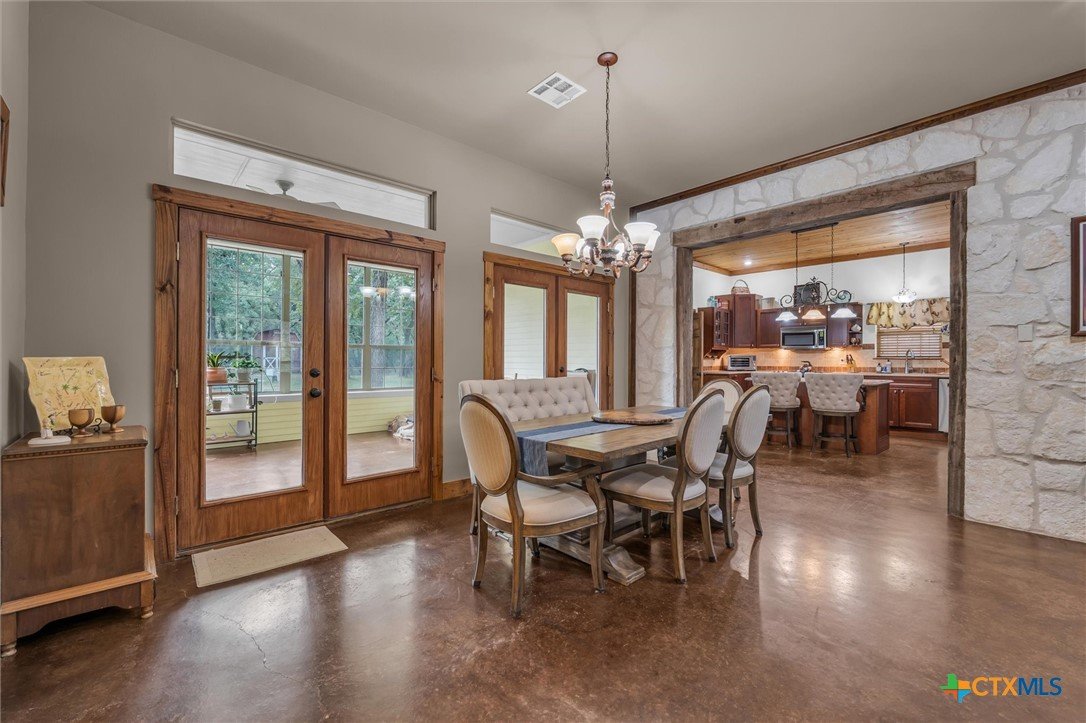 831 County Road 2200, Aquilla, TX – Country Living on 15.9 Acres, Escape to peaceful country living with this beautiful custom stone home surrounded by 15.9 acres of heavily wooded land. Inside, you’ll find a spacious kitchen, large dining area, comfortable bedrooms, and bathrooms designed for convenience. The sunroom provides a relaxing retreat with views of the property’s natural beauty. A highlight of this property is the impressive 1,200 sq. ft. workshop—insulated, heated, and cooled—complete with a wood-burning stove, kitchen, washer and dryer hookups, a full bathroom, and a bedroom, making it versatile for work, hobbies, or guest accommodations. Enjoy quiet mornings and evenings on the back porch while watching wildlife roam freely. If you’re looking for serenity, privacy, and functionality, this property is a must-see.
