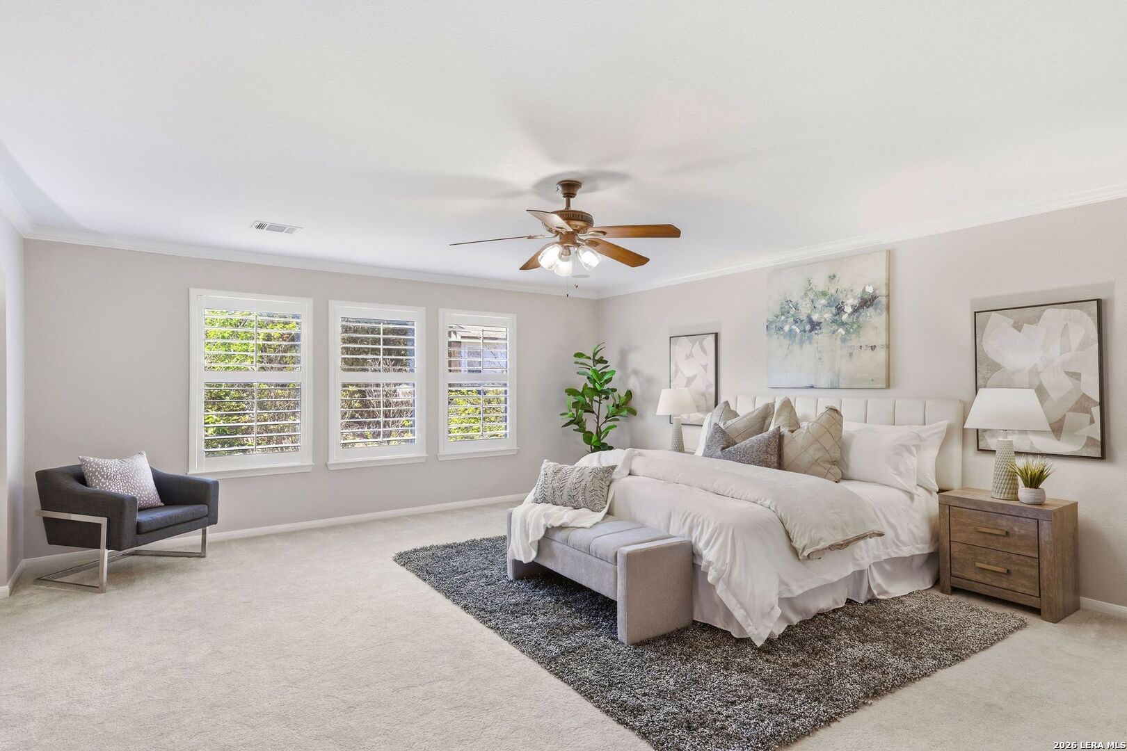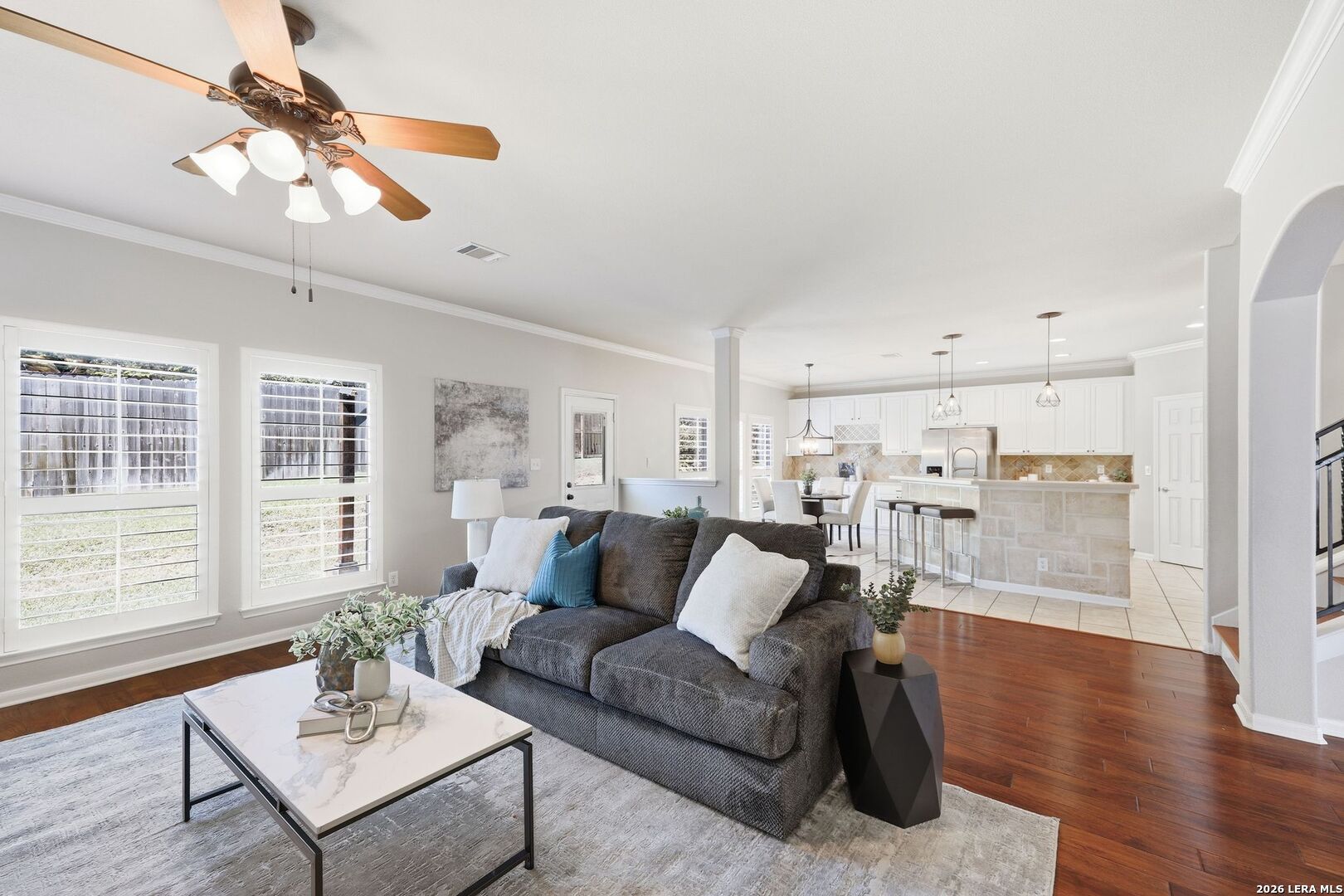 ***OPEN HOUSE SATURDAY APRIL 11, 1-3pm *** VA Assumable Rate 2.75 Welcome to your hilltop retreat, where downtown San Antonio lights shimmer from the second story of the Oaks at Sonterra's newest listing. This true turnkey five-bedroom, three-bathroom home in the heart of the Oaks at Sonterra is one of a kind. Originally a formal model home for the west side of the neighborhood during development, it is packed with upgrades. Over $80,000 in improvements since 2020 include new wood flooring, fresh interior paint, updated light fixtures, gutters, and plantation shutters on both floors. The property also features new landscaping on all four sides and updated kitchen appliances. A loft space above the garage provides additional storage. The garage is equipped with a chair lift and an EV charger. All bedrooms feature walk-in closets. The main level offers two living areas, formal dining, an eat-in kitchen, laundry, and a bedroom currently staged as a home office. Upstairs, you'll find the oversized primary suite, three additional bedrooms, and a spacious game room. Don't miss the opportunity to experience this exceptional property and live like royalty on Queens Oak.
