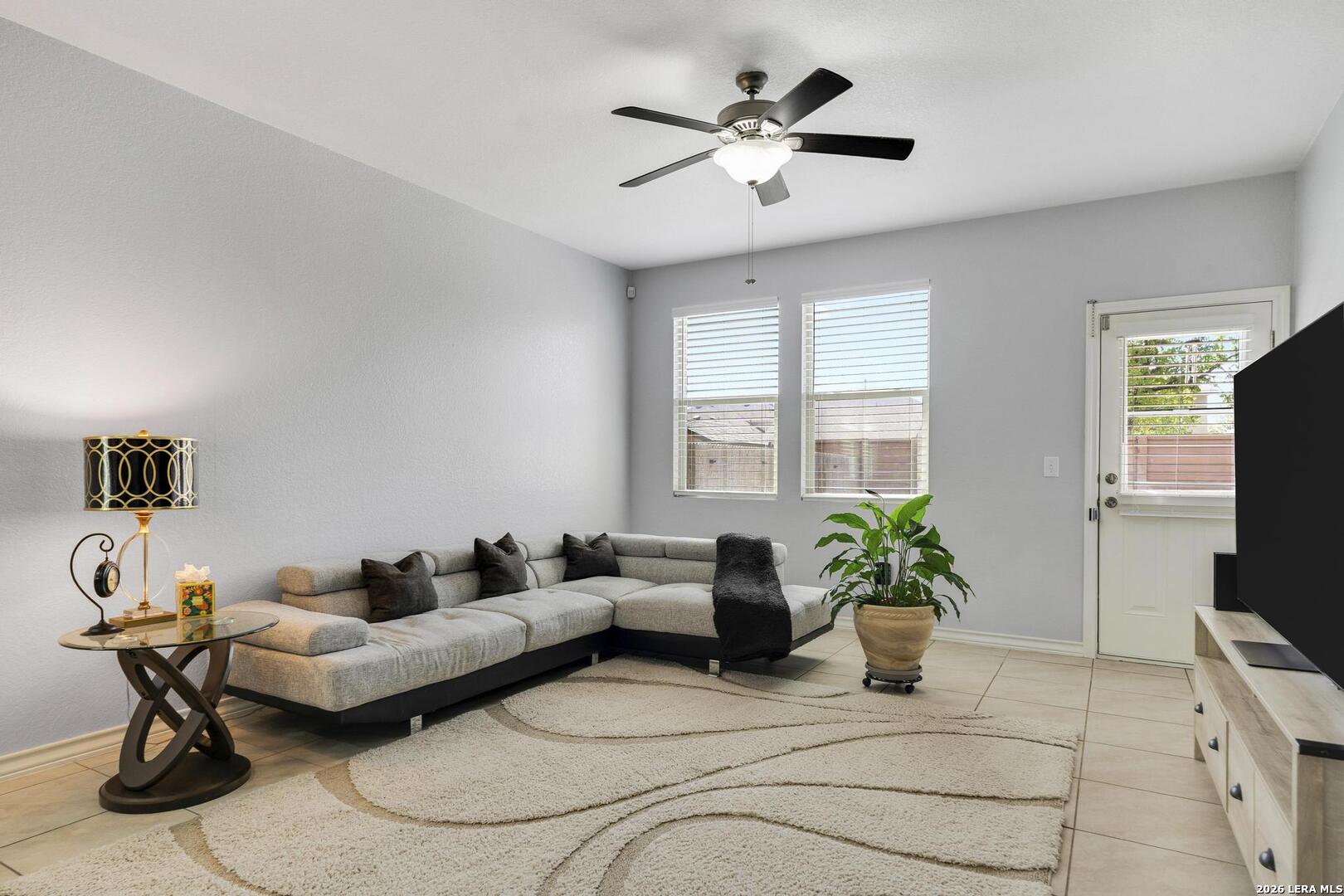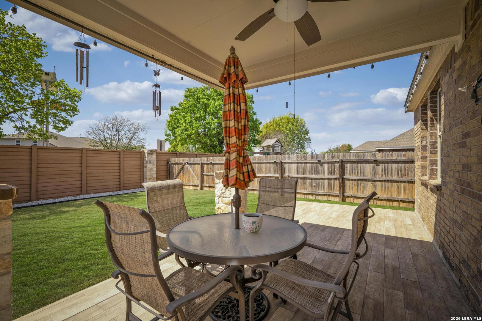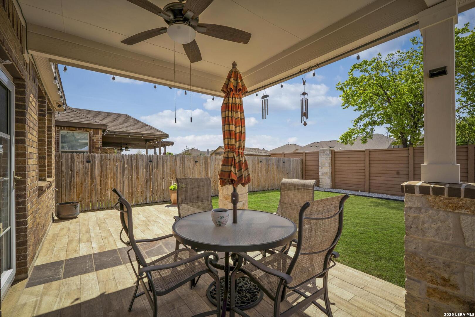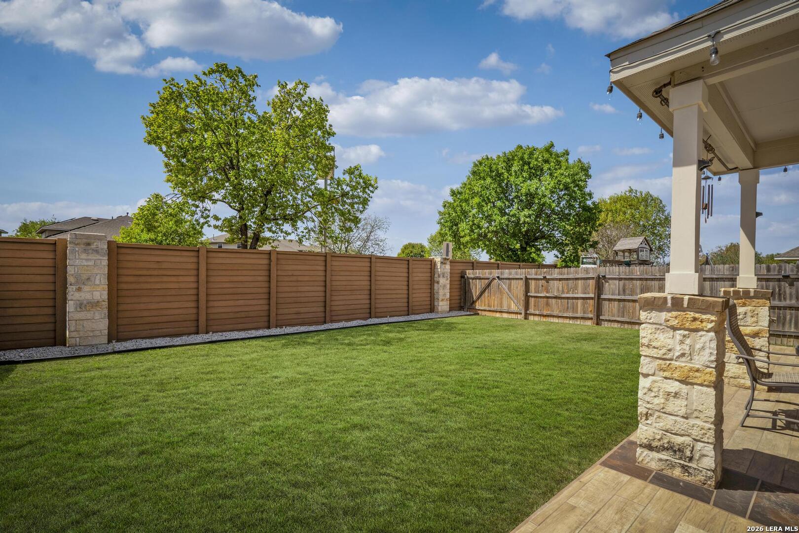 This lovely, impeccably maintained one-story, four-sided brick home is nestled in the highly desirable Stillwater Ranch community. Built in 2017, this thoughtfully designed residence offers 3 bedrooms, 2 bathrooms, and 1,648 square feet of comfortable living space with an open-concept layout perfect for both everyday living and entertaining. The heart of the home is the spacious gourmet kitchen, featuring a large island with seating, granite countertops, rich wood cabinetry, upgraded stainless steel appliances, and a gas stove-ideal for the home chef. The kitchen flows seamlessly into the breakfast area and family room, creating a warm and inviting space for gatherings. A versatile flex room at the front of the home provides endless possibilities-perfect as a home office, playroom, or additional living space. The private primary suite offers a relaxing retreat with a walk-in closet, double vanity, and a walk-in shower. Enjoy low-maintenance living with tile flooring in main areas and laminate flooring in the bedrooms and flex room. Step outside to a covered patio with added tile, a privacy fence, and rock landscaping-designed for easy upkeep and outdoor enjoyment. A sprinkler system services both the front and backyard. Ideally located just minutes from Loop 1604, Highway 151, Northwest Vista College, SeaWorld, and the popular Alamo Ranch shopping and dining destinations, this home truly offers the perfect combination of comfort, convenience, and lifestyle.