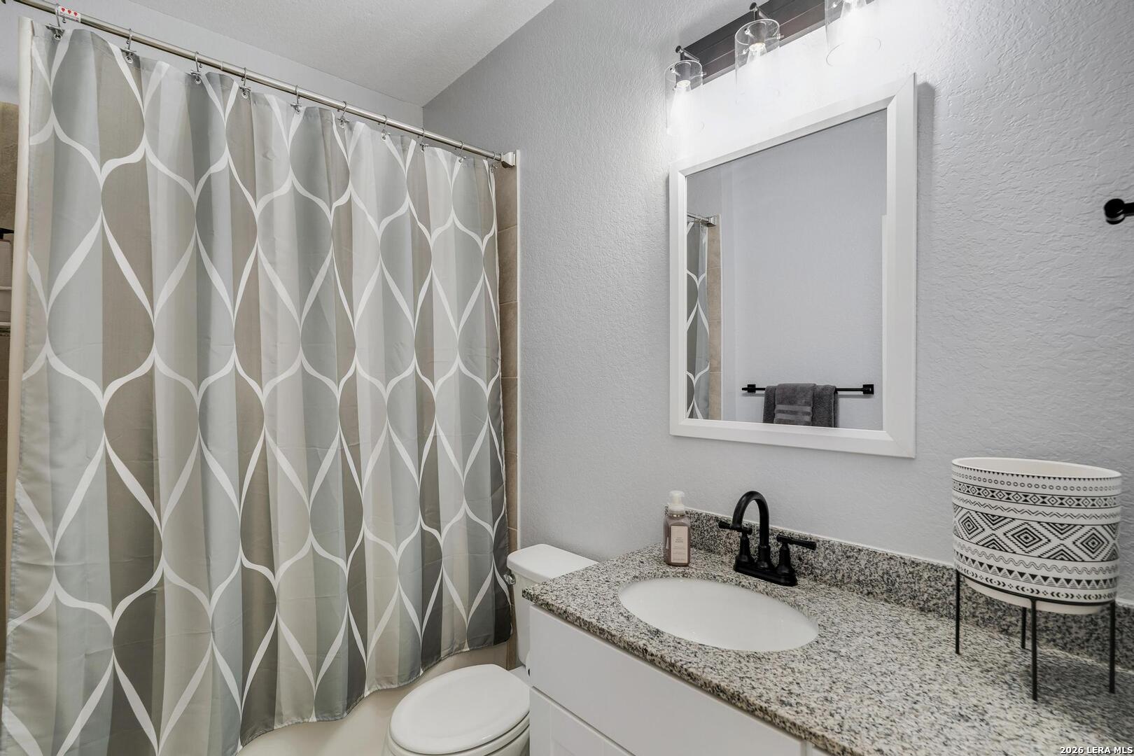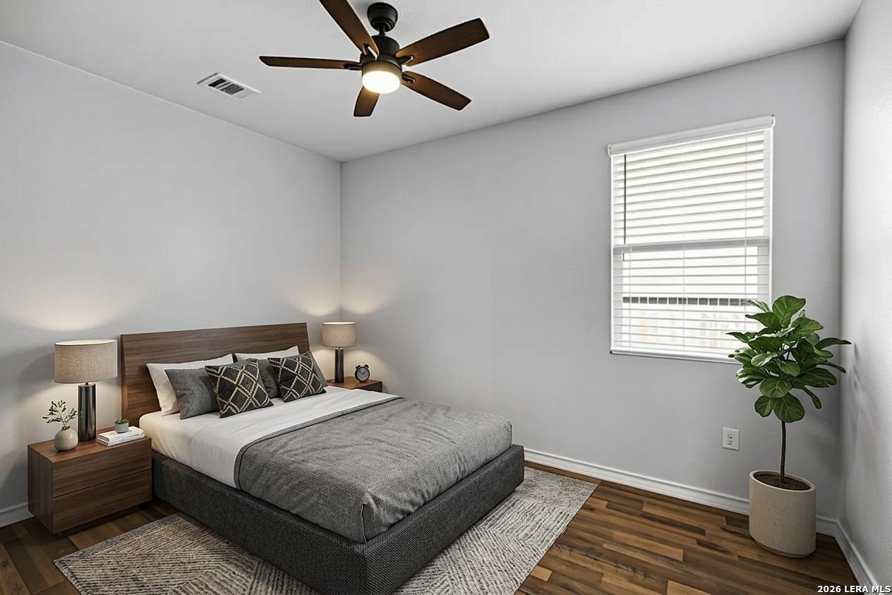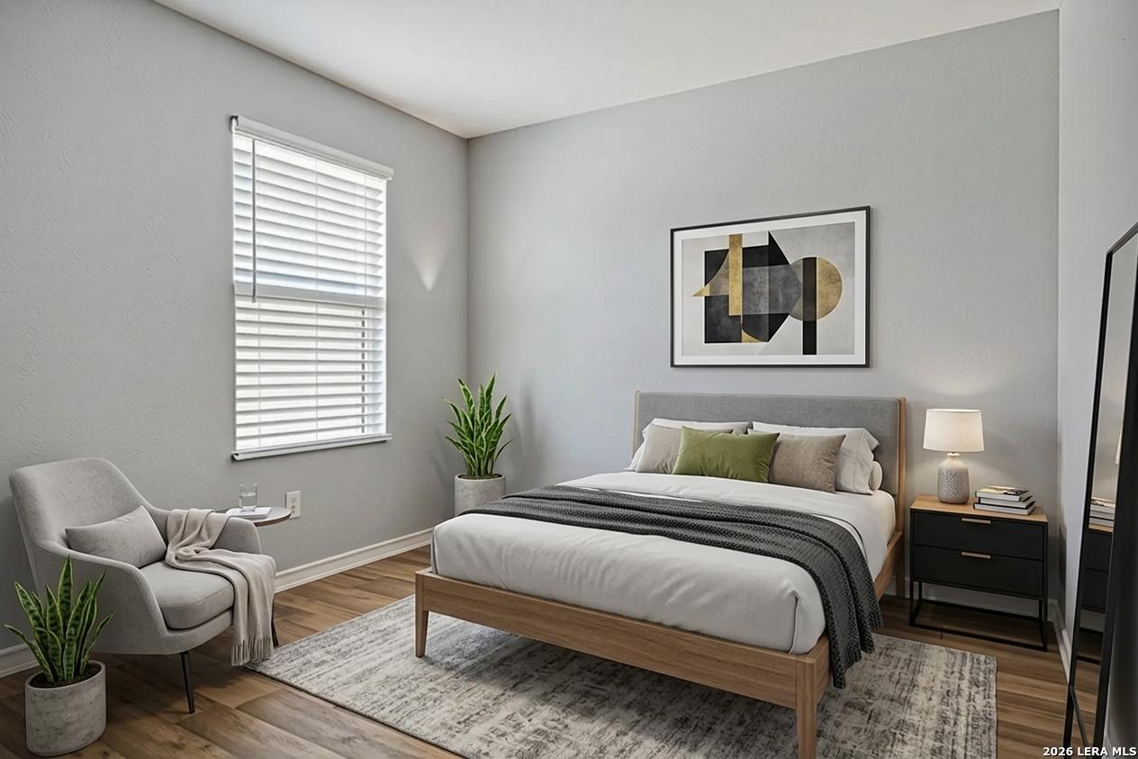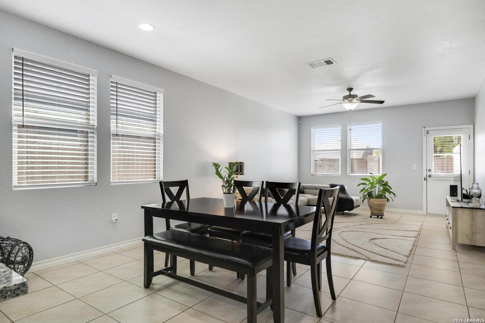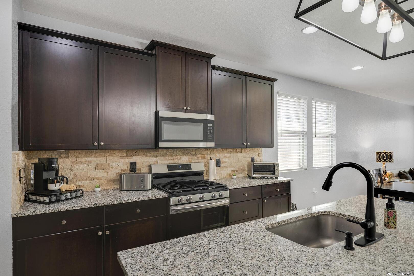 This lovely, impeccably maintained one-story, four-sided brick home is nestled in the highly desirable Stillwater Ranch community. Built in 2017, this thoughtfully designed residence offers 3 bedrooms, 2 bathrooms, and 1,648 square feet of comfortable living space with an open-concept layout perfect for both everyday living and entertaining. The heart of the home is the spacious gourmet kitchen, featuring a large island with seating, granite countertops, rich wood cabinetry, upgraded stainless steel appliances, and a gas stove-ideal for the home chef. The kitchen flows seamlessly into the breakfast area and family room, creating a warm and inviting space for gatherings. A versatile flex room at the front of the home provides endless possibilities-perfect as a home office, playroom, or additional living space. The private primary suite offers a relaxing retreat with a walk-in closet, double vanity, and a walk-in shower. Enjoy low-maintenance living with tile flooring in main areas and laminate flooring in the bedrooms and flex room. Step outside to a covered patio with added tile, a privacy fence, and rock landscaping-designed for easy upkeep and outdoor enjoyment. A sprinkler system services both the front and backyard. Ideally located just minutes from Loop 1604, Highway 151, Northwest Vista College, SeaWorld, and the popular Alamo Ranch shopping and dining destinations, this home truly offers the perfect combination of comfort, convenience, and lifestyle.