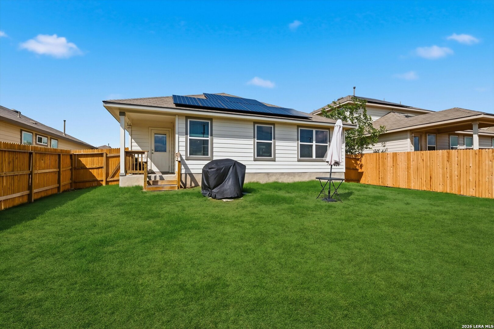 This 3-bedroom, 2-bath single-story, built in 2021, is ready to welcome you home. You'll have the added assurance of a builder-backed structural warranty still in place. Plus, the fully paid-off solar panels mean you benefit from energy savings right away. Located just 6 miles from Randolph AFB and 12 miles from downtown San Antonio, it's a super convenient spot with easy access to shopping and dining. First showings will be at the Open House on May 2nd and 3rd 11am-2pm both days -come see it for yourself!