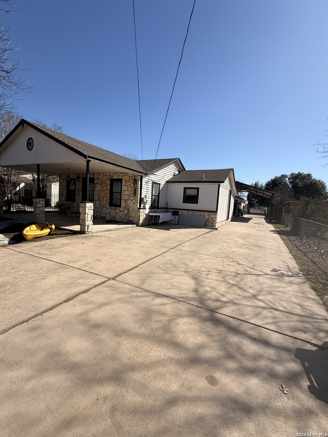 3 bedrooms, 2 full baths. House has two year old roof and a year old ac. Front of the house is pier and beam, back is slab. Living room, dining room, family room on back. Updated kitchen with farmhouse sink. Laundry room inside. Tile flooring. Covered patio and storage shed on back. Covered Outdoor kitchen. Long driveway. Fully fenced in and gated. Sold As-Is.