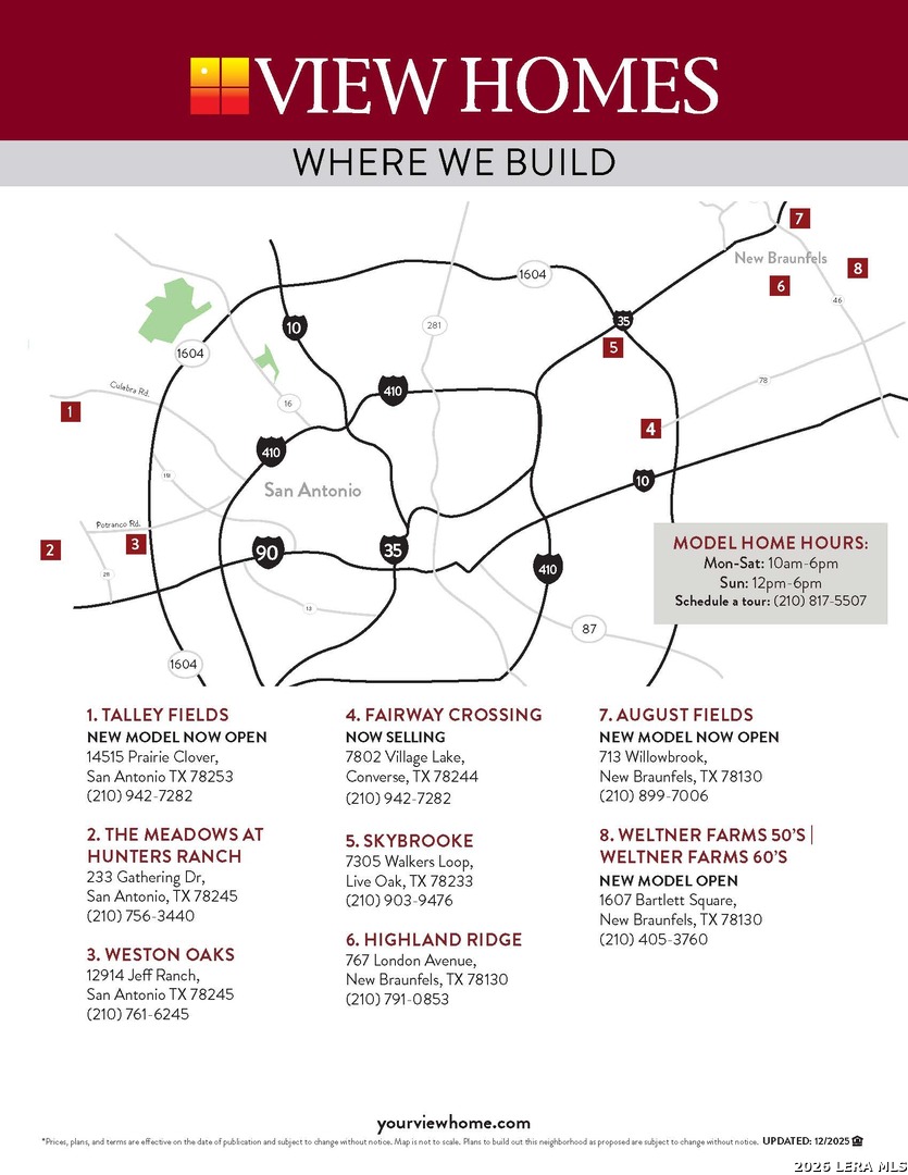 Spacious twostory Wisteria floor plan offering 4 bedrooms, 3 full baths, and approximately 2,489 sq ft of thoughtfully designed living space in the desirable Weston Oaks community. The main level features an openconcept layout with a large living area that connects seamlessly to the dining space and modern kitchen. The kitchen includes solid surface countertops, stainless steel appliances, a center island, and generous cabinet storage. The first floor also includes a secondary bedroom with access to a full bath, providing a convenient option for guests or multigenerational living. Upstairs, the owner's suite offers a spacious walkin closet and private ensuite bath. Two additional bedrooms, a full bath, and a versatile game room complete the second level. Additional highlights include a twocar garage, dedicated laundry room, and covered outdoor space ideal for relaxing or entertaining. Located in Weston Oaks with convenient access to Loop 1604, Hwy 151, Lackland AFB, shopping, dining, and community amenities. Disclosure: All information, including square footage, schools, floor plan details, and community features, is deemed reliable but not guaranteed. Verify all information. Square footage, elevations, and school zoning should be confirmed directly with the builder and local school district.