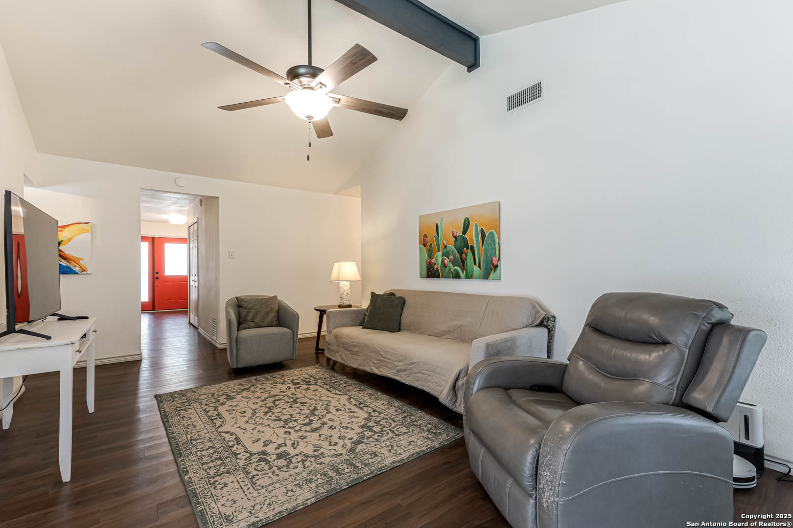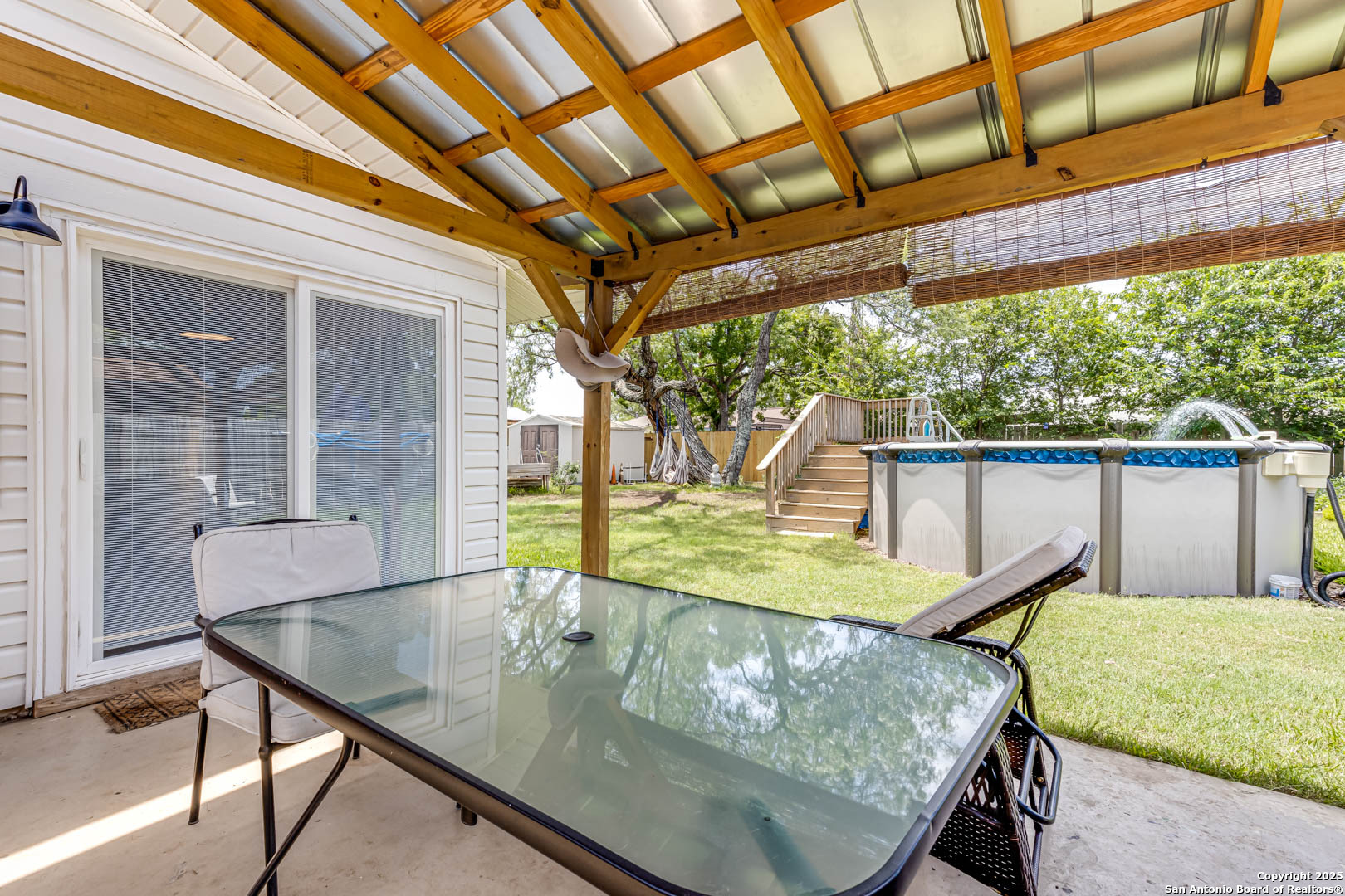 Welcome to this beautifully updated 4-bedroom, 2-bath home that perfectly blends comfort, character, and modern style. Framed by mature oak trees and a bold red front door-sets the tone for something special. Step inside to discover a bright and airy layout with two great living areas, vaulted ceilings, and abundant natural light. The sleek, updated kitchen features granite countertops, stainless steel appliances, a subway tile backsplash, and a cozy dining nook overlooking the backyard. The bathrooms have been tastefully remodeled with contemporary finishes, including a stunning walk-in shower with designer tile. Fresh neutral paint and stylish flooring flow seamlessly throughout the home, creating a move-in-ready space. Enjoy your very own backyard retreat complete with a covered patio-perfect for entertaining-and a refreshing above-ground pool with a custom deck. Whether you're lounging poolside or dining al fresco, this space was made for making memories. Additional highlights include a two-car garage, plenty of storage, and a peaceful neighborhood that feels like home the moment you arrive. AND NO HOA!!! Don't miss this gem-schedule your private tour today!