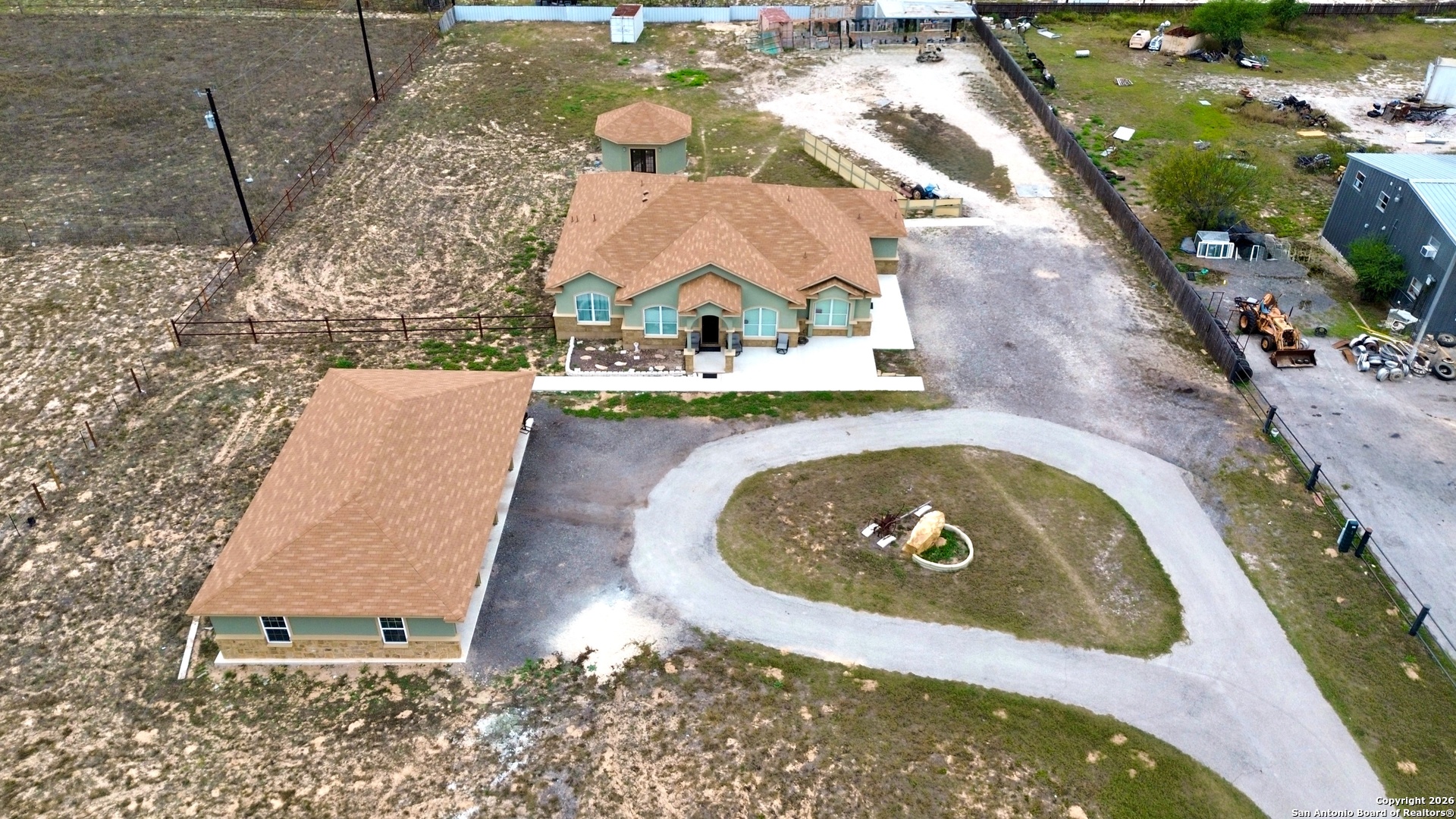 GORGEOUS custom-built 4-bedroom, 2.5-bath home situated on 2.058 acres of peaceful country living! This beautifully designed residence offers an open-concept floor plan highlighted by a sunken living room and vaulted ceilings in the main living area, creating an inviting and spacious atmosphere. Built in custom made entertainment center with 86 inch TV, electric fireplace with heater and soundbar stays for the new owners to enjoy. The home features stunning natural wood cabinetry throughout, granite countertops in all areas, designer ceramic tile, elegant archways, and beautiful matching light fixtures that add warmth and cohesion to the space. The expansive primary suite is a true retreat, offering a huge bedroom and with a private bathroom with dual-entry shower. A versatile game room or office includes a wet bar, space designed for two mini refrigerators, and a private exterior entrance-ideal for entertaining, working from home, or guest flexibility. Additional highlights include stainless steel appliances, ceiling fans in every room, and a gazebo with TV connections, perfect for outdoor enjoyment. Enjoy quiet country living with ample room to relax and unwind while still benefiting from quality craftsmanship and thoughtful design throughout.