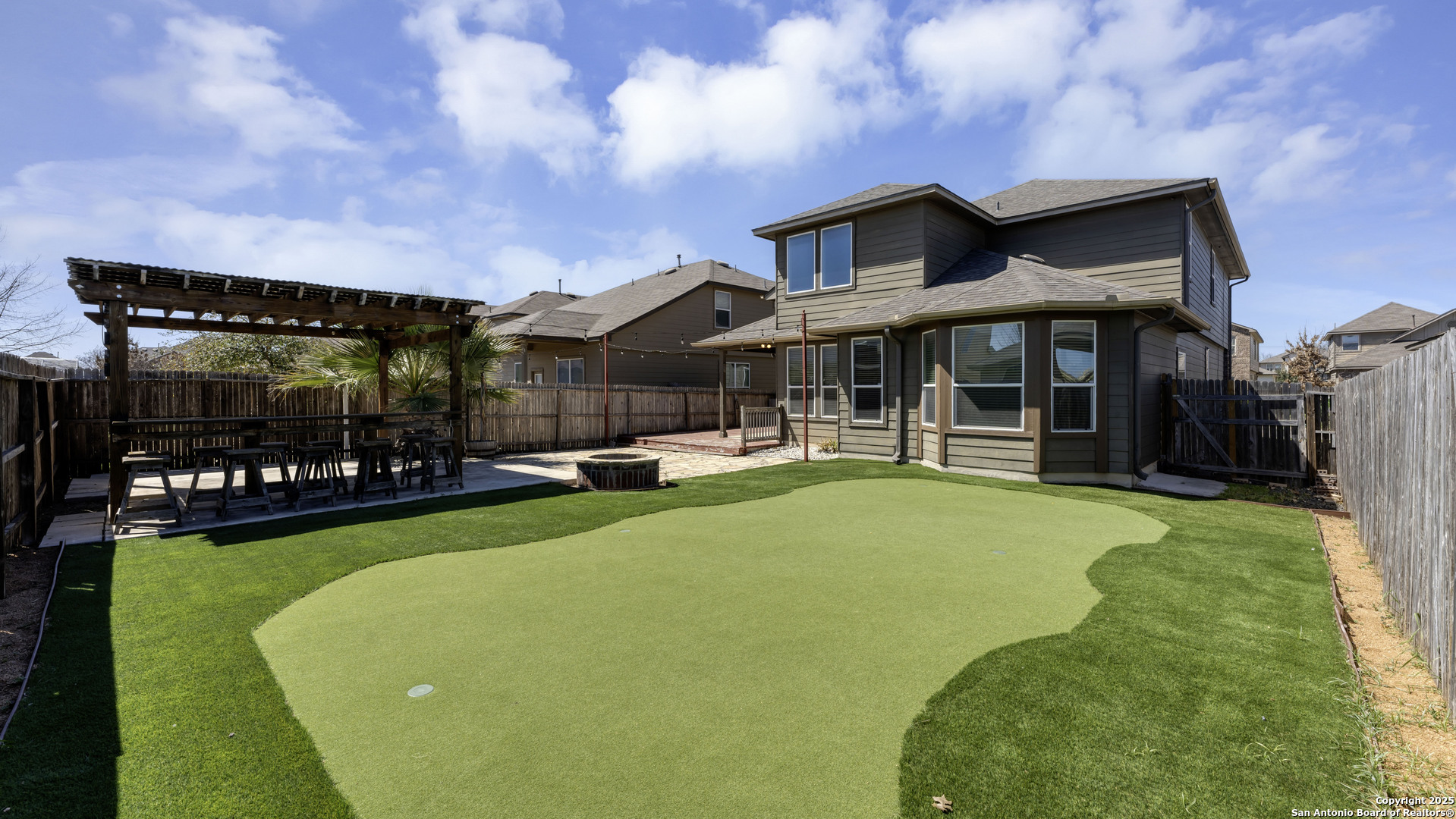 Welcome to 8414 Buckhorn Parke in the heart of Remuda Ranch. Your dream home has a rustic vibe with 4 bedrooms and 2.5 baths, an open floor plan, a spacious dining and living room combo with an office, and a large media room for the family to watch a movie. The primary bedroom is located downstairs with a dedicated bathroom with dual vanities and a garden tub, a walk-in shower, and an oversized walk-in closet. Your new home is conveniently located near Lackland AFB and has plenty of amenities for your friends and family. Did I mention your new home has a putting green for that golf enthusiast with a pergola and stone fire pit for roasting marshmallows? The backyard is so spacious with plenty of activities to keep everyone entertained. Schedule a showing today!