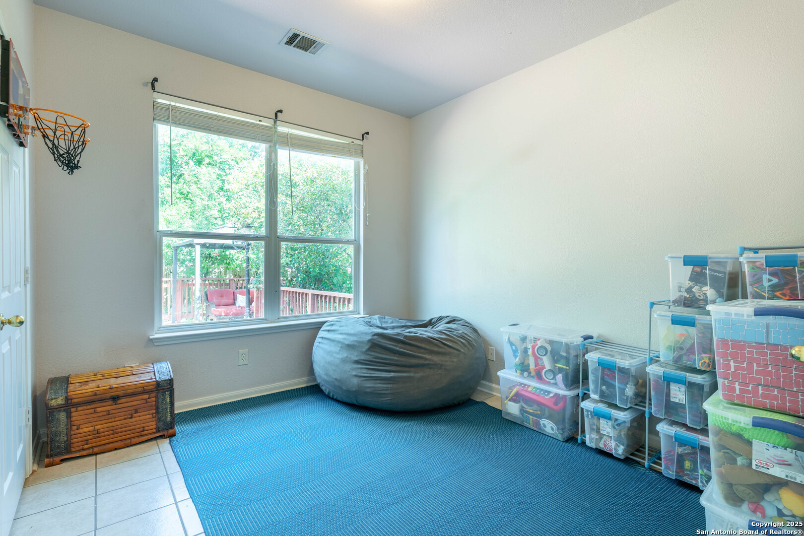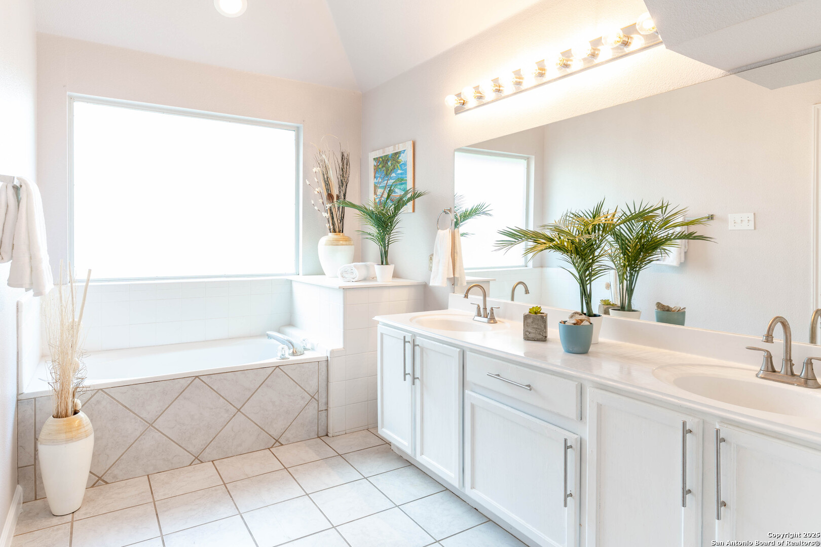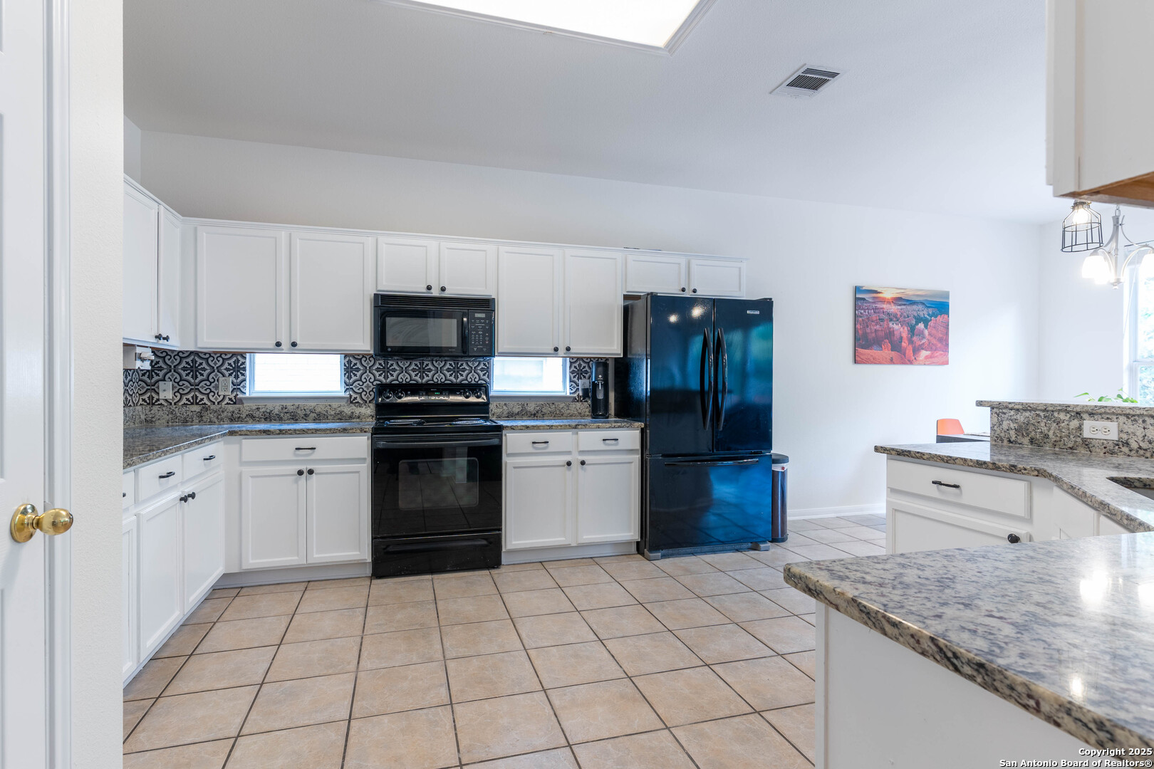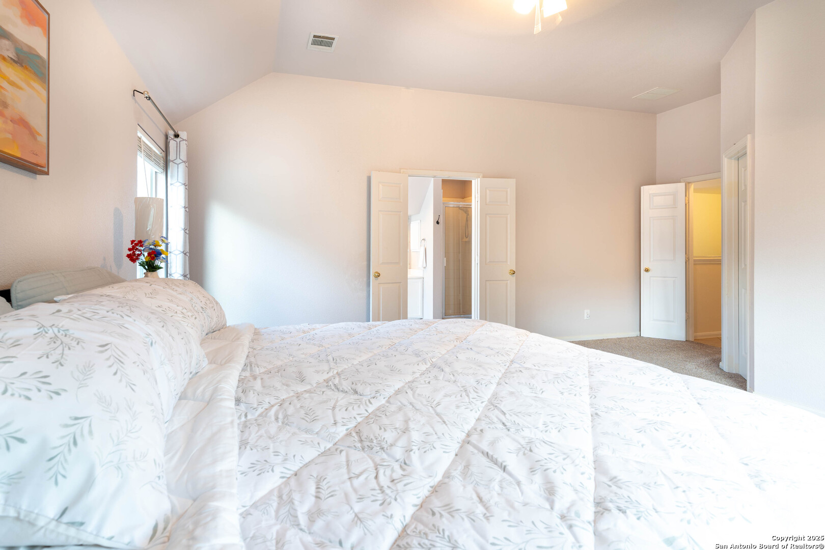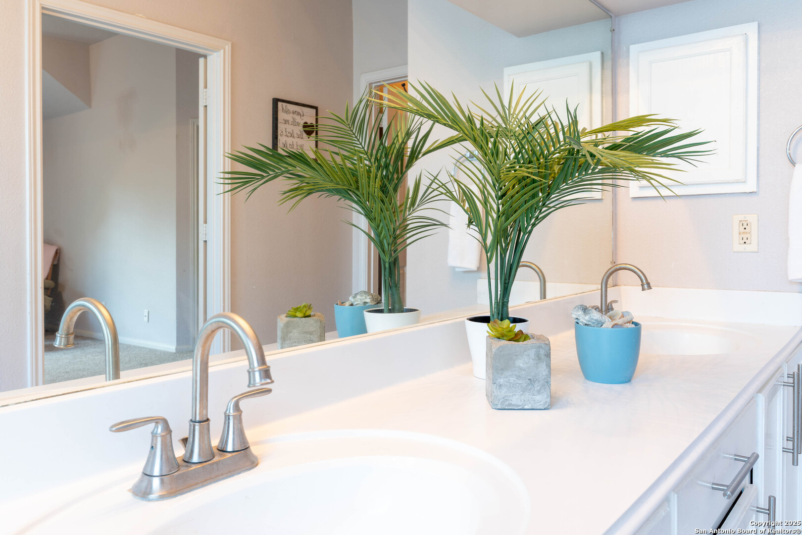ON GREENBELT!! Step inside this beautiful two-story home in the sought-after Heritage Hills neighborhood and be greeted by abundant natural light, soaring ceilings, and a freshly painted interior that enhances its bright, welcoming feel. The open floor plan offers multiple living spaces, including a formal dining room with elegant molding-accented walls and a cozy wood-burning fireplace with custom surround in the main living area. The chef's kitchen is a true highlight, featuring granite countertops, extensive cabinetry, a designer tile backsplash, pendant lighting, and a spacious breakfast bar-perfect for both daily living and entertaining. With four bedrooms, including a secondary bedroom on the main level, and 2.5 baths, this home provides flexible living options. The owner's suite upstairs features vaulted ceilings, a large walk-in closet, a garden tub for soaking, and a separate shower. An oversized deck with a covered pergola offers the ideal space for outdoor gatherings surrounded by mature trees. Beyond the fence is an expansive greenbelt with gated access for exploration. Located near I-35, Randolph AFB, Fort Sam, and top shopping, dining, and parks. See this one TODAY!!