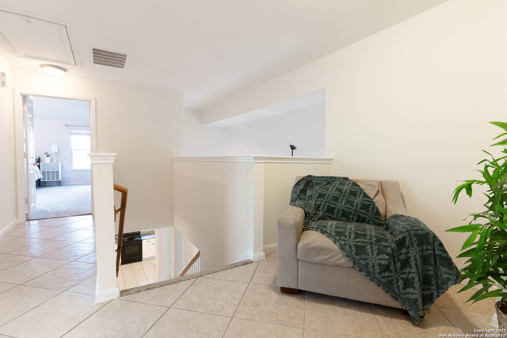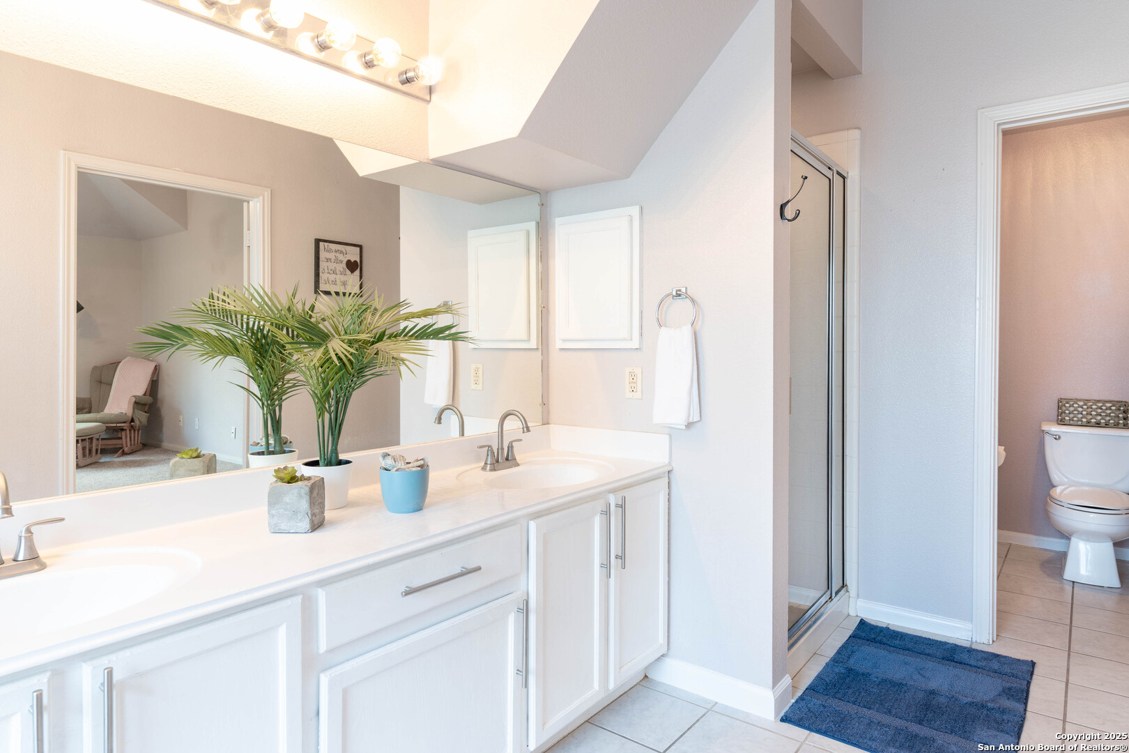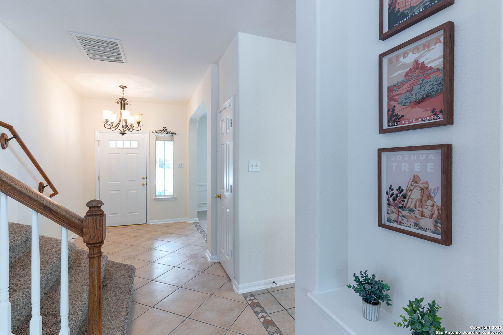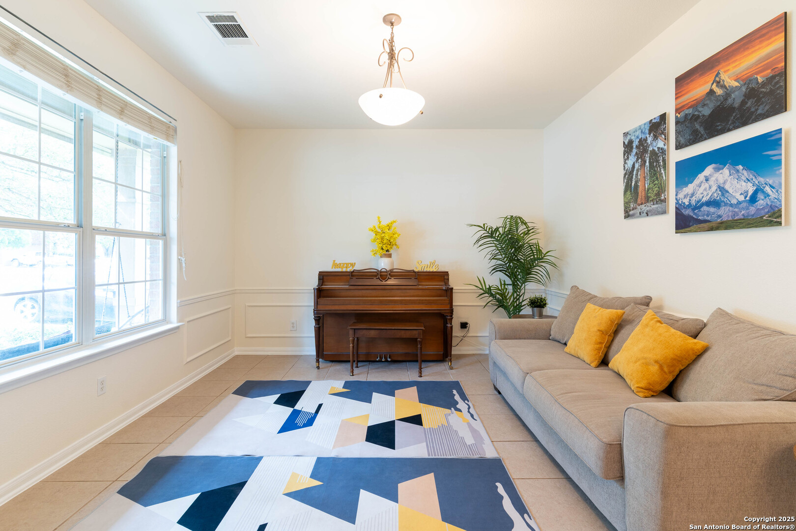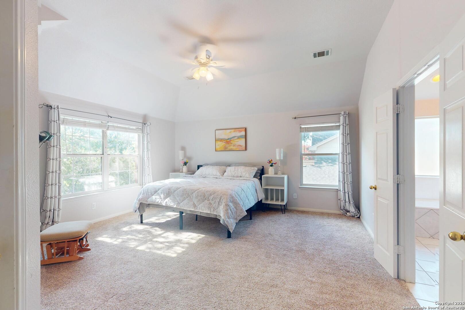 ON GREENBELT!! Step inside this beautiful two-story home in the sought-after Heritage Hills neighborhood and be greeted by abundant natural light, soaring ceilings, and a freshly painted interior that enhances its bright, welcoming feel. The open floor plan offers multiple living spaces, including a formal dining room with elegant molding-accented walls and a cozy wood-burning fireplace with custom surround in the main living area. The chef's kitchen is a true highlight, featuring granite countertops, extensive cabinetry, a designer tile backsplash, pendant lighting, and a spacious breakfast bar-perfect for both daily living and entertaining. With four bedrooms, including a secondary bedroom on the main level, and 2.5 baths, this home provides flexible living options. The owner's suite upstairs features vaulted ceilings, a large walk-in closet, a garden tub for soaking, and a separate shower. An oversized deck with a covered pergola offers the ideal space for outdoor gatherings surrounded by mature trees. Beyond the fence is an expansive greenbelt with gated access for exploration. Located near I-35, Randolph AFB, Fort Sam, and top shopping, dining, and parks. See this one TODAY!!