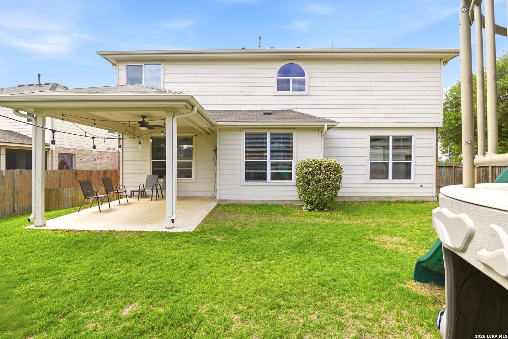 Step into style and space with this stunning two-story home nestled in the heart of Helotes, located in the highly desirable Sonoma Ranch community. Featuring 4 spacious bedrooms and 2.5 bathrooms, this home offers a thoughtfully designed open-concept layout perfect for both everyday living and entertaining. The seamless floor plan connects the living, dining, and kitchen areas, filling the home with natural light and modern charm. The kitchen features plenty of cabinet space along with a new backsplash, creating a functional and stylish space. Bathrooms have been updated with granite countertops, adding a fresh, modern touch. This home has been exceptionally well maintained and is clean and move-in ready, featuring walk-in closets in all bedrooms and ample storage throughout. Situated on a corner lot, the home features a large fenced backyard perfect for pets or play, along with a covered patio ideal for relaxing or entertaining. Residents of Sonoma Ranch enjoy access to a community pool and clubhouse. Ideally located just minutes from La Cantera, The Rim, and Six Flags Fiesta Texas, with quick access to Loop 1604 and I-10, this home offers the perfect blend of comfort, convenience, and location.
