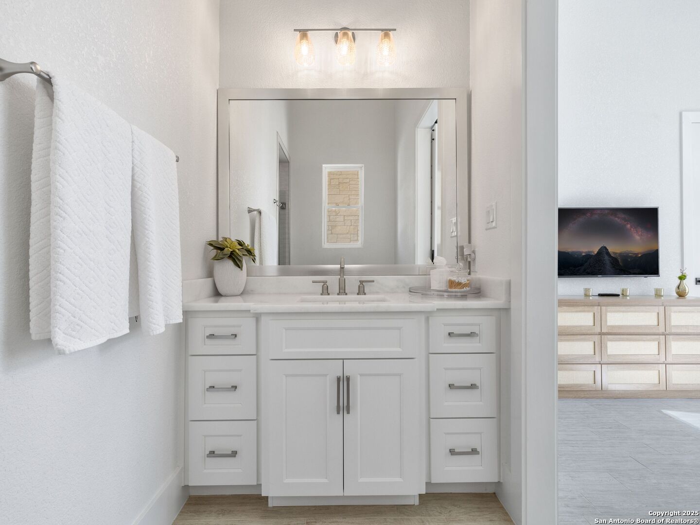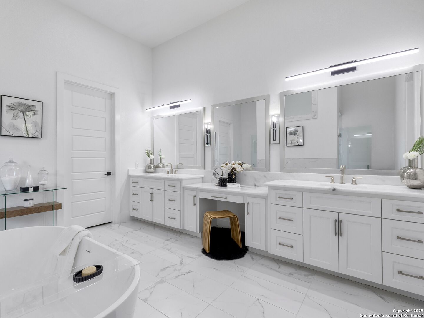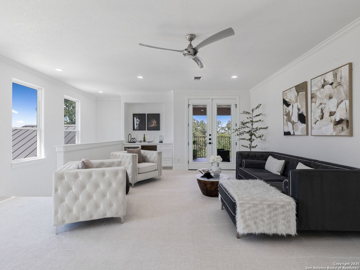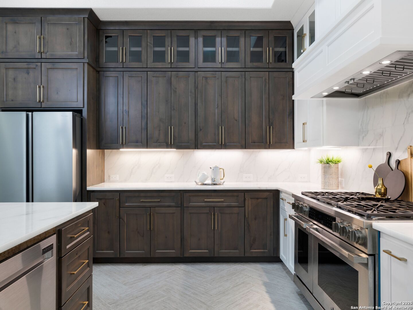 Discover a home where craftsmanship, luxury, and thoughtful design come together in the prestigious Belle Oaks Ranch community. Sitting on over an acre of prime corner-lot land, this custom-built residence stands apart-not just in size, but in the details that make it truly exceptional. With approximately 4,022 square feet of living space, five spacious bedrooms, and four full and two half bathrooms, this one-and-a-half-story home blends elegance with everyday comfort. Step through the grand double-door entrance, and you're welcomed by soaring 12-foot ceilings, an open floor plan, and oversized windows that flood the space with natural light. Every inch of this home was designed to feel bright, airy, and effortlessly refined. At the center, the kitchen is a standout-outfitted with top-of-the-line Dacor appliances, sleek white marble countertops, and custom Michael Edward cabinetry. Whether you're an avid home chef or simply love a well-designed space, this kitchen delivers on both form and function. The primary suite is a retreat of its own, offering a luxurious escape with a soaking tub, an oversized walk-in shower framed by privacy glass, and a custom walk-in closet designed for both style and efficiency. Expansive windows frame views of the surrounding oak trees, enhancing the peaceful, private feel of the home. Upstairs, a game room with a private terrace overlooks the backyard, providing a perfect spot to unwind. Two additional bedrooms on this level offer flexibility for guests or family members. What truly sets this home apart is the exceptional attention to construction quality and materials. While many homes in Belle Oaks Ranch incorporate a minimal amount of stone, this residence was designed with a striking stone exterior, creating a timeless and durable facade. The foundation was another key focus, built with an emphasis on long-term stability and structural integrity beyond standard practices. Energy efficiency was also a top priority, with over a foot of spray foam insulation installed throughout the home and attic to enhance comfort and reduce energy costs. Built with reinforced framing, the home benefits from enhanced structural integrity, adding to its longevity and overall value. These thoughtful upgrades not only contribute to the home's longevity but also set it apart as a truly superior build. Every decision in this home, from the materials used to the design choices, was made with purpose. The result is a home that doesn't just look luxurious-it feels solid, enduring, and built to last. Here, you'll find more than just a place to live-you'll experience a level of quality and attention to detail that's rare to come by.