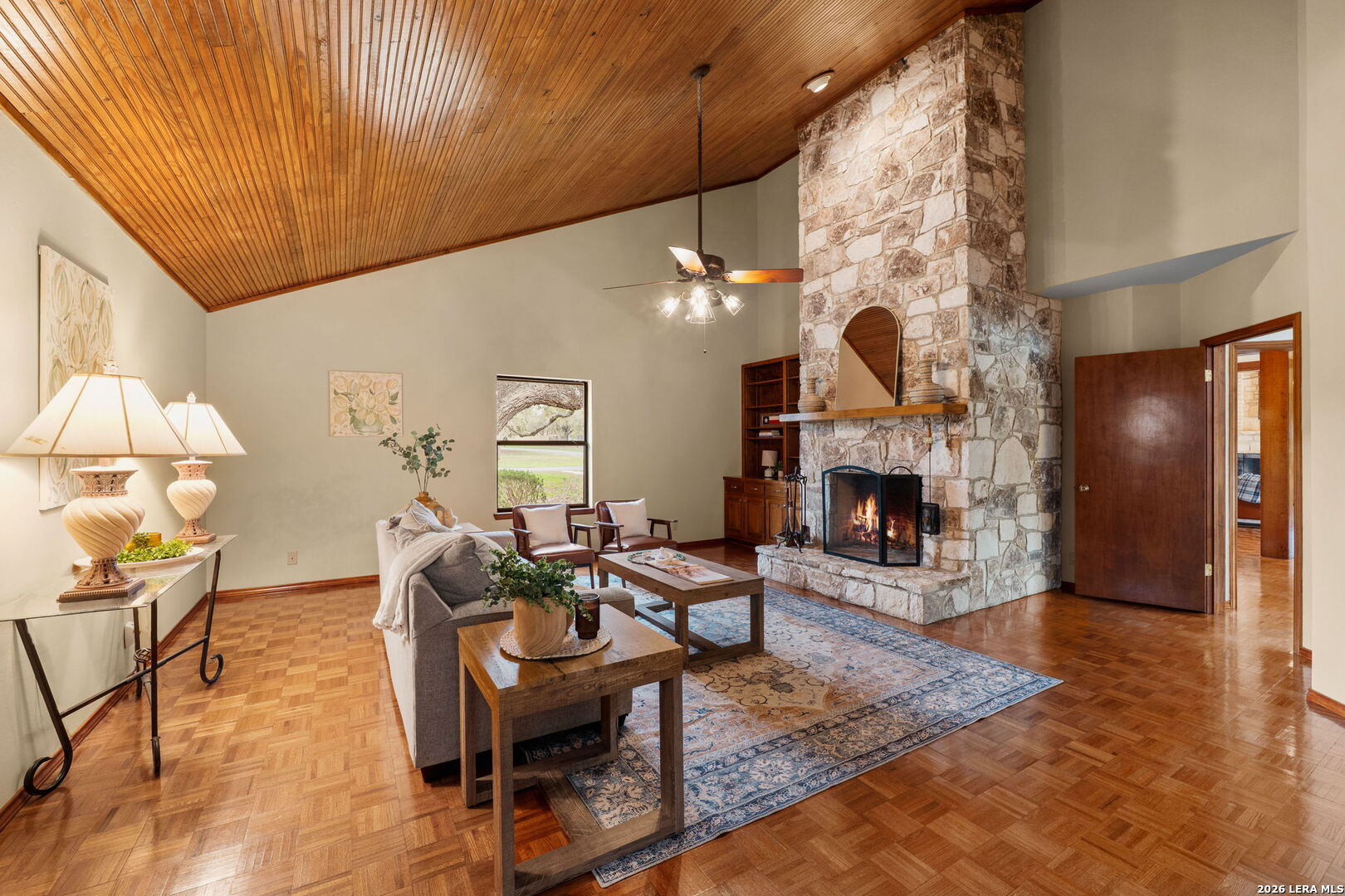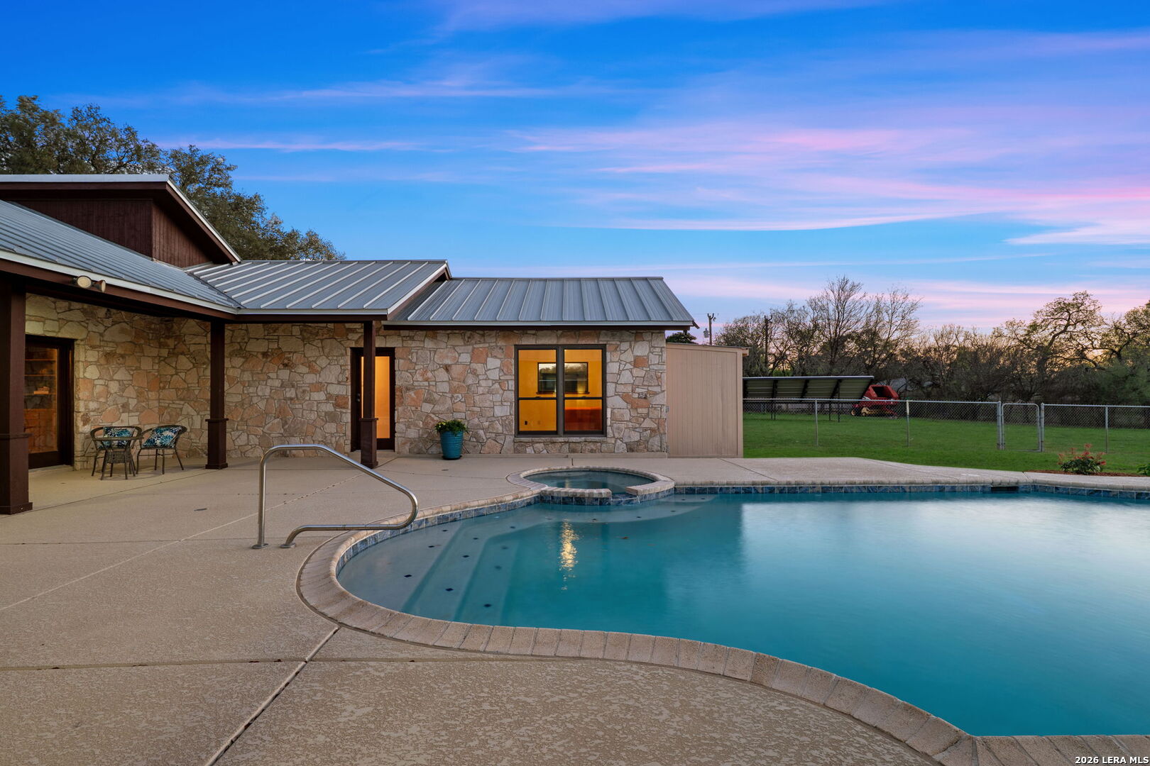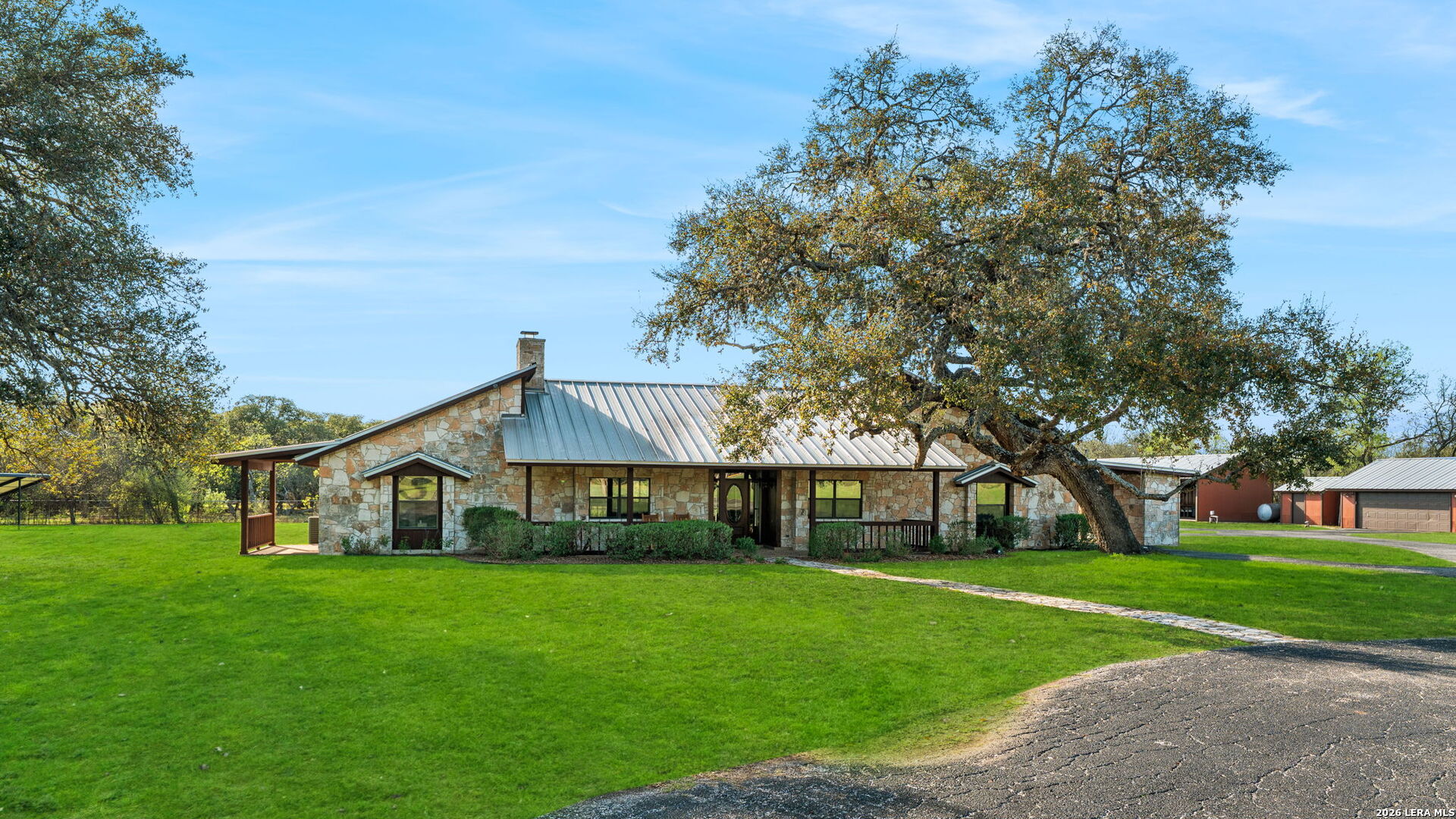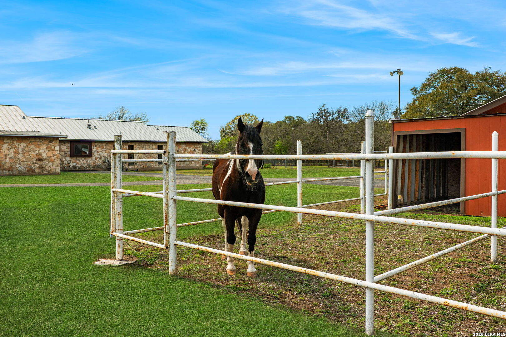 8463 Barron Drive, is the ultimate high-utility estate, perfectly blending self-sufficient "off-grid" capabilities with the luxury of space. Located in the Alamo Farmsteads this five-acre sanctuary inside loop 1604 just ten minutes from the Medical Center is designed for the buyer who values both their independence and their hobbies. Through the private gated entry discover a rare five-acre level lot fully equipped to handle anything Texas weather throws its way. It features a high-capacity 25KW solar power system, a propane powered whole-house backup generator, and a private water well. Enjoy minimal utility dependence in the heart of San Antonio. The property offers an incredible 7 covered parking spots including a 5-Car carport and a 2-Car garage perfect for housing a vintage car collection or a fleet of off-road toys. Embrace the "Farmsteads" lifestyle with a dedicated 2-stall horse barn and ample room for grazing. The five-acre spread provides the space required for livestock while maintaining a manageable footprint for the hobbyist rider. Direct proximity from the neighborhood to the Leon Creek Greenway offers access to miles of multi-use trails right outside your neighborhood. The main residence features a generous 4-bedroom, 3.5-bath layout spanning over 3,500 square feet. The home was custom built with high quality wood trim and cabinetry and was recently updated with new countertops and plumbing fixtures throughout, new light fixtures in the bathrooms, and new carpet in the bedrooms. Designed for hosting and comfort, the home includes a true cooks kitchen, massive in scale and perfectly positioned as the heart of the home. The kitchen features a center island, peninsula with bar seating, double ovens, butler's pantry with ice maker and an informal dining area all overlooking the pool deck. On either side of the kitchen are a formal dining from and two living areas. Both have vaulted, wood lined ceilings and floor to ceiling stone fireplaces. The split floor plan layout is masterfully zoned to allow a large or multi-generational family to live together without compromise. At the heart of the home, the common areas act as a natural buffer, providing total seclusion for the primary suite and a dedicated wing for everyone else. The massive primary retreat is designed for the head of household and features separate vanities, each in their own space with direct access to individual walk-in closets. The bedroom has enough square footage to serve as a true private escape from the day's activities. On the opposite side of the home, the secondary bedroom wing is perfectly organized for children or guests. It features two oversized bedrooms connected by a Jack-and-Jill bath, ensuring ease for a shared morning routine. A third large secondary bedroom is serviced by an additional full hallway bath which also features access to the pool deck, serving as a convenient changing area for swimmers. This estate was engineered for a seamless transition between a sophisticated interior and a resort-style backyard. Whether you are hosting a formal fundraiser or a relaxed weekend poolside, the home's layout encourages a natural guest flow that centers around the heart of the property. A dedicated wet bar serves as the ultimate staging area for cocktail hours and social gatherings, strategically positioned to service the living areas and the pool deck which has plenty of covered seating. When you enter the private gate you feel miles away, but 8463 Barron Drive offers unparalleled proximity to the city's primary economic engines. The home is minutes from the South Texas Medical Center, USAA HQ, UTSA Main Campus, and in easy reach of Lackland Air Force Base, Randolph Air Force Base, and Fort Sam Houston. There is no other property like this available in the San Antonio Market. Truly Unique. Unbelievably versatile. Built for the modern rugged individualist who needs space and convenience. Book a tour while you have the opportunity.