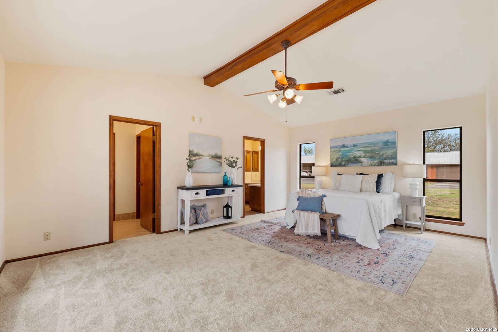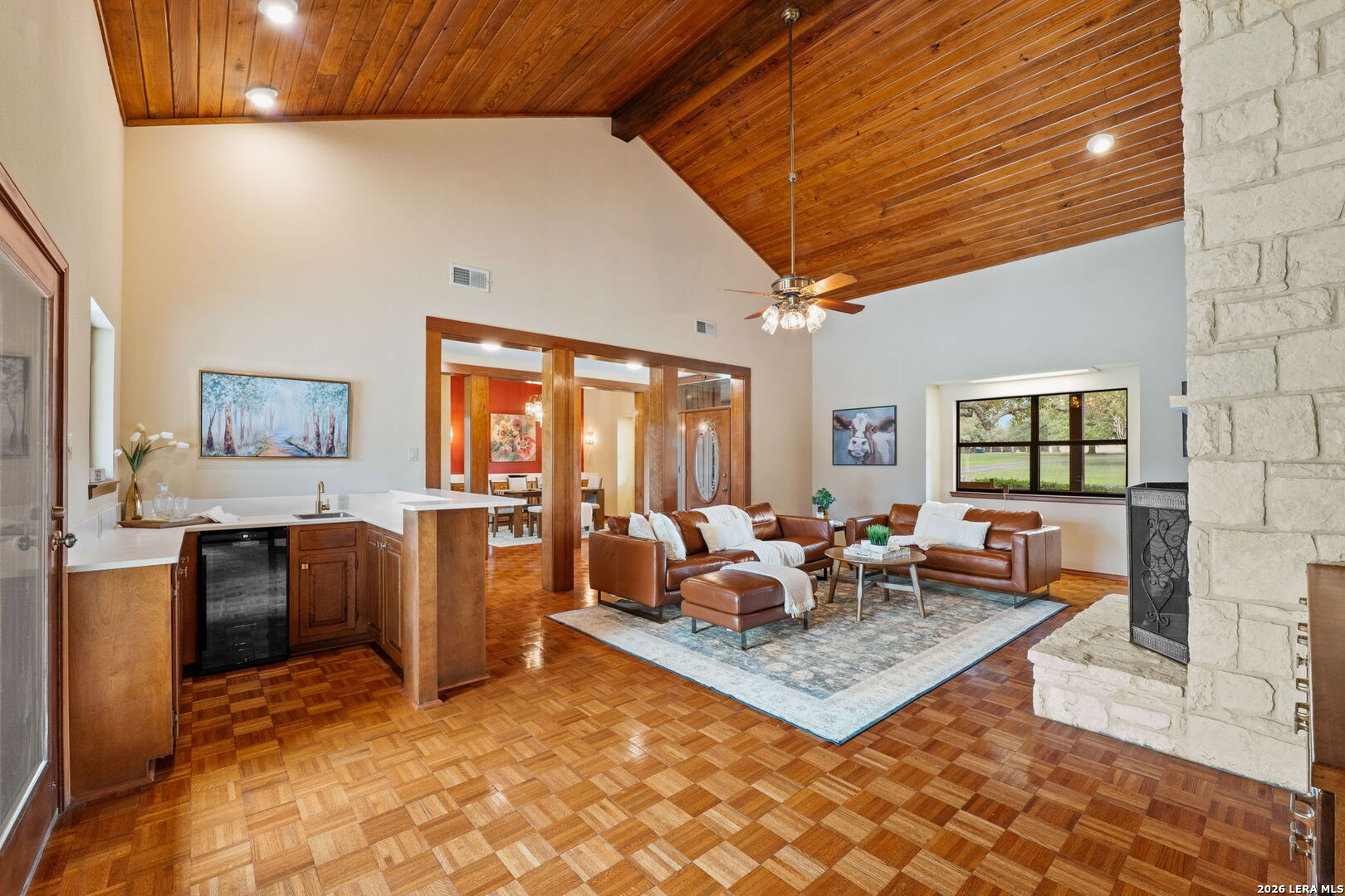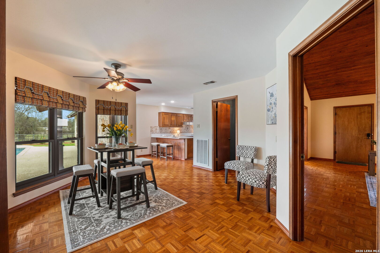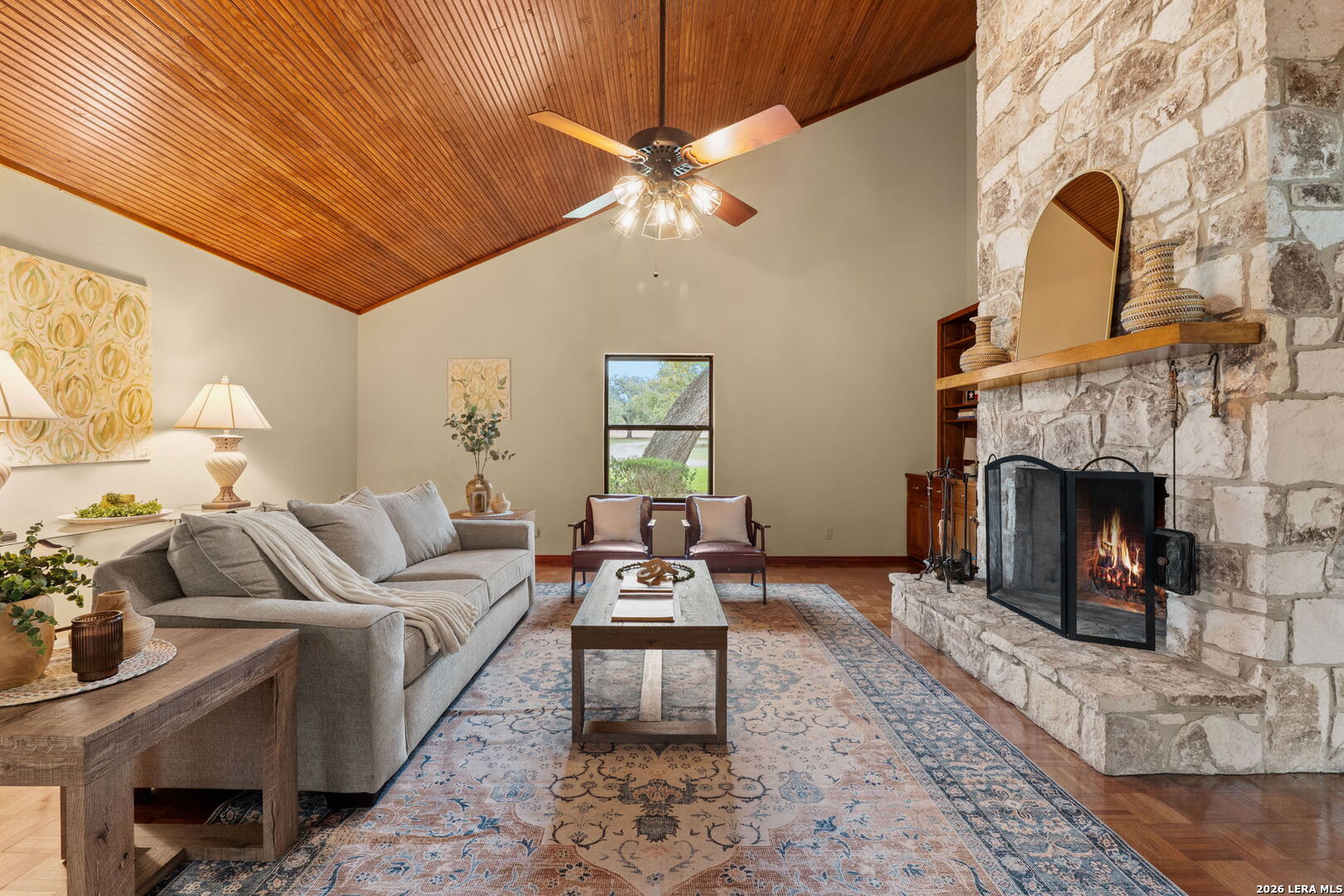8463 Barron Drive, is the ultimate high-utility estate, perfectly blending self-sufficient "off-grid" capabilities with the luxury of space. Located in the Alamo Farmsteads this five-acre sanctuary inside loop 1604 just ten minutes from the Medical Center is designed for the buyer who values both their independence and their hobbies. Through the private gated entry discover a rare five-acre level lot fully equipped to handle anything Texas weather throws its way. It features a high-capacity 25KW solar power system, a propane powered whole-house backup generator, and a private water well. Enjoy minimal utility dependence in the heart of San Antonio. The property offers an incredible 7 covered parking spots including a 5-Car carport and a 2-Car garage perfect for housing a vintage car collection or a fleet of off-road toys. Embrace the "Farmsteads" lifestyle with a dedicated 2-stall horse barn and ample room for grazing. The five-acre spread provides the space required for livestock while maintaining a manageable footprint for the hobbyist rider. Direct proximity from the neighborhood to the Leon Creek Greenway offers access to miles of multi-use trails right outside your neighborhood. The main residence features a generous 4-bedroom, 3.5-bath layout spanning over 3,500 square feet. The home was custom built with high quality wood trim and cabinetry and was recently updated with new countertops and plumbing fixtures throughout, new light fixtures in the bathrooms, and new carpet in the bedrooms. Designed for hosting and comfort, the home includes a true cooks kitchen, massive in scale and perfectly positioned as the heart of the home. The kitchen features a center island, peninsula with bar seating, double ovens, butler's pantry with ice maker and an informal dining area all overlooking the pool deck. On either side of the kitchen are a formal dining from and two living areas. Both have vaulted, wood lined ceilings and floor to ceiling stone fireplaces. The split floor plan layout is masterfully zoned to allow a large or multi-generational family to live together without compromise. At the heart of the home, the common areas act as a natural buffer, providing total seclusion for the primary suite and a dedicated wing for everyone else. The massive primary retreat is designed for the head of household and features separate vanities, each in their own space with direct access to individual walk-in closets. The bedroom has enough square footage to serve as a true private escape from the day's activities. On the opposite side of the home, the secondary bedroom wing is perfectly organized for children or guests. It features two oversized bedrooms connected by a Jack-and-Jill bath, ensuring ease for a shared morning routine. A third large secondary bedroom is serviced by an additional full hallway bath which also features access to the pool deck, serving as a convenient changing area for swimmers. This estate was engineered for a seamless transition between a sophisticated interior and a resort-style backyard. Whether you are hosting a formal fundraiser or a relaxed weekend poolside, the home's layout encourages a natural guest flow that centers around the heart of the property. A dedicated wet bar serves as the ultimate staging area for cocktail hours and social gatherings, strategically positioned to service the living areas and the pool deck which has plenty of covered seating. When you enter the private gate you feel miles away, but 8463 Barron Drive offers unparalleled proximity to the city's primary economic engines. The home is minutes from the South Texas Medical Center, USAA HQ, UTSA Main Campus, and in easy reach of Lackland Air Force Base, Randolph Air Force Base, and Fort Sam Houston. There is no other property like this available in the San Antonio Market. Truly Unique. Unbelievably versatile. Built for the modern rugged individualist who needs space and convenience. Book a tour while you have the opportunity.