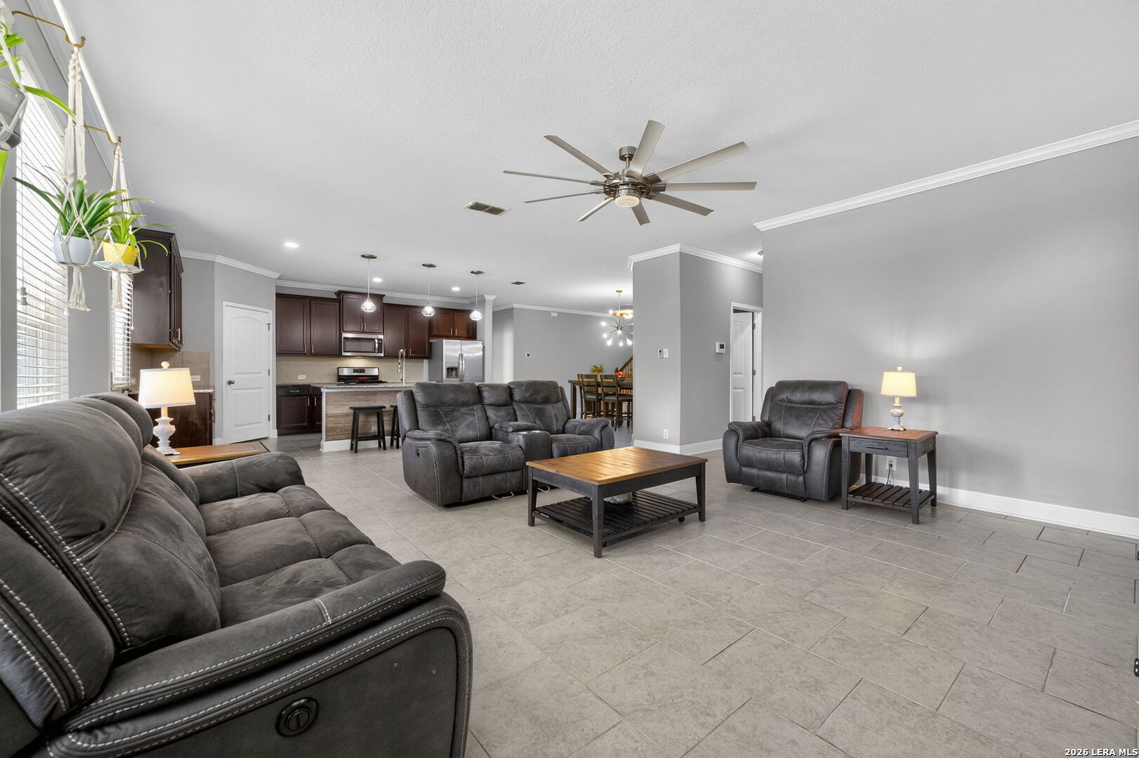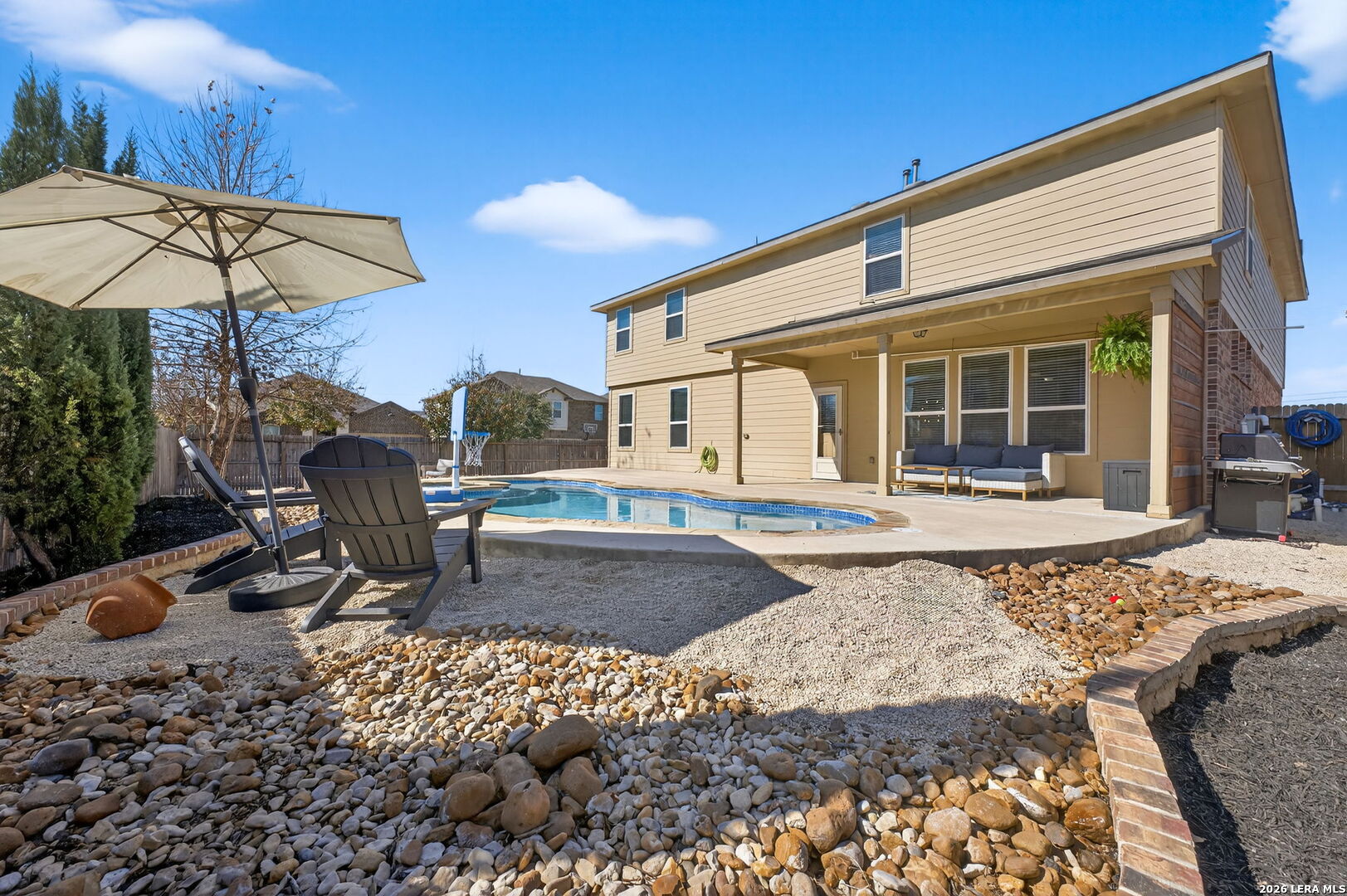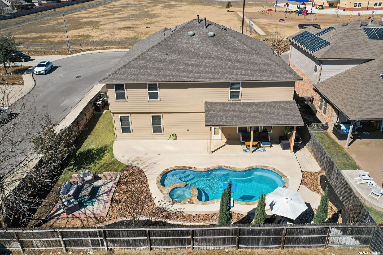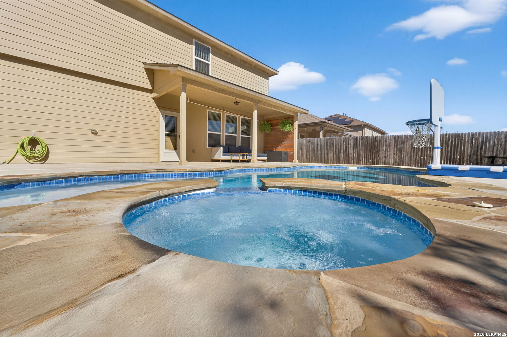 Welcome to 8502 Pardner Ranch - where space, upgrades, and location all come together. This HUGE 6 bedroom, 3.5 bath home sits proudly on a corner lot in the sought-after Valley Ranch community and offers room for everyone and everything. With a 3-car garage and multiple living areas, you'll never feel cramped again. The kitchen is built for gathering, featuring a Texas-sized island, tons of cabinet space, and expansive countertops - perfect for hosting, meal prep, or spreading out during the holidays. The open layout flows effortlessly into the living space, making entertaining easy. The primary bedroom is conveniently located downstairs for privacy and comfort. The primary bath includes a separate soaking tub and walk-in shower, dual vanities, and a large walk-in closet. Enjoy a dedicated theater room with built in surround sound for movie nights and a fully decked-out home gym so you can skip the commute and stay on track! Step outside to your private backyard retreat featuring a huge covered patio, heated in-ground pool, and hot tub - ready for summer parties or relaxing evenings year-round. Major updates? Already done. The roof was replaced in June 2025 for added peace of mind. All secondary bedrooms are generously sized and each includes its own walk-in closet so no one gets the "small room" in this house. Located in Northside ISD with Kallison Elementary School just across the street. Residents of Valley Ranch enjoy incredible amenities including two resort-style pools with water slides, playgrounds, sports courts, and scenic walking trails - all just minutes from shopping, restaurants, and outdoor adventures at Government Canyon State Natural Area. Big house. Big amenities. Big opportunity. Schedule your showing today.