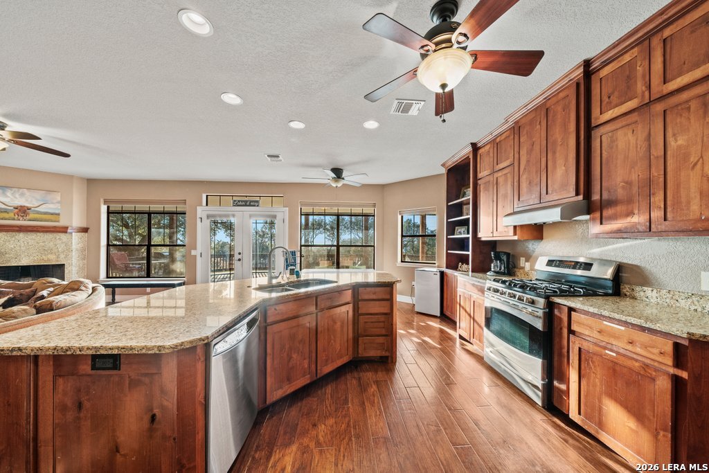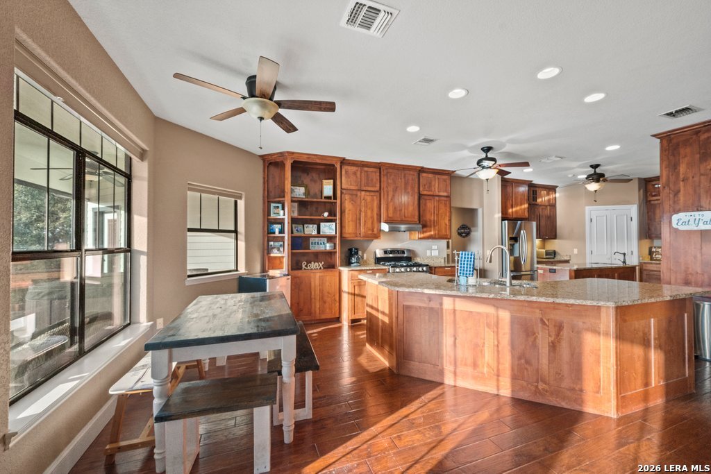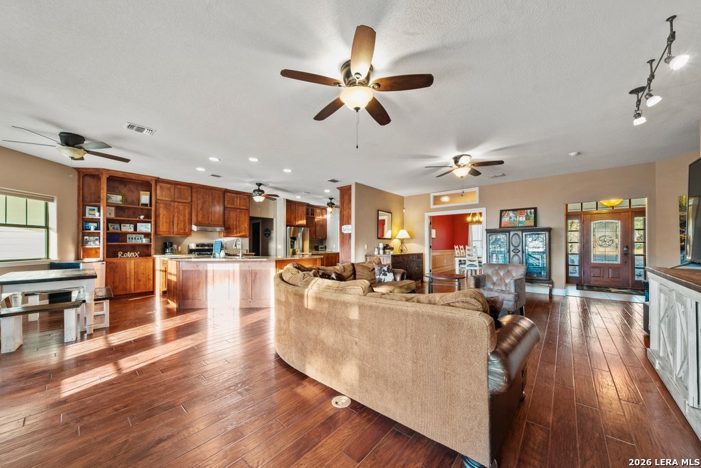 Welcome to your Hill Country retreat in the heart of Canyon Lake. Situated on approximately 1.01 acres with beautiful views and easy access to the lake, this spacious 5-bedroom, 3-bath home offers over 3,500 square feet of flexible living space designed for both everyday comfort and entertaining. The open-concept main living area features abundant natural light, high ceilings, and seamless flow into the kitchen and dining spaces. The well-appointed kitchen offers ample cabinetry, generous counter space, and room to gather - ideal for hosting family and friends. The layout provides flexibility with multiple living areas, including an upstairs game room with kitchenette, making it perfect for multigenerational living, guests, or short-term rental accommodations. The primary suite offers a private retreat with generous proportions and an en-suite bath designed for relaxation. Secondary bedrooms are well sized and thoughtfully positioned for privacy. Step outside and enjoy the peaceful Hill Country setting with mature trees, room for outdoor entertaining, and space for boat or RV parking. The oversized 3-car garage plus tandem carport provide excellent storage for lake toys and recreational vehicles. Currently operating as a successful short-term rental with strong positive net performance, this property offers both lifestyle and investment potential. Whether you're searching for a full-time residence, weekend getaway, or income-producing opportunity, this Canyon Lake home delivers space, views, and versatility in one exceptional package. Conveniently located near boat ramps, parks, restaurants, and area attractions while still offering privacy and tranquility. Schedule your private showing today.
