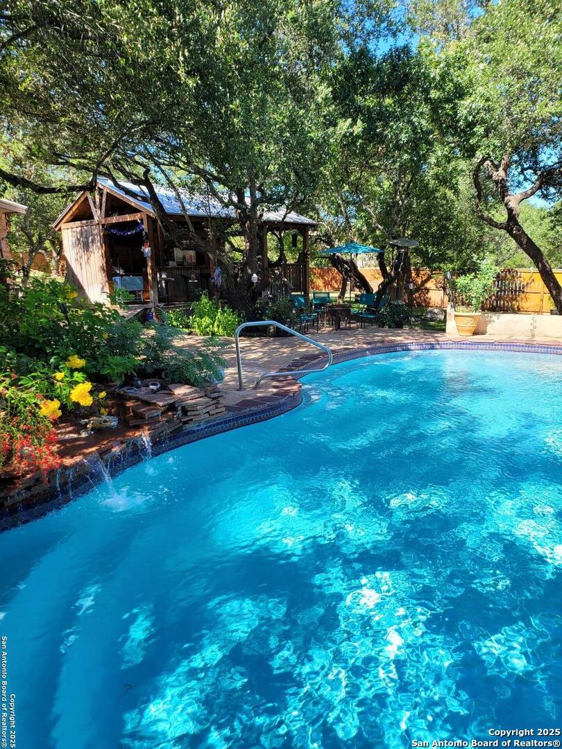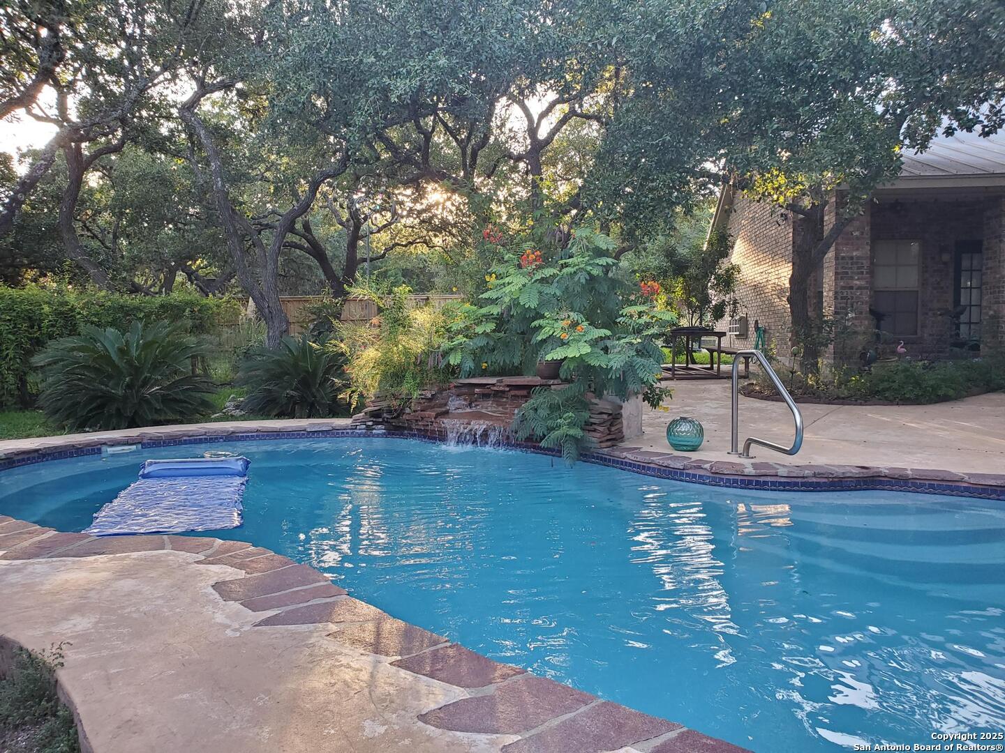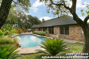 This wonderful 3272 sq ft home includes a 550 sq ft Casita w/full bath and a loft situated on 1.61 acres located in a gated and guarded community in the highly desirable Fair Oaks Ranch. Amenities include a formal living room w/fireplace & a formal dining room. Great family room w/fireplace, screened in porch, 16X20 tool shed, Pella windows, large walk in gun safe, steam shower, an AMAZING outdoor kitchen with hot and cold water and 1/2 bath that has a gas grill, griddle, and burner. Don't miss the sparkling pool, water fall and LED lighting. You will feel like you are in your own private OASIS! There is a casita w/a 4th bedroom & full bath. The large backyard is completely privacy fenced, has full sprinkler system with 18 zones, great mature oak trees, peach, apple. cumquat and plum trees. Landscape lighting is on timers. The roof and septic are both about 9 years old. Don't miss the amazing oak trees thru out the property; all have been manicured to accent their beauty. This community is conveniently located off the I-10 corridor and Raintree Woods is across the street from the Fair Oaks Country Club offering golf, tennis, swimming and pickleball! This home offers a perfect blend of privacy, tranquility , and convenience. Enjoy easy access to top-rated schools, shopping, and dining, all while residing in a peaceful, secure environment.