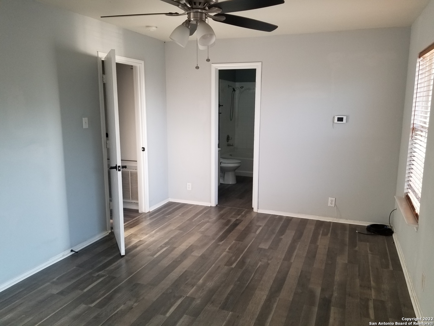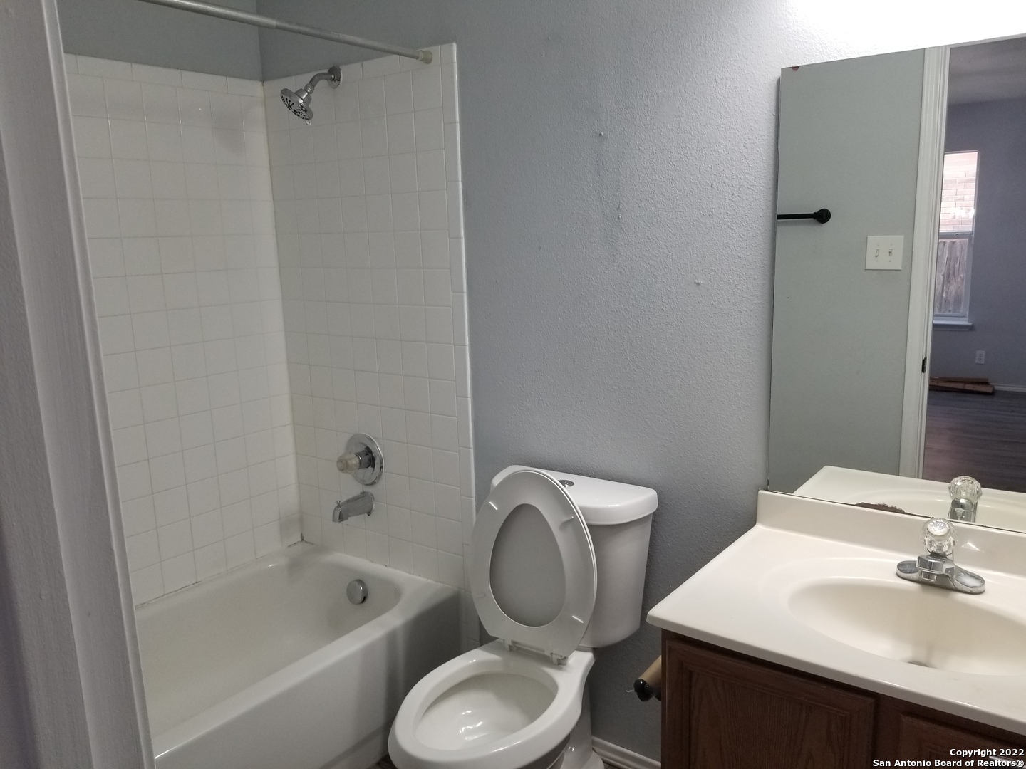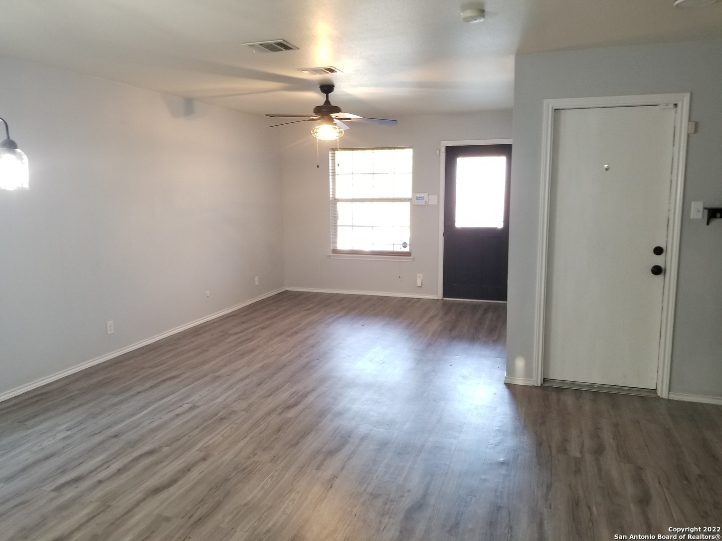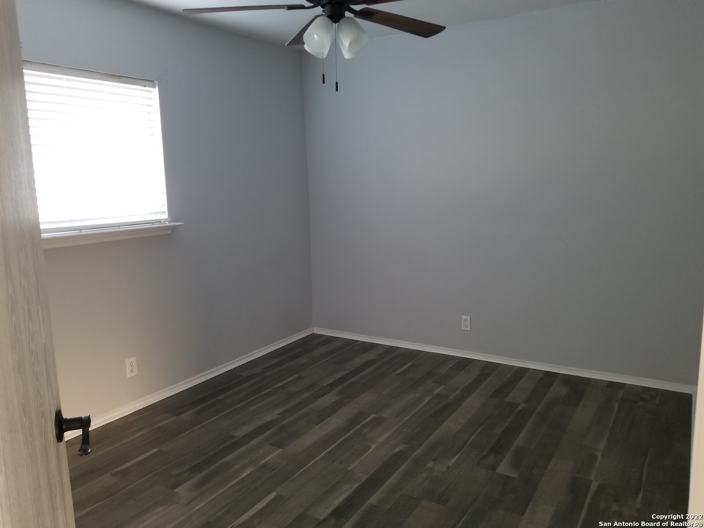 Nice home featuring four bedrooms (ONE on the first floor) and THREE FULL bathrooms. An open floor plan with water-resistant flooring throughout the whole house means NO CARPET!! Enjoy year-round comfort with a high-energy-efficient newer HVAC unit and five ceiling fans. The large, private backyard has no rear neighbors. The location is minutes away from Loop 1604 and Highway 151, Lackland AFB, Walmart, HEB, shopping, restaurants, and more. Great NISD schools.