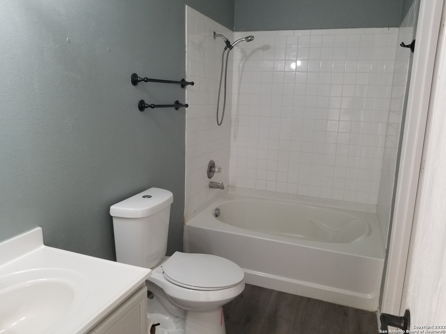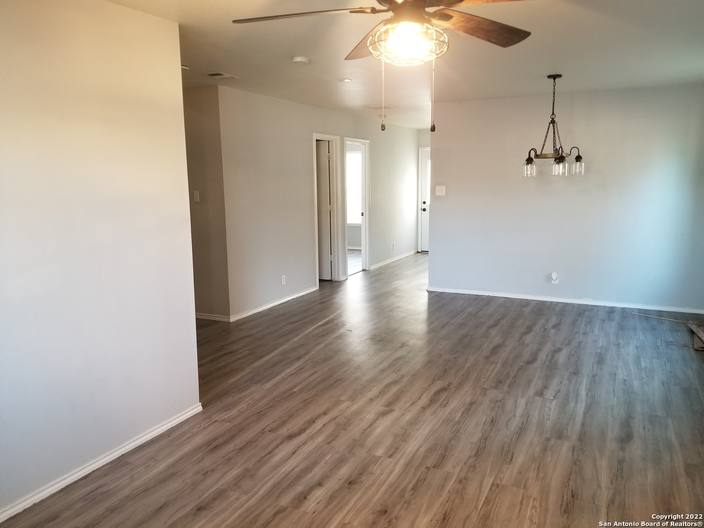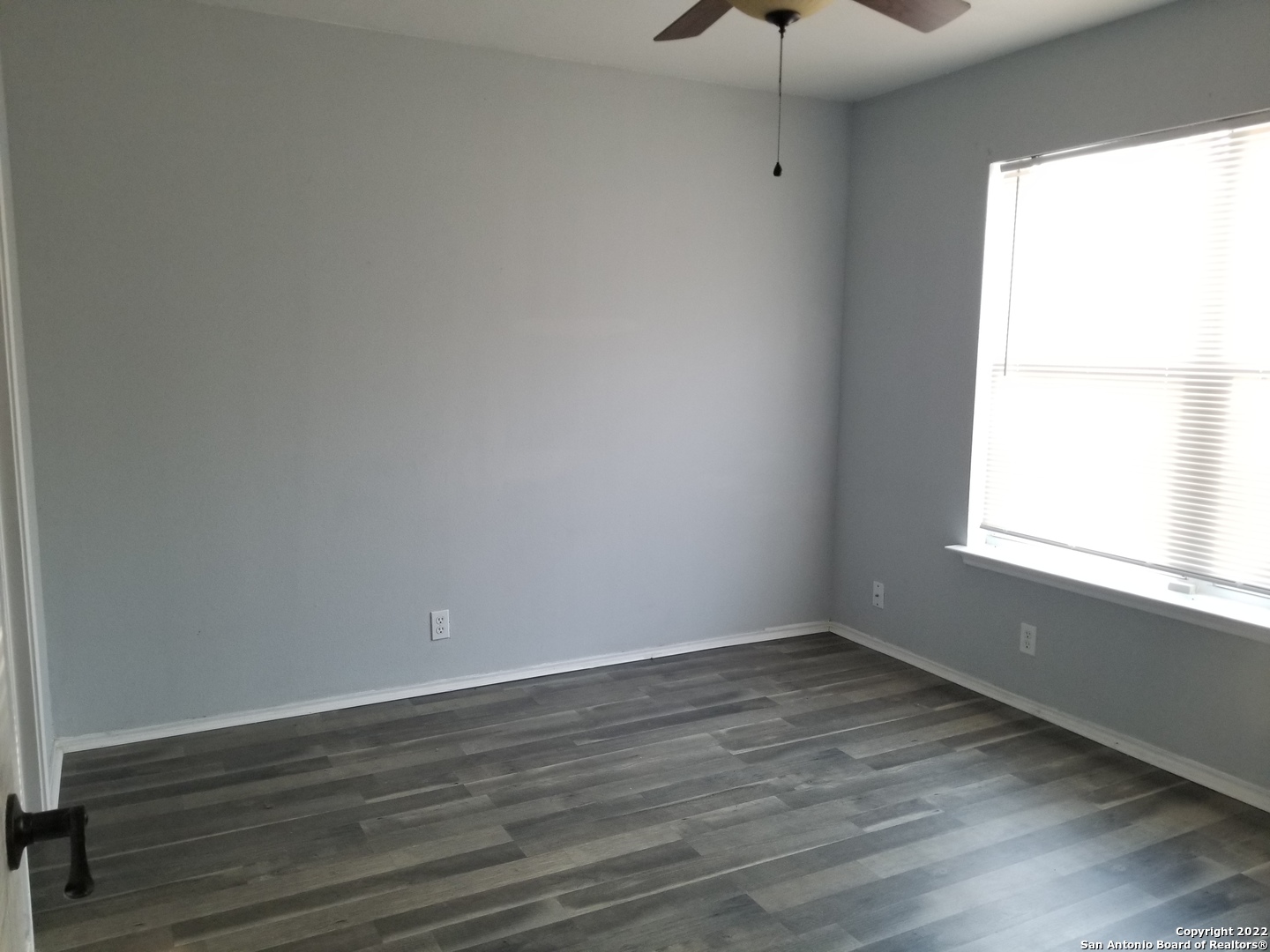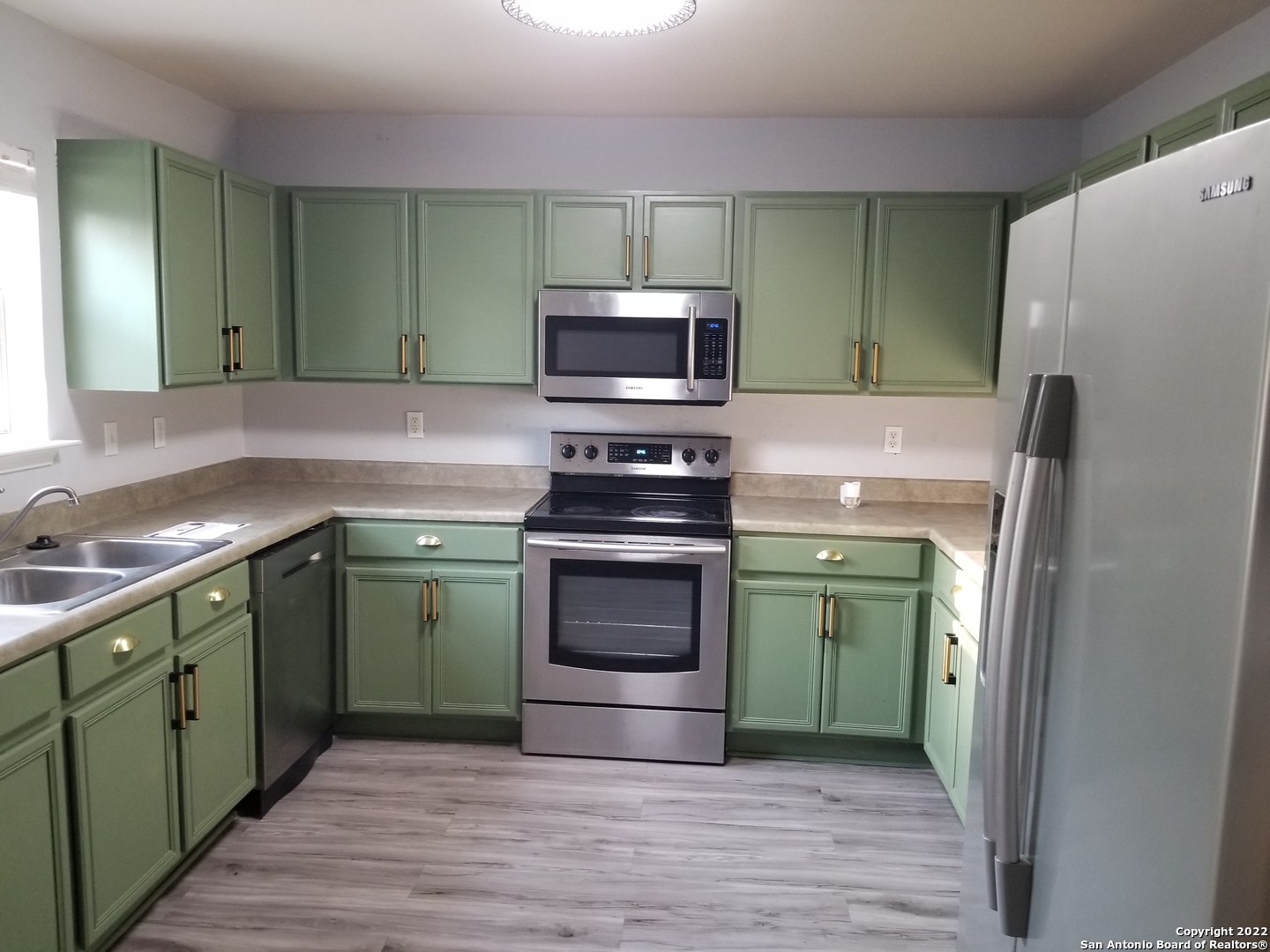Nice home featuring four bedrooms (ONE on the first floor) and THREE FULL bathrooms. An open floor plan with water-resistant flooring throughout the whole house means NO CARPET!! Enjoy year-round comfort with a high-energy-efficient newer HVAC unit and five ceiling fans. The large, private backyard has no rear neighbors. The location is minutes away from Loop 1604 and Highway 151, Lackland AFB, Walmart, HEB, shopping, restaurants, and more. Great NISD schools.