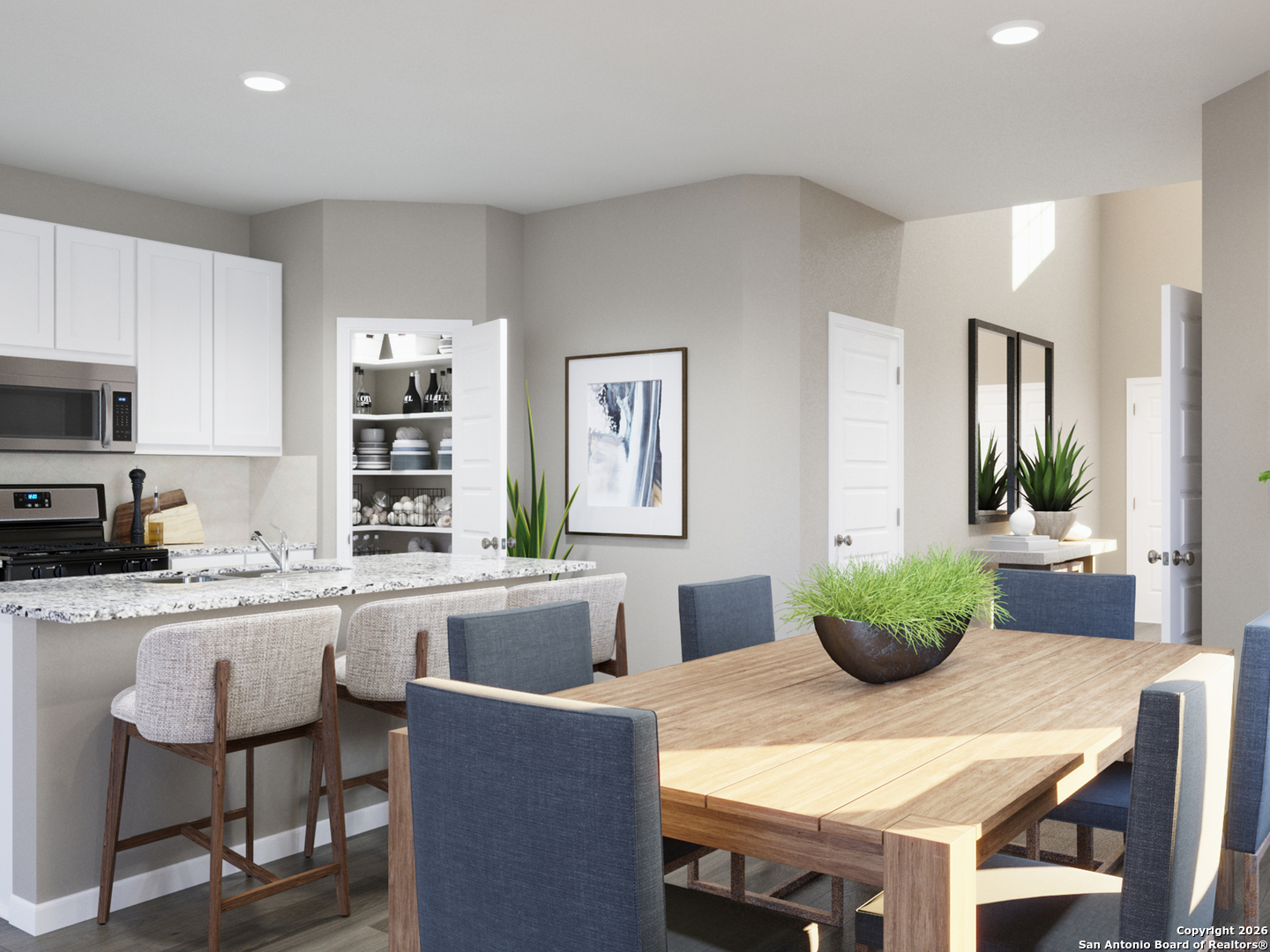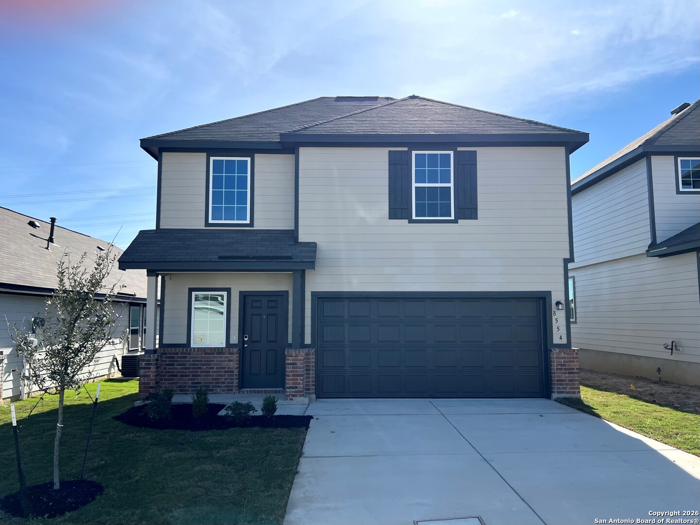 Love where you live in Hickory Ridge in Elmendorf, TX! The Lakeland floor plan is an open concept 2-story home, with soaring ceilings in the entry, and features 3 bedrooms, 2.5 bathrooms, and a 2-car garage. This home has it all, including vinyl plank flooring throughout the common areas! The gourmet kitchen is sure to please with 42" gray cabinets, granite countertops, and stainless-steel appliances! Retreat to the first-floor Owner's Suite featuring granite countertops, a sizable shower and a walk-in closet. Secondary bedrooms have walk-in closets, too! Enjoy the great outdoors with a sprinkler system and a covered patio! Don't miss your opportunity to call Hickory Ridge home, schedule a visit today!